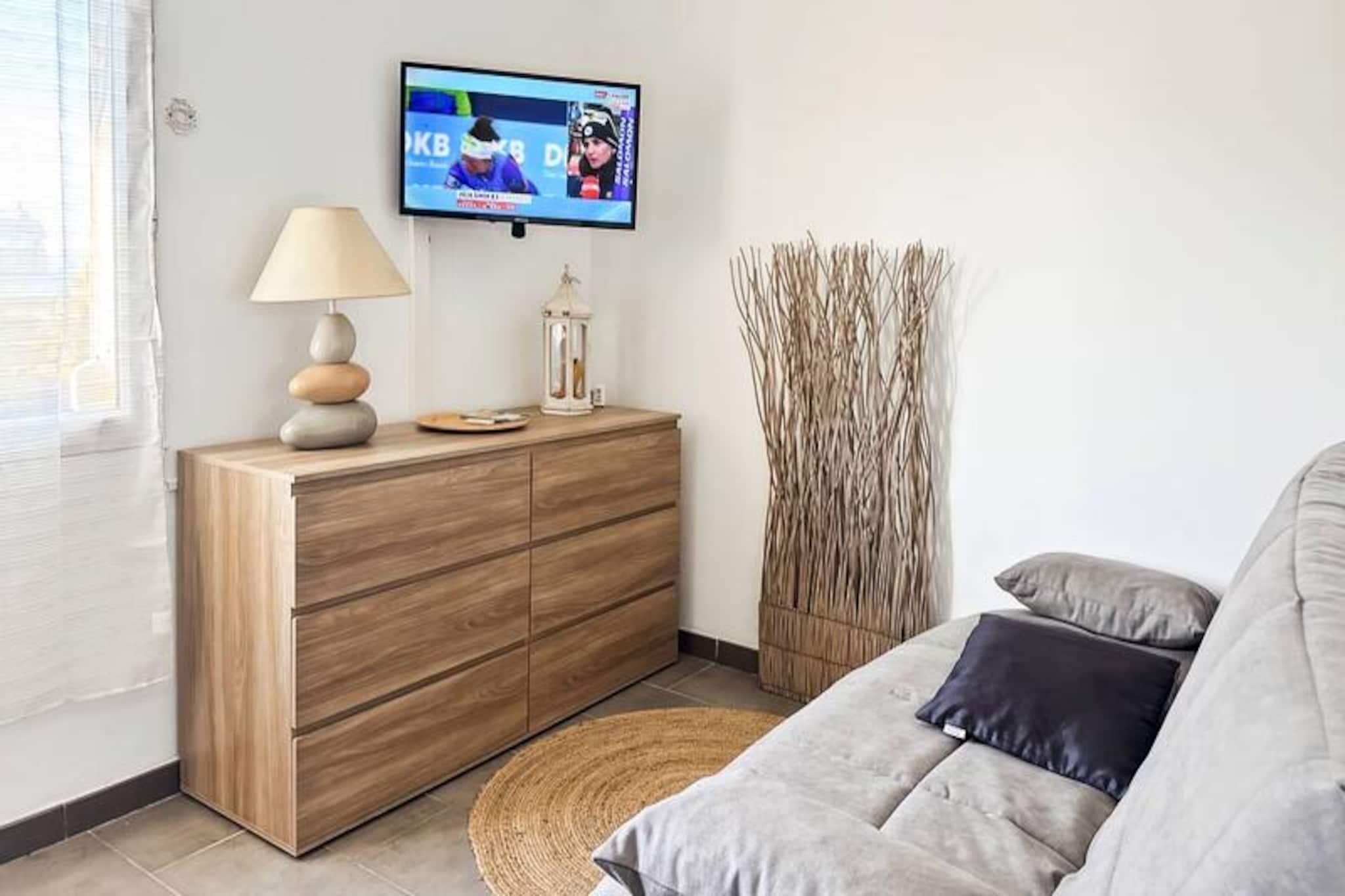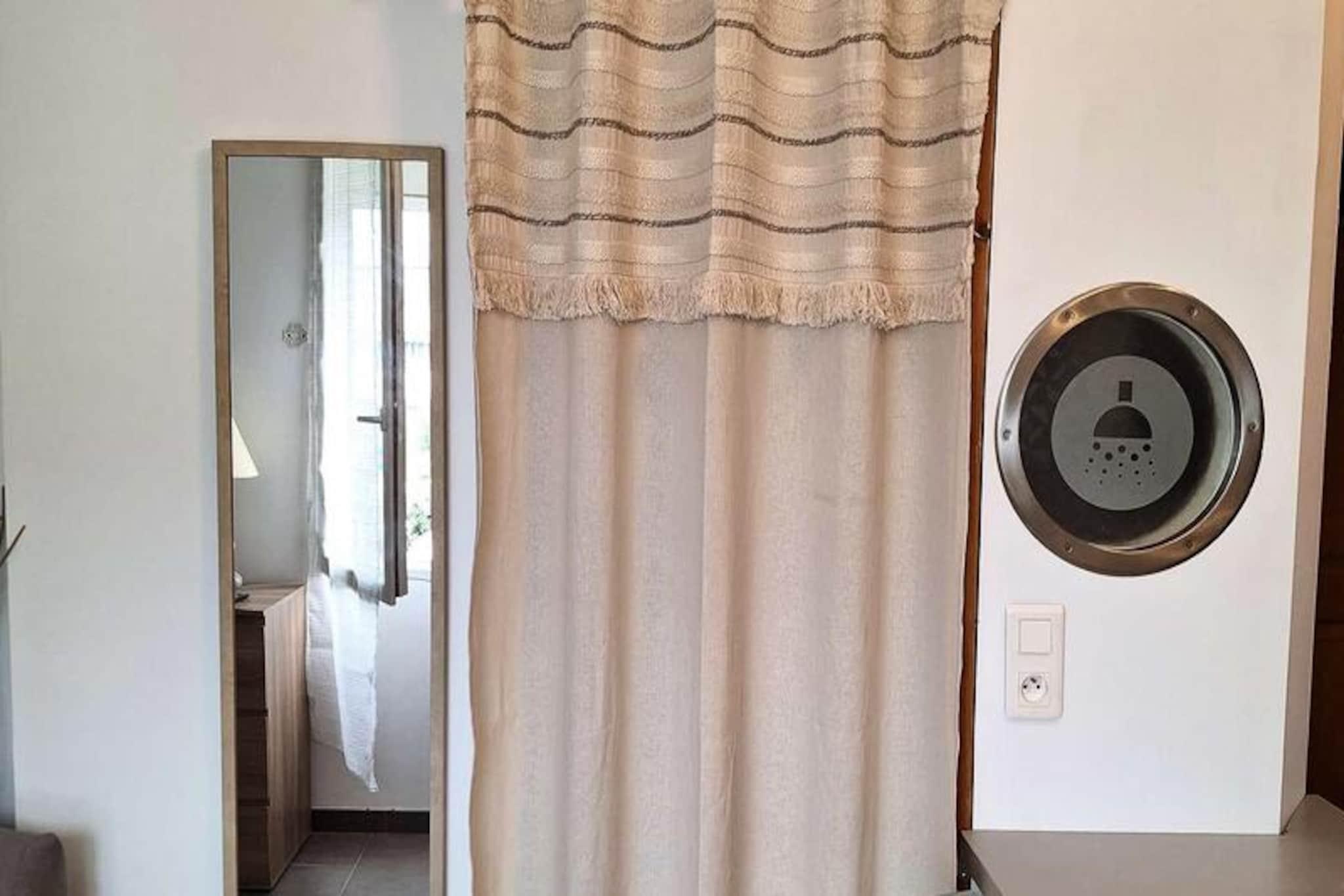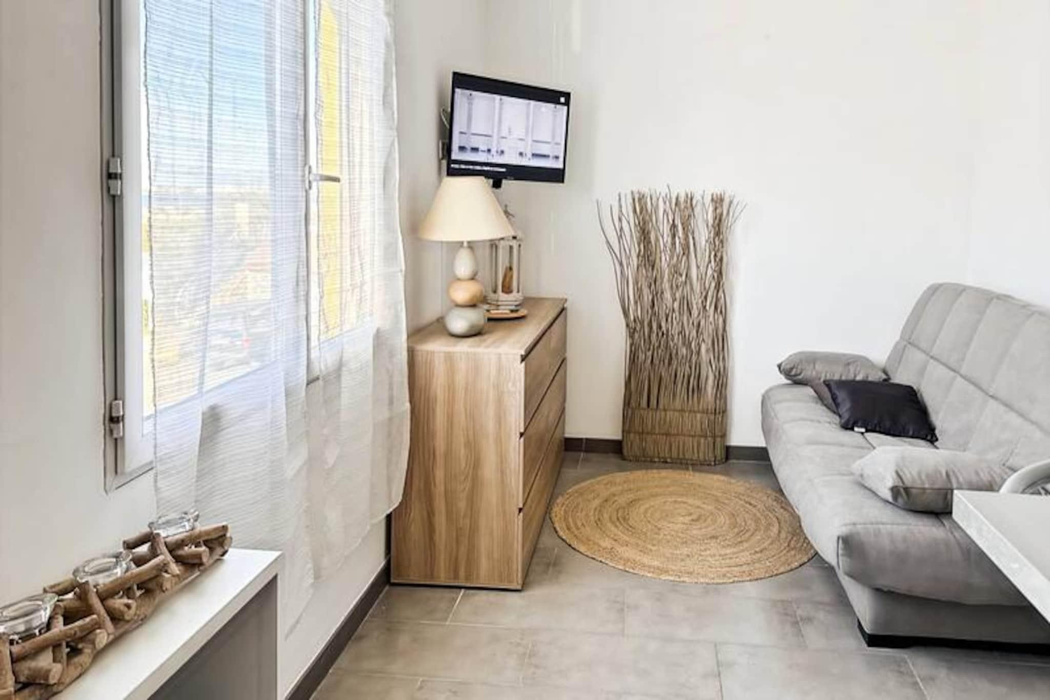 Forestil dig at vågne op til den beroligende lyd af bølger og duften af ??frisk havluft. Dette charmerende studie, perfekt placeret kun to minutters gang fra stranden, tilbyder et hyggeligt tilflugtssted for par eller solorejsende, der søger en rolig ferie ved havet. Med sin lyse og indbydende indretning er dette 18 m² store rum designet til at tilbyde både komfort og funktionalitet, hvilket sikrer et mindeværdigt ophold i hjertet af Middelhavskysten. Uanset om du er her for at slappe af eller udforske, er dette studie din ideelle base. \n\nIndenfor finder du et veludstyret tekøkken med ovn, køleskab og mikrobølgeovn, hvilket gør det nemt at tilberede dine yndlingsmåltider. Sovesofaen giver en komfortabel soveplads til to, mens den gennemtænkte indretning maksimerer udnyttelsen af ??pladsen. Beliggende på første sal i et indkøbscenter har du bekvemmeligheden af ??butikker og daglige faciliteter lige uden for døren, hvilket eliminerer behovet for en bil. Gå ud på den store fælles terrasse for at nyde dine måltider under åben himmel eller blot slappe af med udsigt over det glitrende hav. \n\nBeliggenheden er uovertruffen, med stranden kun få skridt væk og det pulserende lokalområde, der tilbyder en række aktiviteter og attraktioner. Uanset om du slentrer langs kysten, udforsker nærliggende markeder eller forkæler dig selv med regionens kulinariske lækkerier, er der noget for enhver smag. Yderligere tjenester såsom leje af lagner og håndklæder, slutrengøring og cykeludlejning er tilgængelige for at forbedre dit ophold. \n\nBook din ferie i dag og skab uforglemmelige minder i denne maleriske kystparadis. Havet kalder – besvar det med et ophold i dette dejlige studie.