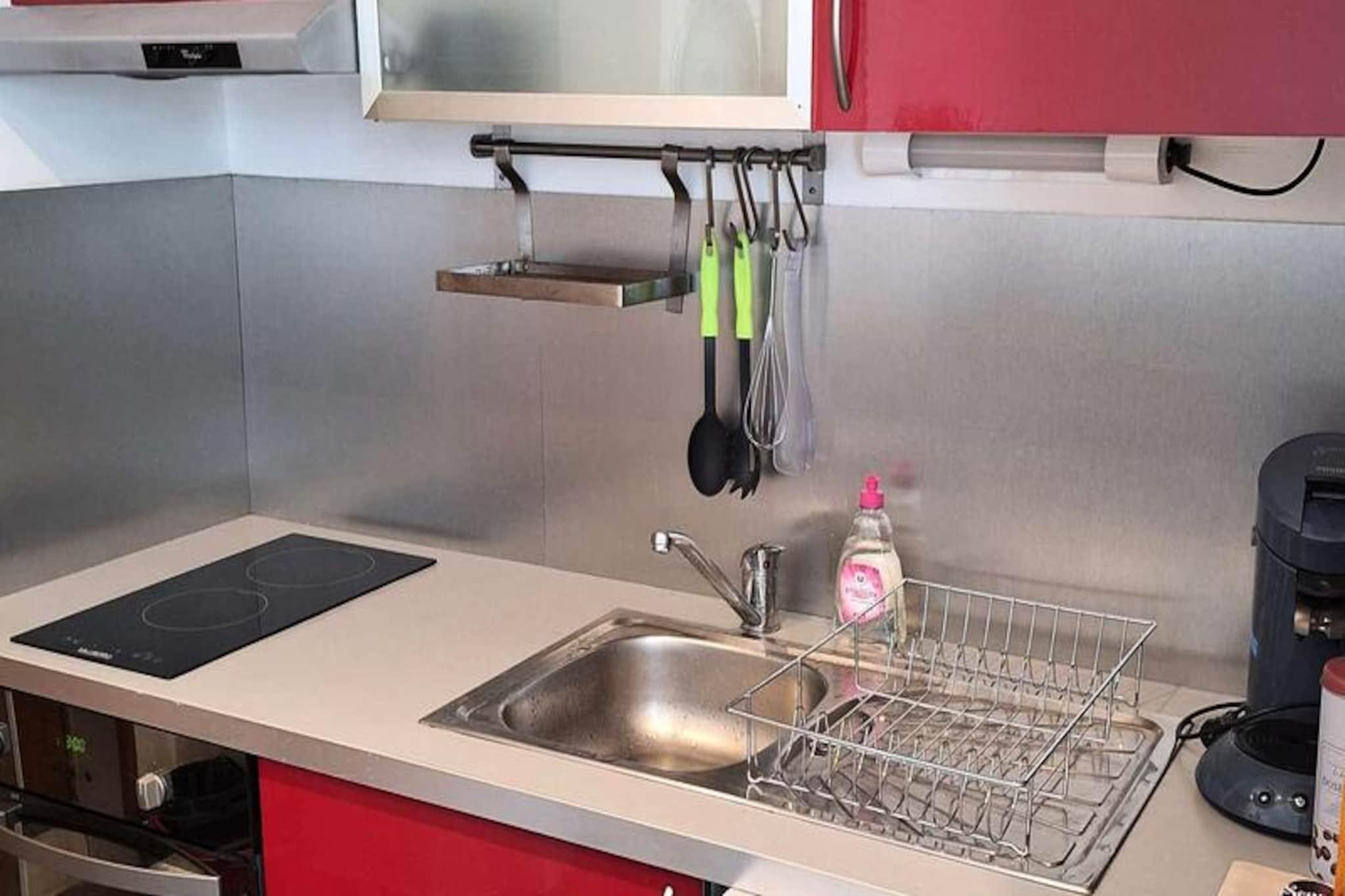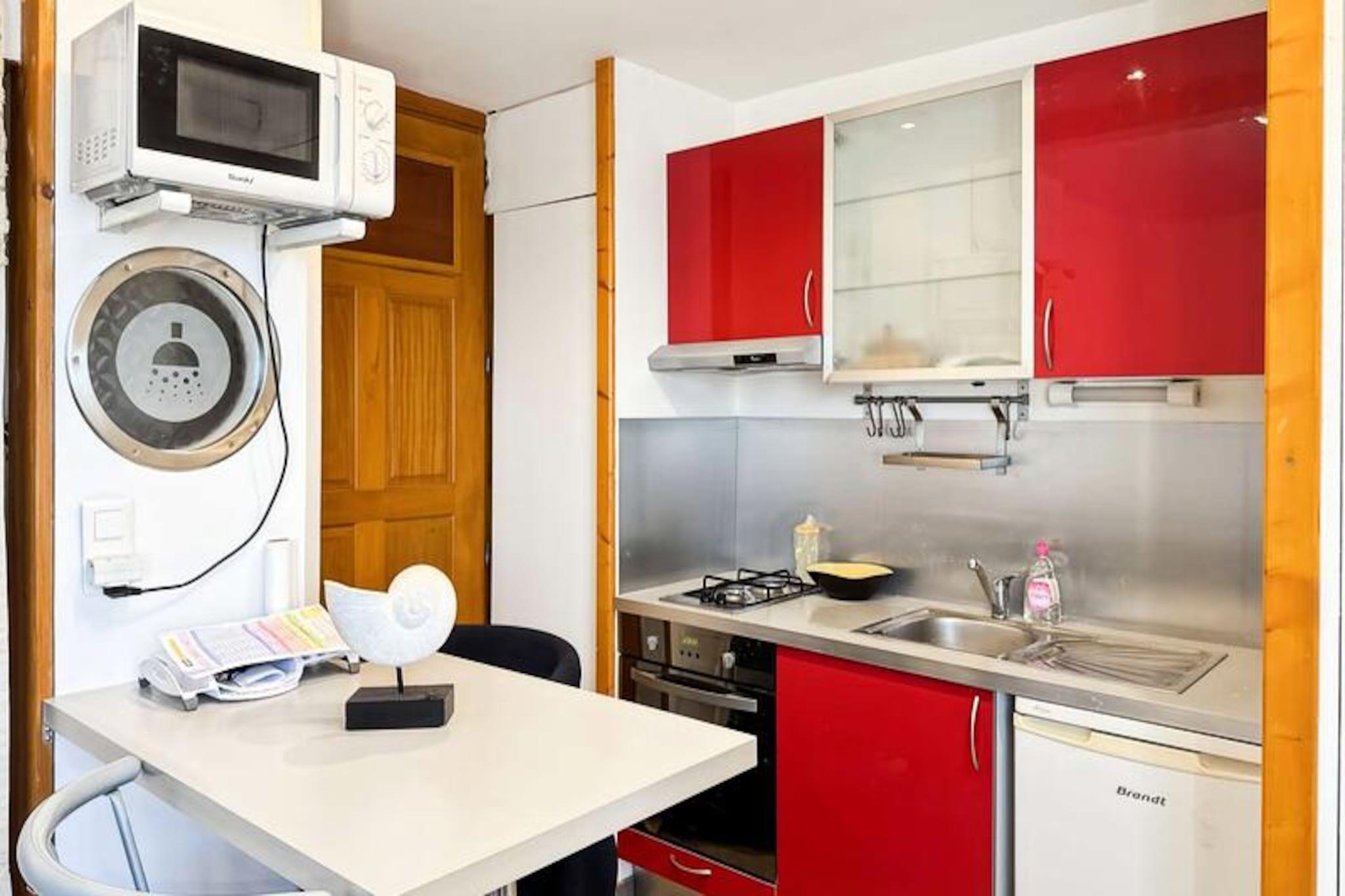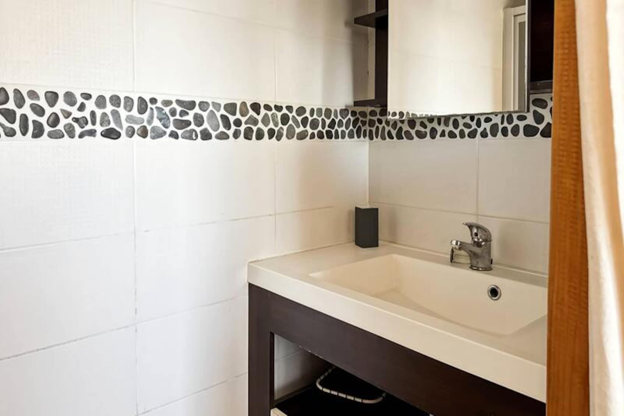 Forestil dig at vågne op til den beroligende lyd af bølger og duften af ??frisk havluft. Dette charmerende studie, perfekt placeret kun to minutters gang fra stranden, tilbyder et hyggeligt tilflugtssted for par eller solorejsende, der søger en rolig ferie ved havet. Med sin lyse og indbydende indretning er dette 18 m² store rum designet til at tilbyde både komfort og funktionalitet, hvilket sikrer et mindeværdigt ophold i hjertet af Middelhavskysten. Uanset om du er her for at slappe af eller udforske, er dette studie din ideelle base. \n\nIndenfor finder du et veludstyret tekøkken med ovn, køleskab og mikrobølgeovn, hvilket gør det nemt at tilberede dine yndlingsmåltider. Sovesofaen giver en komfortabel soveplads til to, mens den gennemtænkte indretning maksimerer udnyttelsen af ??pladsen. Beliggende på første sal i et indkøbscenter har du bekvemmeligheden af ??butikker og daglige faciliteter lige uden for døren, hvilket eliminerer behovet for en bil. Gå ud på den store fælles terrasse for at nyde dine måltider under åben himmel eller blot slappe af med udsigt over det glitrende hav. \n\nBeliggenheden er uovertruffen, med stranden kun få skridt væk og det pulserende lokalområde, der tilbyder en række aktiviteter og attraktioner. Uanset om du slentrer langs kysten, udforsker nærliggende markeder eller forkæler dig selv med regionens kulinariske lækkerier, er der noget for enhver smag. Yderligere tjenester såsom leje af lagner og håndklæder, slutrengøring og cykeludlejning er tilgængelige for at forbedre dit ophold. \n\nBook din ferie i dag og skab uforglemmelige minder i denne maleriske kystparadis. Havet kalder – besvar det med et ophold i dette dejlige studie.