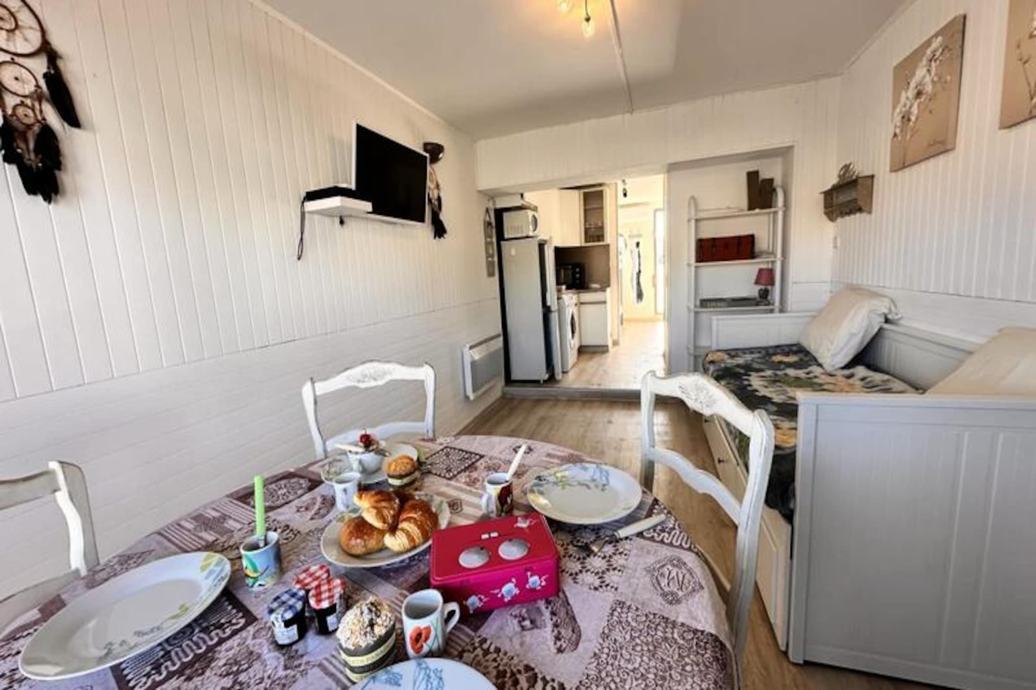 En mild havbrise hilser dig velkommen, når du træder ind i hjertet af Le Grau du Roi, hvor L'Escapade Salée tilbyder den perfekte blanding af charme og bekvemmelighed. Kun 100 meter fra det gyldne sand og en kort gåtur fra livlige butikker og restauranter, inviterer dette dejlige studie dig til at fordybe dig i den afslappede rytme i denne maleriske kystlandsby i Camargue. Uanset om du søger rolige morgener ved kysten eller livlige aftener med at udforske lystbådehavnen, er dette det ideelle tilflugtssted for din kystferie. Studioet, der ligger på første sal i en fredelig bolig, er omhyggeligt designet til at tilbyde komfort og funktionalitet. Entréen har en hyggelig sovealkove med en køjeseng til to personer, mens den lyse opholds- og spisestue har en sovesofa til to ekstra gæster. Det halvåbne tekøkken er fuldt udstyret med fornødenheder som kaffemaskine, brødrister og køleskab, hvilket gør det nemt at tilberede måltider efter en dag med eventyr. Et separat badeværelse og toilet bidrager til bekvemmeligheden, og sengelinned og håndklæder er inkluderet til dit ophold. Træd udenfor og oplev charmen ved Le Grau du Roi lige uden for døren. Gå en tur gennem de hyggelige gader, beundr Europas største marina, eller nyd en afslappet gåtur langs stranden. Den nærliggende togstation og busforbindelser gør det nemt at udforske den bredere region, herunder Montpellier og de fantastiske landskaber i Camargue. Uanset om du er her for en weekendtur eller et længere ophold, lover L'Escapade Salée en mindeværdig oplevelse, hvor havet, landsbyen og Camargues skønhed forenes for at skabe den perfekte ferie.