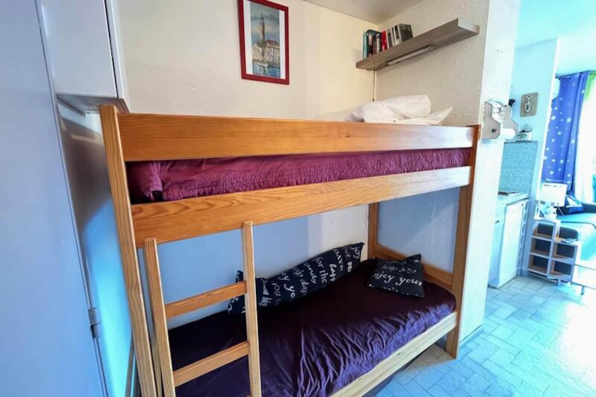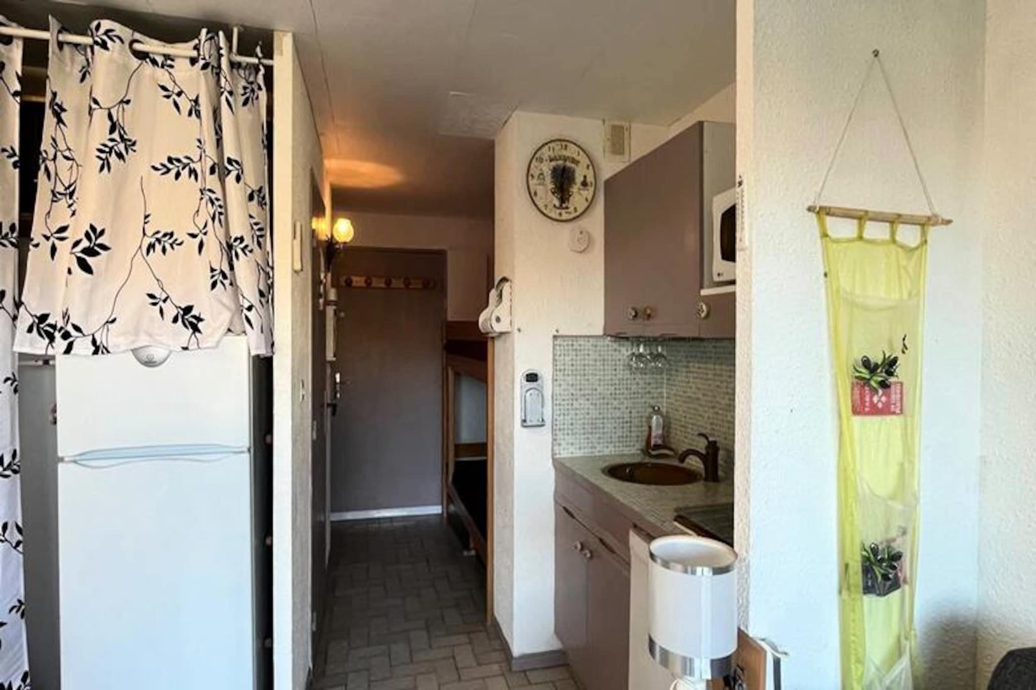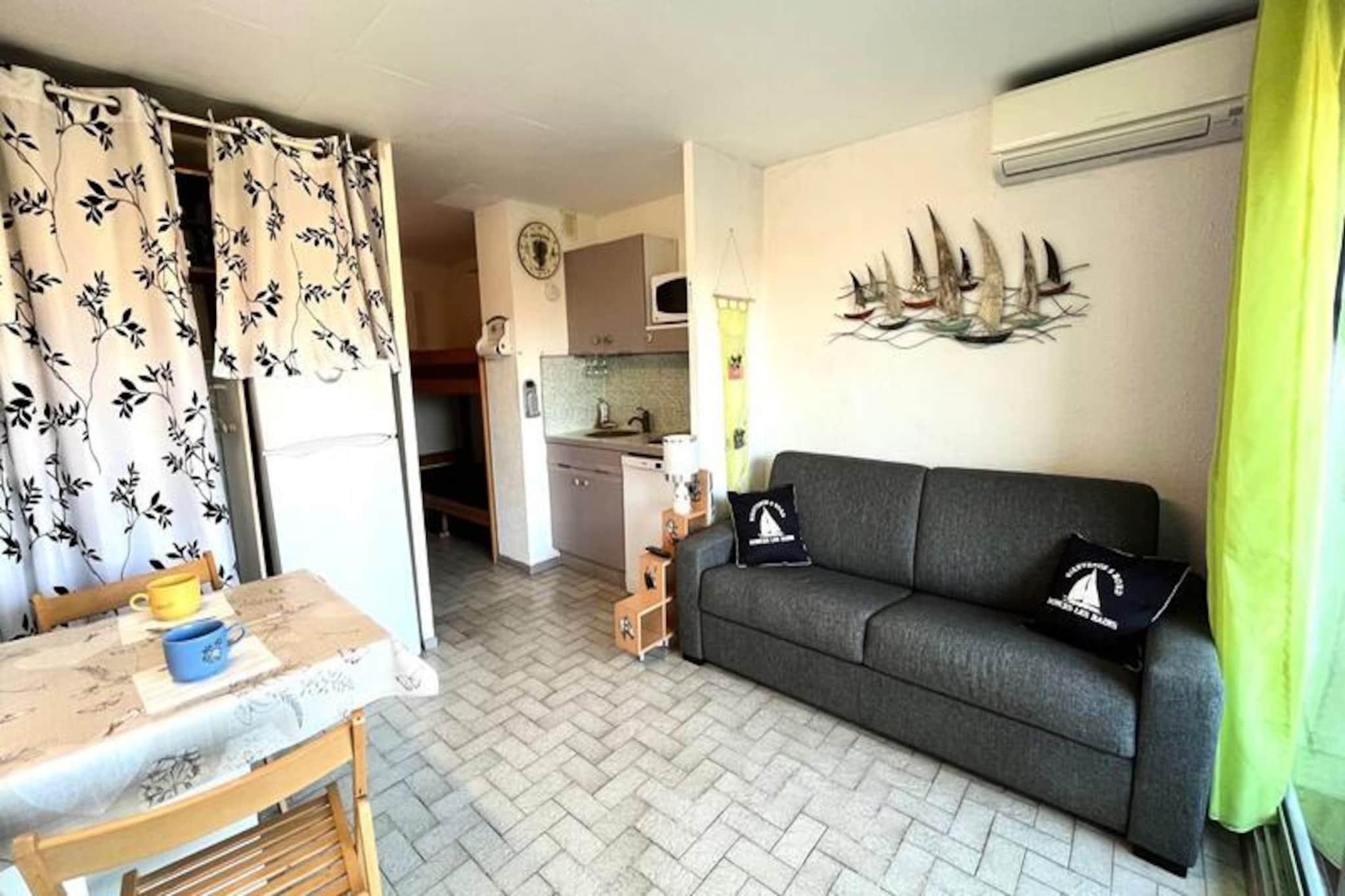 Træd ind i en verden af ??kystcharme i denne dejlige studiolejlighed i den fredfyldte residens Le Lagon Bleu. Denne 19 m² store hyttelejlighed er perfekt beliggende i stueetagen af ??et sikkert kompleks og tilbyder et hyggeligt tilflugtssted for op til fire gæster. Det omhyggeligt designede rum inkluderer et fuldt udstyret køkken, der åbner op til opholdsstuen, en sovealkove med køjesenge og en komfortabel sovesofa. Uanset om du er her for en romantisk ferie eller en familieferie, finder du alt, hvad du behøver for et afslappende ophold. Residensen kan også prale af en fælles swimmingpool, ideel til afslapning efter en dag med udforskning. Efterlad din bil på den sikre parkeringsplads, og nyd bekvemmeligheden ved at have stranden og lokale butikker kun en kort gåtur væk. \n\nBeliggende kun fem minutter fra det travle centrum af Grau du Roi, har du uendelige muligheder for at fordybe dig i den pulserende lokale kultur. Kun 6 km væk ligger den fortryllende middelalderby Aigues-Mortes, hvor brostensbelagte gader, charmerende butikker og et livligt marked venter. For naturelskere byder Camargue-regionen på betagende landskaber med moser, damme og vådområder, perfekt til fuglekiggeri eller udforskning på elcykel. Oplev de ikoniske lyserøde flamingoer, hvide heste og majestætiske tyre, der kalder dette område deres hjem. \n\nUanset om du søger eventyr eller ro, tilbyder denne ejendom den perfekte base for at opleve Provences skønhed. Med private udflugter, cykeludlejning og en række faciliteter er hvert øjeblik her designet til at skabe varige minder. Lad Middelhavets magi fortrylle dig, mens du slapper af i dette charmerende tilflugtssted.