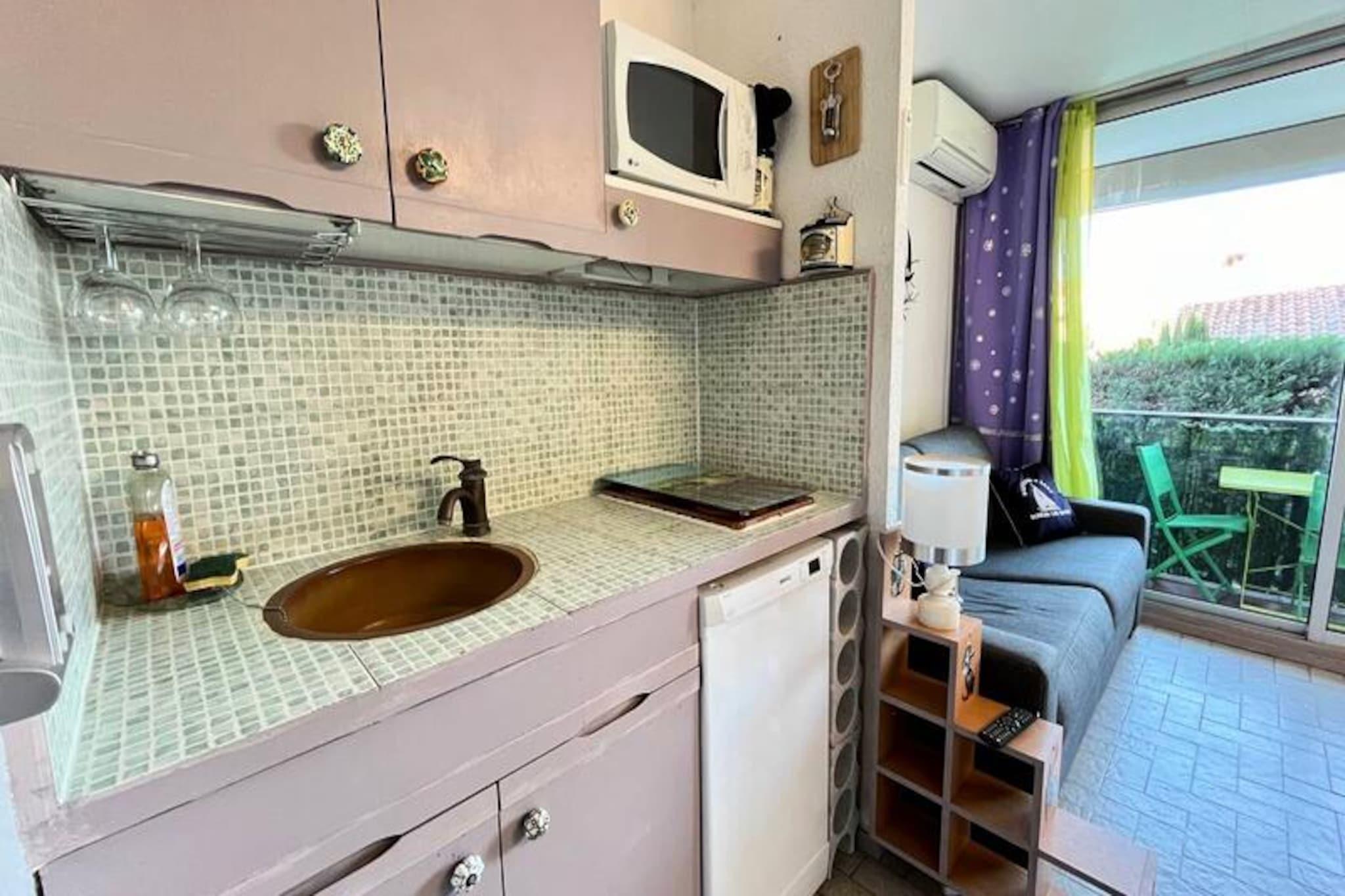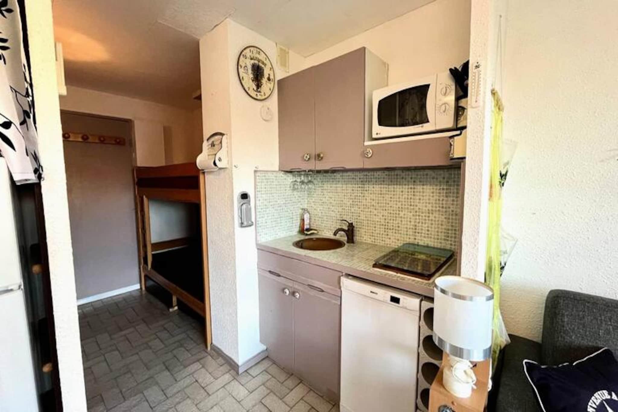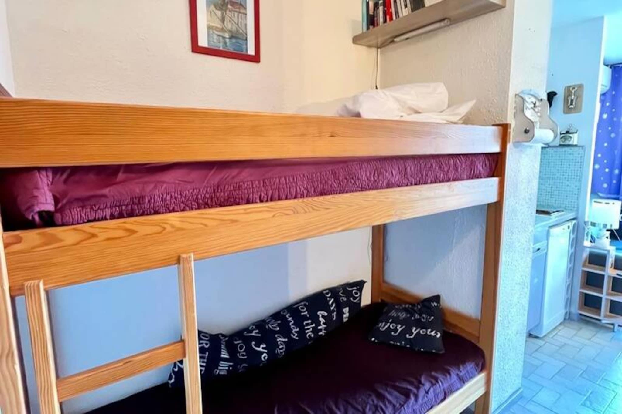 Træd ind i en verden af ??kystcharme i denne dejlige studiolejlighed i den fredfyldte residens Le Lagon Bleu. Denne 19 m² store hyttelejlighed er perfekt beliggende i stueetagen af ??et sikkert kompleks og tilbyder et hyggeligt tilflugtssted for op til fire gæster. Det omhyggeligt designede rum inkluderer et fuldt udstyret køkken, der åbner op til opholdsstuen, en sovealkove med køjesenge og en komfortabel sovesofa. Uanset om du er her for en romantisk ferie eller en familieferie, finder du alt, hvad du behøver for et afslappende ophold. Residensen kan også prale af en fælles swimmingpool, ideel til afslapning efter en dag med udforskning. Efterlad din bil på den sikre parkeringsplads, og nyd bekvemmeligheden ved at have stranden og lokale butikker kun en kort gåtur væk. \n\nBeliggende kun fem minutter fra det travle centrum af Grau du Roi, har du uendelige muligheder for at fordybe dig i den pulserende lokale kultur. Kun 6 km væk ligger den fortryllende middelalderby Aigues-Mortes, hvor brostensbelagte gader, charmerende butikker og et livligt marked venter. For naturelskere byder Camargue-regionen på betagende landskaber med moser, damme og vådområder, perfekt til fuglekiggeri eller udforskning på elcykel. Oplev de ikoniske lyserøde flamingoer, hvide heste og majestætiske tyre, der kalder dette område deres hjem. \n\nUanset om du søger eventyr eller ro, tilbyder denne ejendom den perfekte base for at opleve Provences skønhed. Med private udflugter, cykeludlejning og en række faciliteter er hvert øjeblik her designet til at skabe varige minder. Lad Middelhavets magi fortrylle dig, mens du slapper af i dette charmerende tilflugtssted.