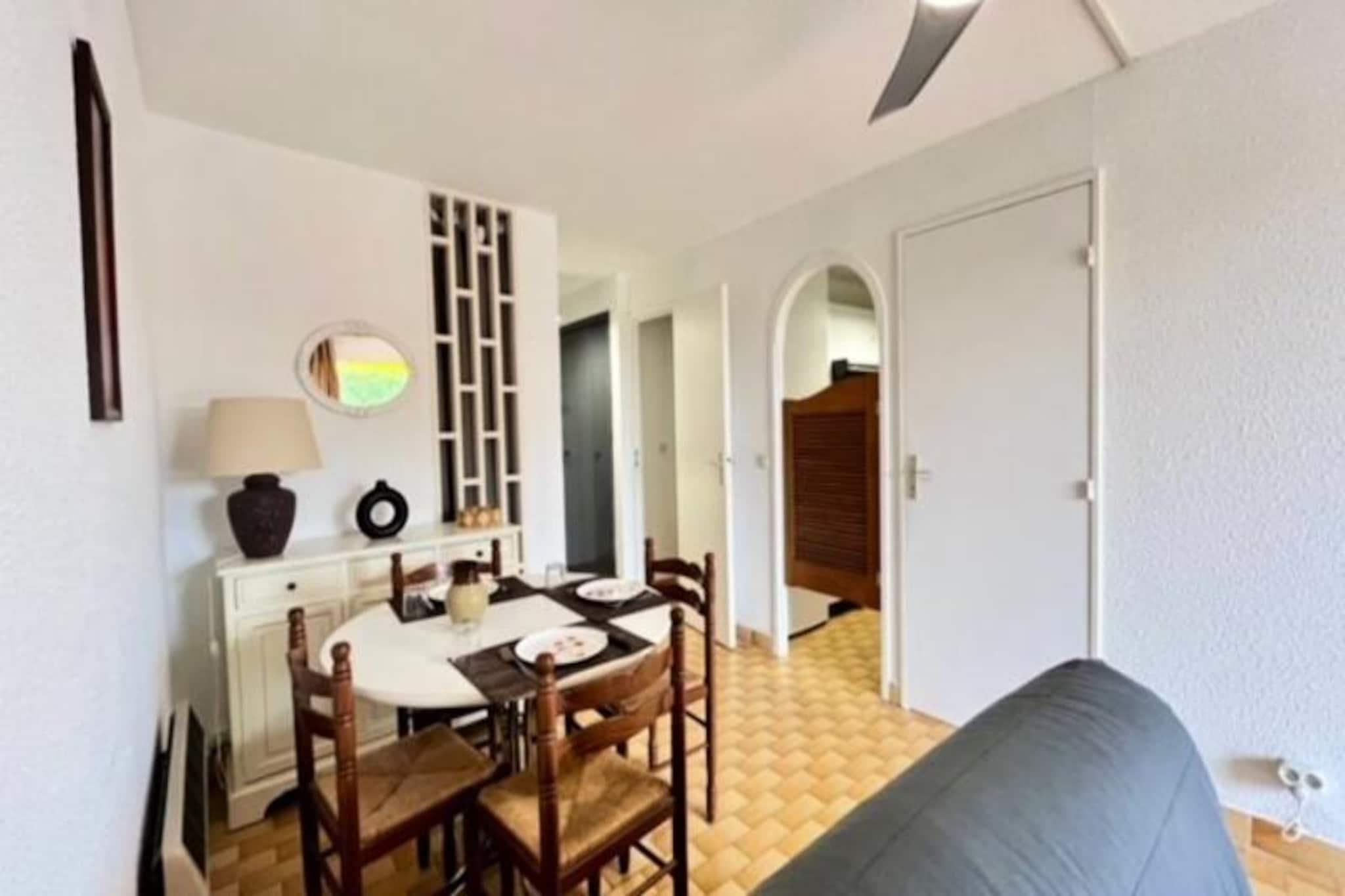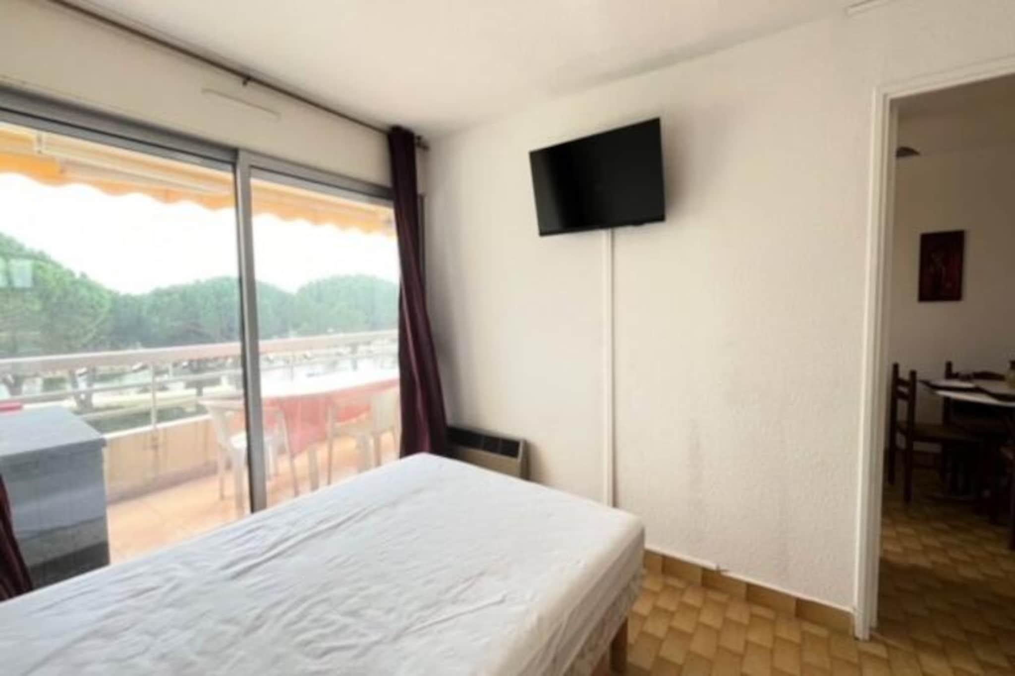 Hvor det glitrende Middelhav møder gyldent sand, tilbyder denne charmerende lejlighed ved stranden en rolig oase i hjertet af Grau du Roi. Forestil dig at vågne op til den blide lyd af bølger og træde ud på din private terrasse for at nyde panoramaudsigten over kanalen og havet. Med sin sydlige beliggenhed bades lejligheden i sollys hele dagen, hvilket skaber en varm og indbydende atmosfære, perfekt til afslapning og foryngelse. Uanset om du søger en romantisk ferie eller et familieophold, lover denne kystparadis uforglemmelige øjeblikke ved vandet. \n\nDen 35 m² store lejlighed er omhyggeligt designet til komfort og bekvemmelighed og ligger i den sikre og velholdte La Lagune-residens. Den har et fuldt udstyret køkken, en hyggelig stue og et moderne badeværelse. Der er plads til op til fire gæster og sovepladserne omfatter et soveværelse med en 140 cm seng, 90 cm køjesenge og en sovesofa. Terrassen, der er udstyret til udendørs spisning, er det ideelle sted at nyde måltider, mens du soler dig i middelhavsbrisen og den fantastiske udsigt. Hver detalje er blevet tænkt over for at sikre et problemfrit og behageligt ophold. Grau du Roi er en destination, der fortryller med sit milde klima, bløde sandstrande og livlige kystcharme. Espiguette-stranden, en beskyttet naturskat, der strækker sig over 10 kilometer, indbyder til udforskning og afslapning. Den nærliggende Camargue-region tilbyder en unik blanding af vilde landskaber og kulturelle traditioner, perfekt for både naturelskere og eventyrere. Fra windsurfing og kitesurfing til rolige cykelture langs kysten er området fyldt med aktiviteter for enhver smag. Uanset om du er tiltrukket af Middelhavets tiltrækningskraft eller Camargues rige kulturarv, er denne lejlighed ved stranden din port til en uforglemmelig flugt. Lad Grau du Rois skønhed inspirere dit næste ferieeventyr.