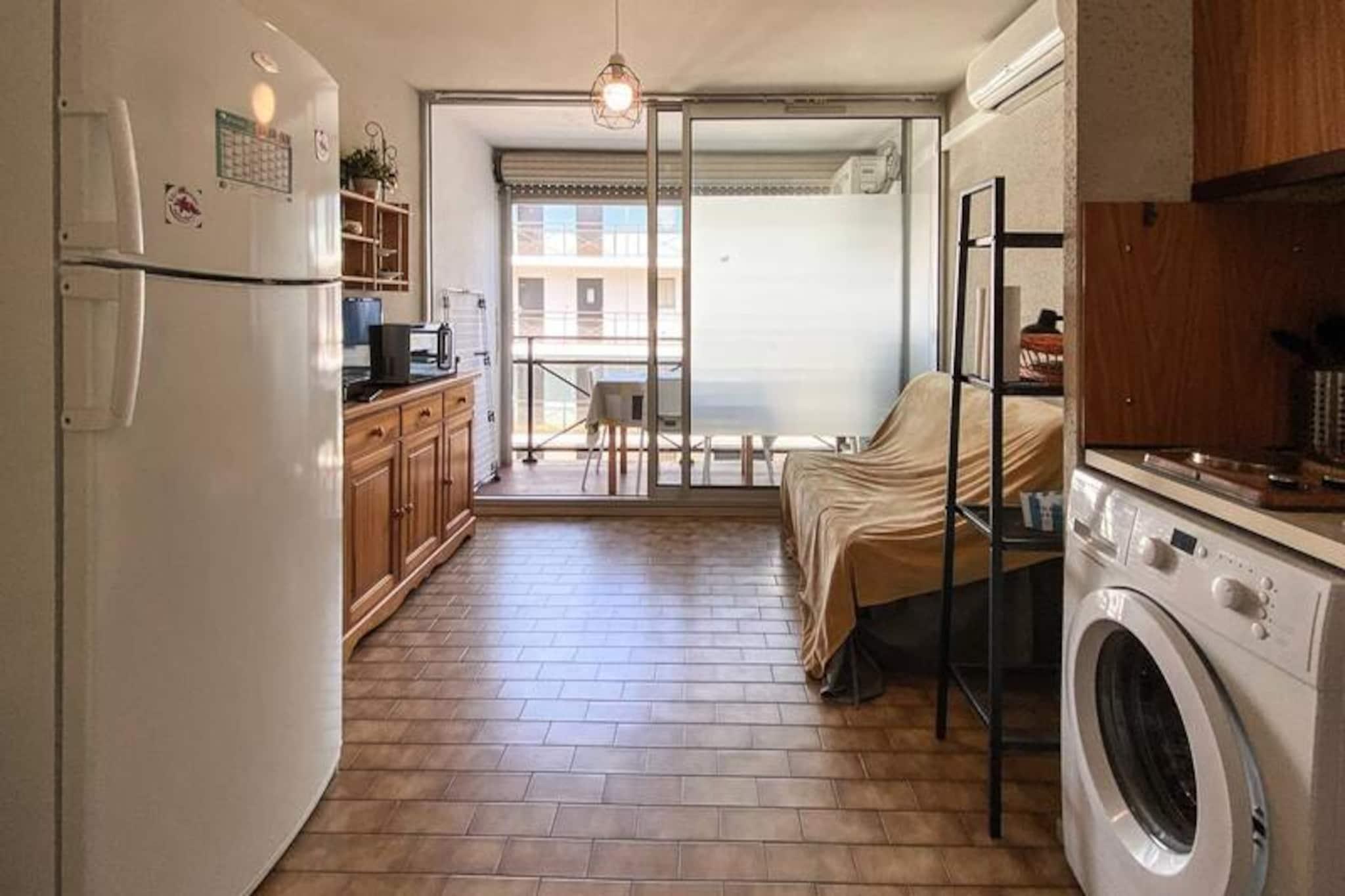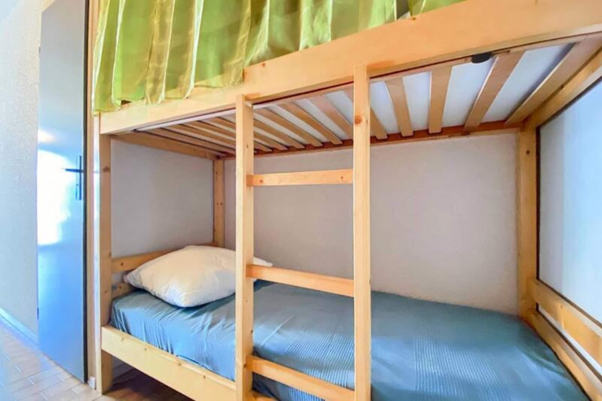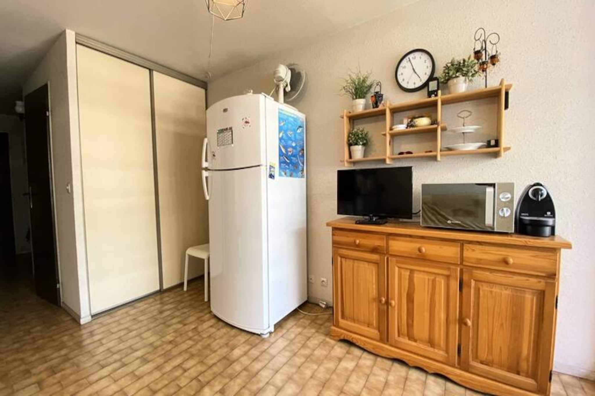 Forestil dig at vågne op til den blide lyd af bølger og den varme middelhavssol, der strømmer ind gennem dit vindue. Dette charmerende studie på 20 m², beliggende i den sikre og velholdte Le Lagon Bleu-residens, tilbyder den perfekte blanding af komfort og bekvemmelighed til din kystferie. Med sin førsteklasses beliggenhed mellem poolen og stranden har du alt, hvad du behøver for at få mest muligt ud af dit ophold i Sydfrankrig. \n\nStudioet er omhyggeligt designet til at rumme op til fem gæster og har en hyggelig dobbeltseng, en enkeltseng og en sovesofa. Det åbne køkken og opholdsstue skaber et indbydende rum at slappe af efter en dag med udforskning. Gå udenfor for at nyde residensens fælles swimmingpool, eller tag en kort gåtur til de nærliggende sandstrande og livlige lokale butikker. For din bekvemmelighed er der reserveret en privat og sikker parkeringsplads til dig, så du kan lade din bil blive hjemme og fordybe dig fuldt ud i regionens skønhed.\n\nLe Lagon Bleu er ideelt placeret til at opdage Middelhavskystens skatte. Lej en cykel og udforsk de maleriske omgivelser, eller slap blot af ved poolen med en god bog. Uanset om du nyder det lokale køkken, dyrker vandsport eller nyder solen, er dette studie den perfekte base for dine eventyr. \n\nBook dit ophold i dag, og oplev charmen ved den franske riviera. Med sin uovertrufne beliggenhed og hyggelige faciliteter er dette studie din port til uforglemmelige minder ved havet.