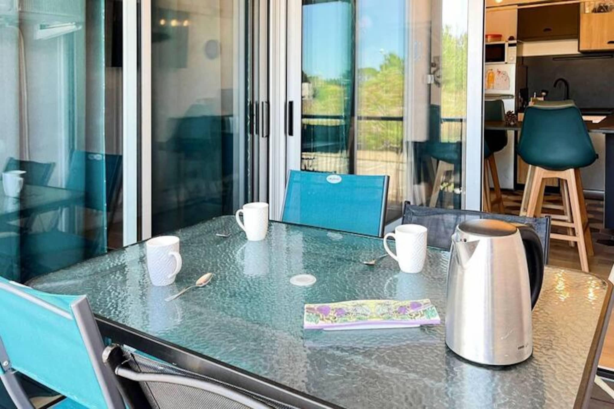 I hjertet af den maleriske Blå Lagune-region inviterer denne charmerende lejlighed dig til at opleve den perfekte blanding af komfort og bekvemmelighed. Forestil dig at vågne op til den blide middelhavsbrise, træde ud på din private terrasse for at nyde en morgenkaffe og planlægge en dag fyldt med udforskning og afslapning. Uanset om du er her på en familieferie eller en tur med venner, lover dette indbydende tilflugtssted uforglemmelige øjeblikke i fantastiske omgivelser. \n\nLejligheden strækker sig over et rummeligt areal på 28 m² og er omhyggeligt designet til at rumme op til seks gæster. Det fuldt udstyrede køkken er ideelt til at tilberede måltider til deling, mens det hyggelige soveværelse har en dobbeltseng suppleret af tre køjesenge og en sovesofa i stuen. Moderne faciliteter sikrer, at dit ophold er så behageligt som muligt, og terrassen er det perfekte sted til udendørs spisning eller aftendrinks. Fra juni til midten af ??september kan du benytte dig af boligens swimmingpool, hvilket tilføjer et ekstra strejf af luksus til din ferie. En privat parkeringsplads med en sikker port er tilgængelig, så du nemt kan udforske regionen. \n\nDet omkringliggende område er rigt på attraktioner og aktiviteter. Fra naturskønne cykelstier til charmerende lokale markeder er der noget for enhver smag. Lej en cykel og opdag skjulte perler, eller nyd afslappende gåture langs kysten. Nærliggende faciliteter sikrer, at alt hvad du behøver er inden for rækkevidde, fra butikker og restauranter til kulturelle vartegn. \n\nUanset om du søger eventyr eller ro, tilbyder denne lejlighed den ideelle base for at skabe varige minder. Lad skønheden i Den Blå Lagune-regionen fortrylle dig, mens du slapper af i dette dejlige feriehus.