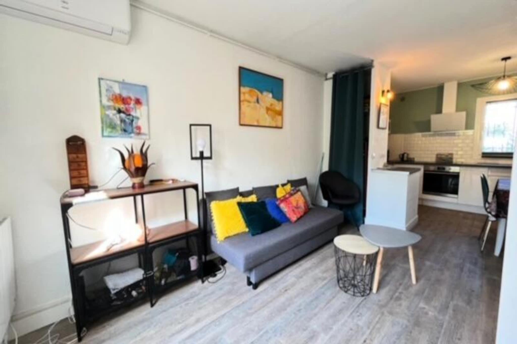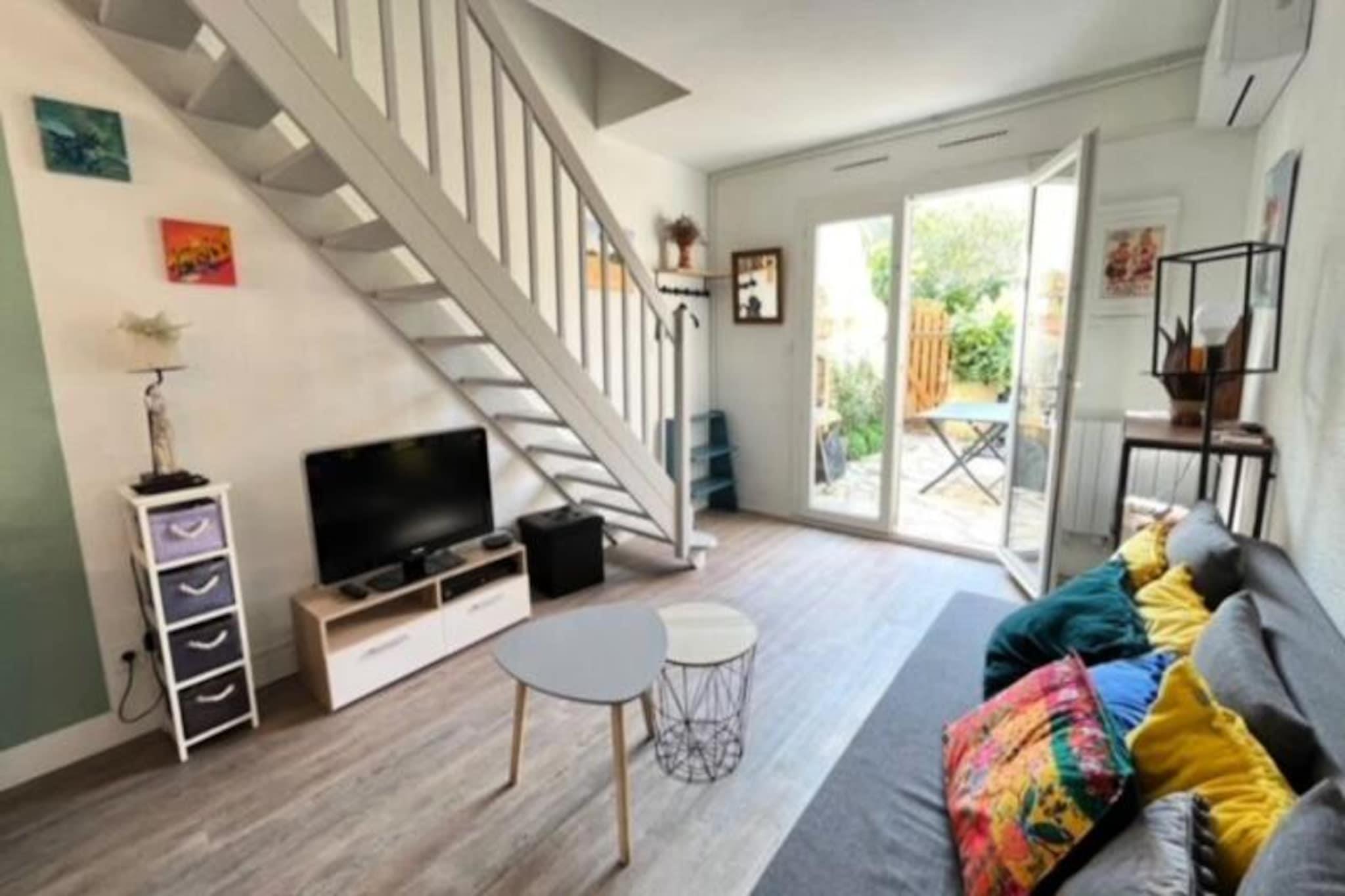 Hvor middelhavsbrisen møder charmen ved den franske kystlinje, tilbyder dette dejlige strandhus det perfekte tilflugtssted til din næste ferie. Beliggende kun få skridt fra det gyldne sand og det azurblå vand, inviterer dette hjem dig til at slappe af og omfavne den rolige rytme i Camargue-regionen. Uanset om du nipper til din morgenkaffe på den solrige terrasse eller slentrer til nærliggende butikker, føles hvert øjeblik her som en hyldest til kystlivet. Indenfor kan huset prale af et generøst 50 m² gennemtænkt boligareal. I stueetagen skaber det åbne køkken og opholdsstue et indbydende knudepunkt for familiemåltider og afslappede aftener. Ovenpå tilbyder to hyggelige soveværelser afslappende oaser, det ene med en dobbeltseng og det andet med to enkeltsenge, suppleret af et moderne badeværelse. De smagfulde møbler og lyse interiører afspejler regionens afslappede elegance, mens den 15 m² store terrasse, komplet med havemøbler, er perfekt til udendørs spisning eller solbadning. Med en privat parkeringsplads lige foran er bekvemmeligheden lige ved hånden. Ud over huset venter Camargues vidundere. Udforsk de fortryllende saltmarske i Aigues-Mortes, sol dig i den uberørte skønhed ved Espiguette-stranden, eller beundr den travle Port Camargue, Europas største marina. For dem, der søger eventyr, er der cykeludlejning tilgængelig, hvilket tilbyder en naturskøn måde at opdage områdets naturlige og kulturelle skatte på. Uanset om du er her for solen, havet eller Camargues unikke charme, lover dette strandhus en uforglemmelig flugt. Lad det sydlige Frankrigs skønhed betage dig og skabe minder for livet.