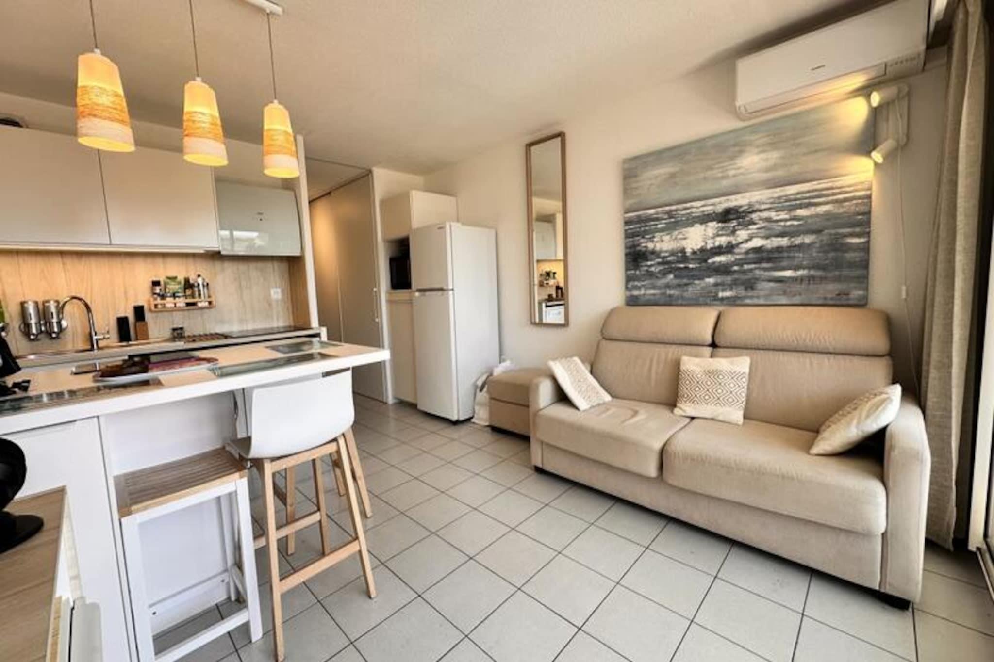 I hjertet af middelhavscharmen inviterer denne dejlige lejlighed med et soveværelse dig til at opleve den fredfyldte skønhed i Le Grau-du-Roi. Kun en kort gåtur fra sandstrandene tilbyder denne sikre og luksuriøse bolig en rolig oase, hvor havbrisen og de gyldne solnedgange sætter tonen for din perfekte ferie. Uanset om du søger afslapning eller eventyr, lover denne destination et uforglemmeligt ophold. Lejligheden er designet til komfort og bekvemmelighed og har et hyggeligt soveværelse med en dobbeltseng, en lys stue med en sovesofa og et fuldt udstyret køkken med moderne apparater såsom ovn, mikrobølgeovn og kaffemaskine. Det moderne badeværelse har et badekar, og den private terrasse med udsigt over den fælles pool er perfekt til spisning under åben himmel eller afslapning efter en dag med udforskning. Yderligere faciliteter som aircondition, gratis Wi-Fi og en vaskemaskine sikrer et problemfrit ophold. Boligen kan prale af en fælles udendørs pool og solarium, der er åben fra juni til september, og som giver et forfriskende tilflugtssted på varme dage. Beliggende kun fem minutters gang fra stranden, kan du nemt nyde afslappende gåture langs fiskerihavnen, nyde lokale fiske- og skaldyrsdelikatesser eller udforske de betagende landskaber i den nærliggende Camargue-region. Butikker, restauranter og underholdningsmuligheder ligger alle i umiddelbar nærhed, hvilket gør det til en ideel base for par, små familier eller fjernarbejdere. Le Grau-du-Roi tilbyder den perfekte blanding af kystnær afslapning og pulserende landsbyliv. Med sine maleriske omgivelser, moderne bekvemmeligheder og førsteklasses beliggenhed er denne lejlighed din indgang til at opdage Middelhavets bedst bevarede hemmeligheder. Pak ud, slap af, og lad Camargues charme omfavne dig.