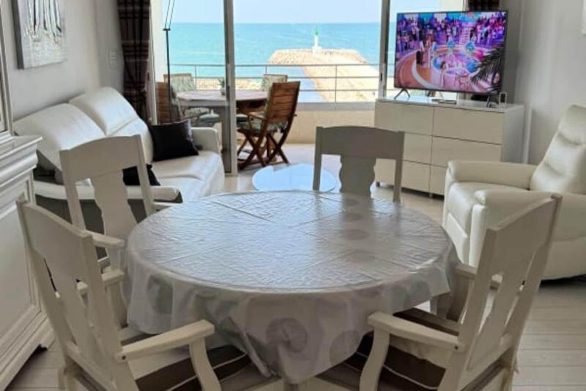 Denne fantastiske lejlighed ligger midt i den pulserende charme i Grau du Rois fiskerihavn og tilbyder en førsteplads til de betagende rytmer af kystlivet. Med sin sydvestvendte terrasse kan du nyde panoramaudsigten over kanalen og det glitrende Middelhav, hvor fiskerbåde glider forbi, og solnedgange maler himlen i nuancer af guld og karmosinrød. Kun få skridt fra sandstranden og de travle butikker inviterer dette tilflugtssted dig til at opleve den autentiske atmosfære på Camargue-kysten. \n\nIndenfor er lejligheden en oase af lys og komfort. Beliggende på tredje sal i Quai Colbert har den to indbydende soveværelser, begge med queensize-senge, der sikrer afslappende nætter. Stuen, komplet med en hyggelig sofa, åbner op til et fuldt udstyret tekøkken, hvor du kan tilberede friske fiske- og skaldyrsretter. Moderne faciliteter såsom Wi-Fi, tv og essentielle apparater som vaskemaskine og kaffemaskine giver alle hjemmets bekvemmeligheder. Selvom lejligheden ikke har aircondition, sikrer ventilatorer og dens dobbeltsidige design en forfriskende brise i løbet af sommermånederne. \n\nBeliggenheden er virkelig uovertruffen. Beliggende kun 50 meter fra stranden og omgivet af restauranter, butikker og det ikoniske gamle fyrtårn, finder du alt hvad du behøver inden for rækkevidde. Uanset om du slentrer langs kajen, nyder lokale delikatesser eller udforsker det nærliggende Camargue naturreservat, er hvert øjeblik her gennemsyret af kystcharme. \n\nPerfekt til en romantisk ferie, familieferie eller endda en forretningsrejse, tilbyder denne lejlighed en unik blanding af afslapning og eventyr. Pak dine tasker ud og lad skønheden ved Grau du Rois kyst omfavne dig for et uforglemmeligt ophold.