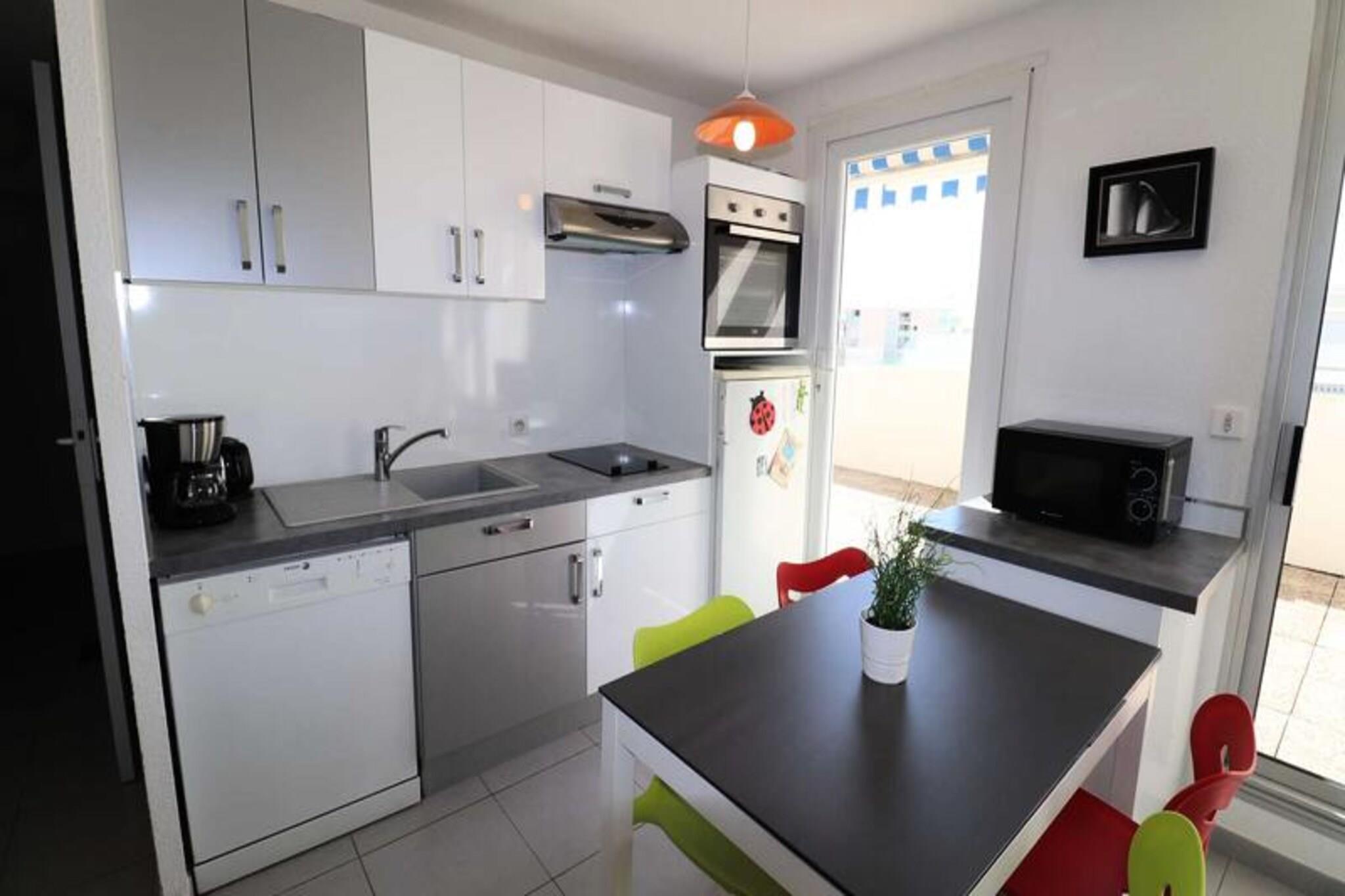 Nyd middelhavscharmen i denne dejlige lejlighed med to soveværelser, perfekt beliggende i den eftertragtede Floralies 2 Residence i Grau-du-Roi. Beliggende på tredje og øverste sal kan dette lyse og luftige tilflugtssted prale af en rummelig møbleret terrasse på 23 m², der inviterer dig til at nyde solen eller spise under åben himmel under den sydlige himmel. Uanset om du nyder en morgenkaffe eller slapper af efter en dag med udforskning, tilbyder terrassen en rolig oase med udsigt over de pulserende omgivelser. Indenfor er lejligheden omhyggeligt designet til komfort og bekvemmelighed. Den åbne stue har et fuldt udstyret køkken med moderne apparater, herunder opvaskemaskine, vaskemaskine, ovn og mikrobølgeovn, hvilket gør madlavning til en leg. Sovepladserne er perfekte til familier eller venner, med et hyggeligt soveværelse med en dobbeltseng og et andet med to enkeltsenge. Et elegant badeværelse med bruseniche og et separat toilet bidrager til dit opholds bekvemmelighed. Selve boligen er et fristed for afslapning med adgang til swimmingpools, petanquebaner og en legeplads. Kun en kort gåtur væk finder du den gyldne sandstrand, travle butikker, det charmerende bycentrum og den livlige havn. Privat parkeringskælder sikrer en stressfri ankomst og afrejse, mens valgfrie tjenester som Wi-Fi og leje af sengelinned opfylder alle dine behov. Uanset om du er her for at slappe af ved poolen, udforske Camargue-regionens naturlige skønhed eller nyde det lokale køkken, er denne lejlighed din port til en uforglemmelig ferie. Oplev den perfekte blanding af komfort, bekvemmelighed og kystnære charme i Grau-du-Roi.