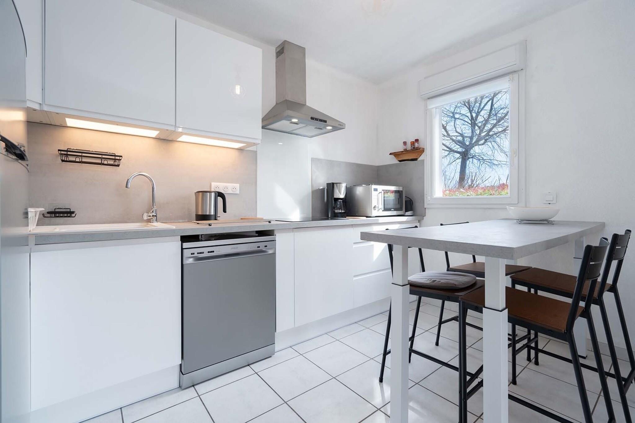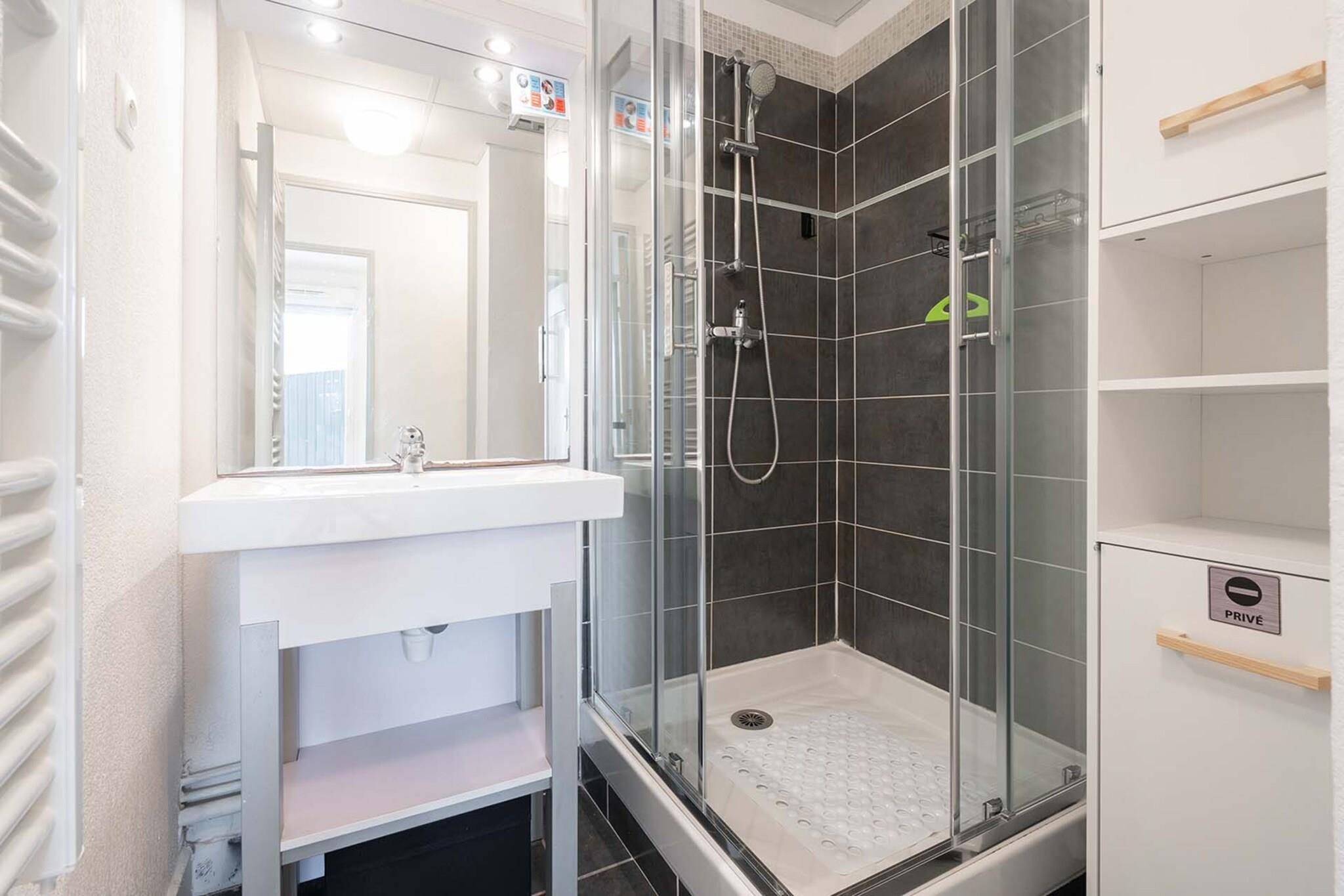 Beliggende i kystbyen Le Grau-du-Roi, er denne lyse 1-værelses lejlighed med en sovesofa komfortabelt vært for op til 4 gæster. Ideel til små familier, det har Wi-Fi, TV, fælles swimmingpool, fitnessrum og sauna. Den private terrasse og havemøbler tilbyder et afslappende udendørsområde, og der er parkering på stedet. Kun 1,7 km fra sandstranden er lejligheden tæt på alt: supermarked (2,3 km), centrum (100 m) og restauranter. Uanset om du nyder en stranddag eller udforsker Languedoc-Roussillon-regionen, er denne beliggenhed perfekt til en kystferie. Det fuldt udstyrede køkken omfatter opvaskemaskine, mikroovn, køleskab, kaffemaskine, brødrister og elkedel. Efter en dag i solen kan du slappe af i det moderne badeværelse med bruser.
