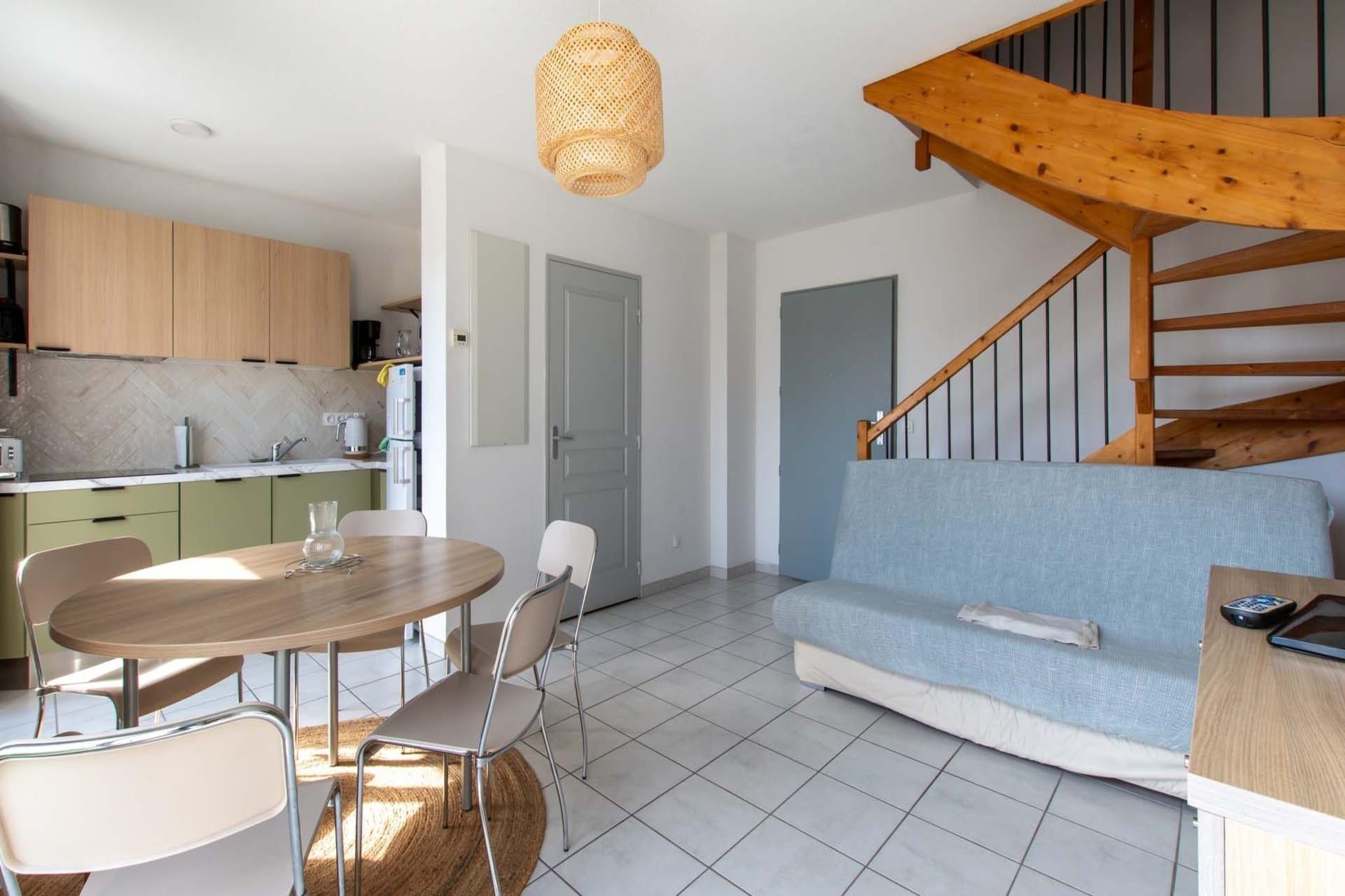 Lys og hyggelig, denne 2-værelses lejlighed i Le Grau-du-Roi tilbyder et behageligt ophold for op til 7 gæster, ideel til familier eller små grupper. Det 50 m² store layout inkluderer moderne bekvemmeligheder som Wi-Fi, aircondition, elvarme og tv. Gæsterne kan nyde den opvarmede fælles pool, fitnesscenter, balkon og grillplads. Udendørs møbler og udendørs parkering i samme bygning bidrager til komforten. Beliggende kun 100 m fra byens centrum, er butikker, caféer og restauranter let tilgængelige. Sandstranden og et supermarked ligger begge kun 2 km væk, perfekt til en blanding af afslapning og bekvemmelighed. Det elektriske køkken i åbent plan er fuldt udstyret med køleskab, fryser, mikroovn, ovn og køkkenudstyr. En kaffemaskine, brødrister og kedel sikrer, at du er klar til morgenmad og snacks. Med fredelige omgivelser ved havet og tæt på attraktioner gør denne lejlighed til et perfekt tilflugtssted.