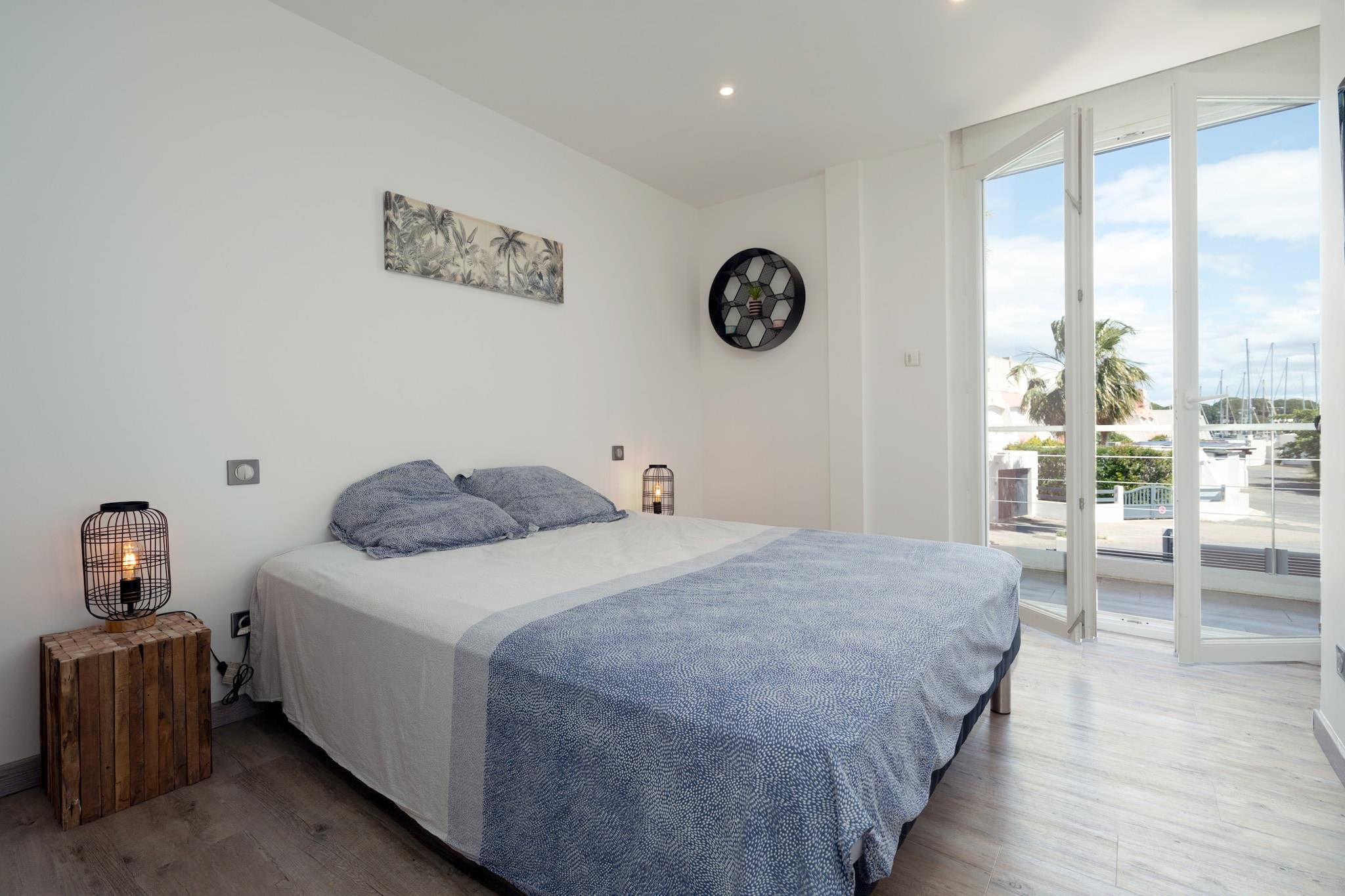 Elegant villa med havudsigt Oplev en sjælden perle i Le Grau du Roi – en elegant villa på 150 kvadratmeter med aircondition, perfekt beliggende langs lystbådehavnen. Med en fantastisk udsigt over havet, sydvendt solskin og førsteklasses komfort byder dette rummelige tilflugtssted op til 6 gæster velkommen til en raffineret og afslappende ferie ved Middelhavskysten. Plads, stil og ro Villaen har fire smukt indrettede soveværelser, herunder en privat suite med eget badeværelse og tv. Nyd det fuldt udstyrede køkken, den solrige terrasse med udsigt over lystbådehavnen og et hyggeligt opholdsområde designet til samvær. Luksuriøse faciliteter som WiFi, gasgrill, bruseniche og to private parkeringspladser sikrer, at dit ophold bliver lige så ubesværet, som det er luksuriøst. Kystcharme lige uden for døren Beliggende på Avenue Petite Caroline, er du kun 300 meter fra butikker og restauranter og 1800 meter fra sandstrandene. Udforsk charmen ved Le Grau du Roi – fra bådture og aftenspaadere til lokale markeder og restauranter ved vandet. For et gourmetpræg, prøv L’Amarette, en raffineret restaurant ved havet, der er elsket af lokalbefolkningen. Med sin fredelige beliggenhed og panoramaudsigt lover denne villa et virkelig exceptionelt ophold ved havet.
