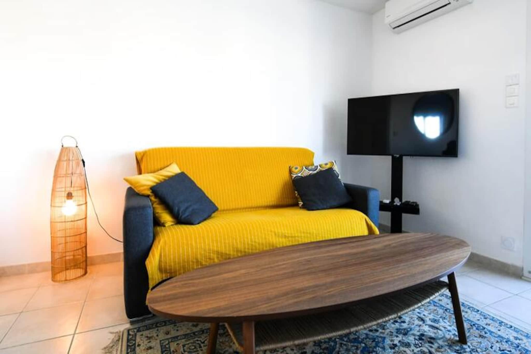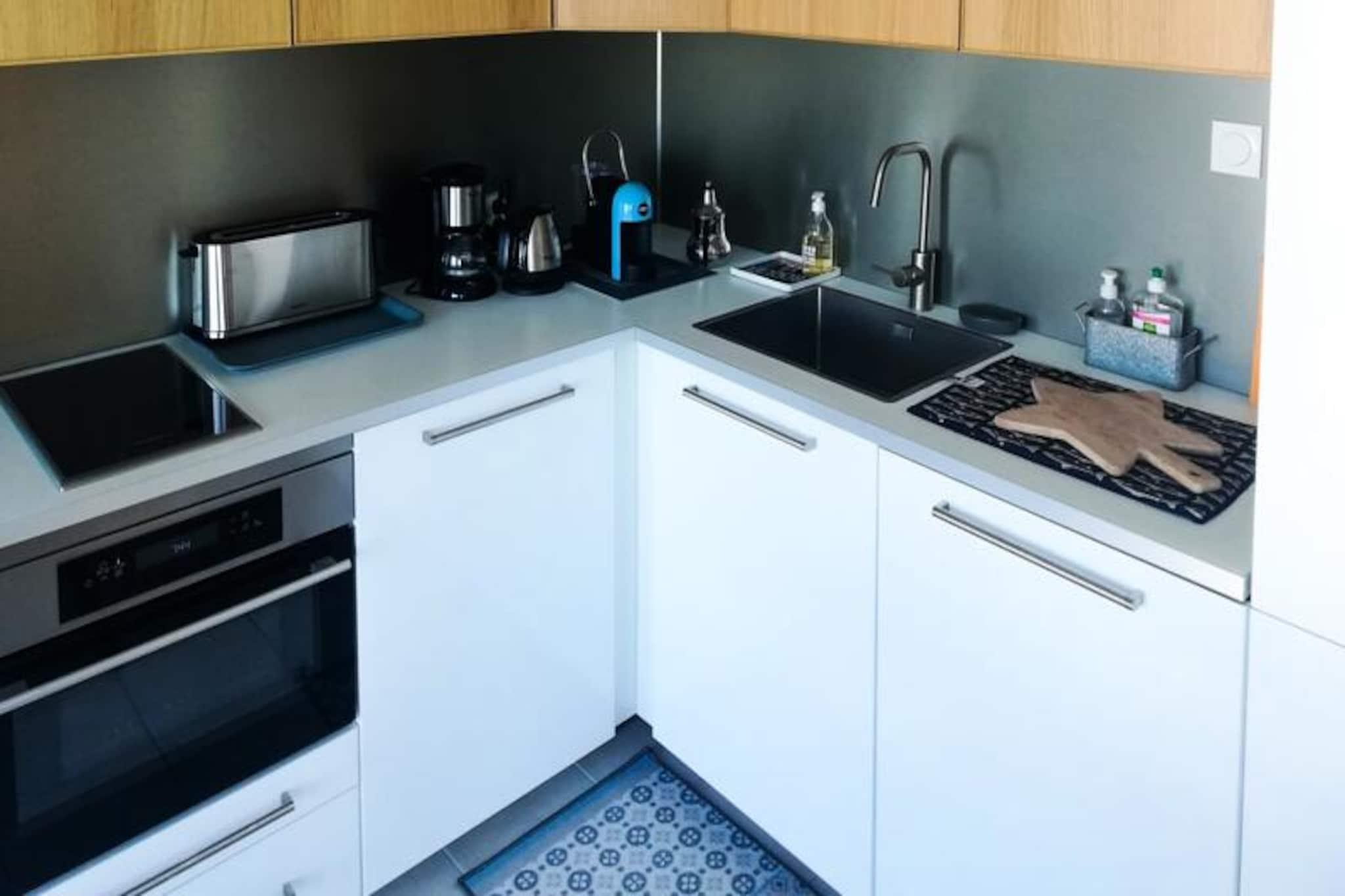 Hvor charmen ved en traditionel fiskerby møder Middelhavets skønhed, tilbyder denne lejlighed på Quai Colbert i Grau-du-Roi en uovertruffen kystferie. Beliggende ved indgangen til fiskerihavnen, overfor det historiske fyrtårn og kun få skridt fra havet, fordyber denne beliggenhed dig i det pulserende lokale liv. Se trawlere sejle ud ved daggry, fiskere sortere deres fangst og markedsboder fyldt med friske fisk og skaldyr – alt sammen fra din komfortable feriebolig. Den livlige atmosfære i Grau-du-Roi kombineret med den fredfyldte udsigt over havet skaber en uforglemmelig oplevelse. Indvendigt er lejligheden omhyggeligt designet med henblik på komfort og bekvemmelighed. Med to hyggelige soveværelser – det ene med en 160 cm seng og det andet med en 140 cm seng – kan den komfortabelt rumme op til fire gæster. Den lyse stue med sovesofa og aircondition indbyder til afslapning, mens du nyder den betagende udsigt over kanalen, det gamle fyrtårn og det glitrende hav. Et fuldt udstyret tekøkken med moderne apparater som opvaskemaskine, vaskemaskine og kaffemaskine sikrer, at du har alt, hvad du behøver for et stressfrit ophold. Badeværelset med bruser og separat toilet bidrager til det praktiske, mens den raffinerede indretning skaber en varm og indbydende atmosfære. Lejlighedens beliggenhed er uovertruffen. Kun to minutters gang fra stranden og lokale butikker har du alt, hvad du har brug for, lige ved hånden. Uanset om du udforsker den nærliggende Camargue-region, nyder friske skaldyr på lokale restauranter eller blot slapper af ved havet, er dette det perfekte udgangspunkt for din ferie ved Middelhavet. En privat parkeringsplads og nærhed til offentlig transport gør det nemt at udforske længere væk, herunder Montpellier og dens TGV-station. For dem, der søger en blanding af kystcharme, moderne komfort og autentiske lokale oplevelser, er denne lejlighed i Grau-du-Roi det ideelle rejsemål. Lad havets beroligende lyde og havnens livlige energi skabe minder, der varer hele livet.