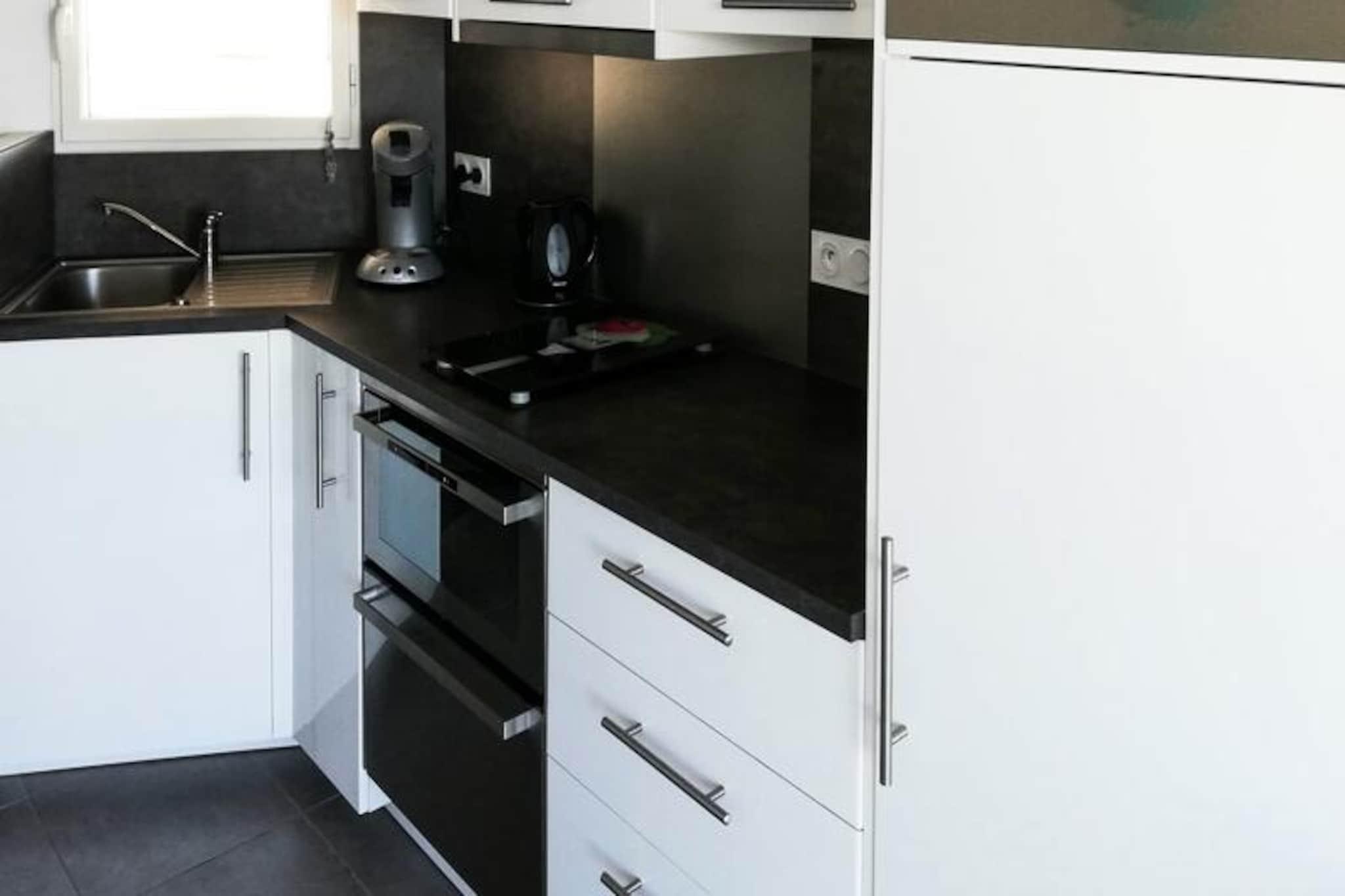 Højt over det glitrende Middelhav tilbyder denne charmerende etværelseslejlighed i Grau-du-Roi en rolig kystferie med betagende havudsigt. Beliggende på 4. og øverste sal i Château Leenhardt-residensen, tilbyder lejlighedens nordvestvendte terrasse en plads på første række til fantastiske solnedgange over Aigues-Mortes og La Grande-Motte-bugten. Her inviterer den blide havbrise og den rolige atmosfære dig til at slappe af og koble fra i et virkelig idyllisk miljø. Indenfor er det moderne og lyse opholdsrum omhyggeligt designet til komfort og bekvemmelighed. Den faste 160 cm dobbeltseng sikrer afslappende nætter, mens det åbne, fuldt udstyrede køkken gør det til en fornøjelse at tilberede måltider. Fra vaskemaskinen til kaffemaskinen er hver eneste detalje tænkt over for at gøre dit ophold problemfrit. Badeværelset har bruser og toilet, og den reversible aircondition garanterer komfort året rundt. Inkluderet i dit ophold er frisk sengetøj, bløde håndklæder og en basis velkomstpakke, der sikrer, at du føler dig hjemme fra det øjeblik, du ankommer. Træd udenfor, og du finder alt, hvad du behøver, inden for gåafstand. Residensen tilbyder direkte privat adgang til stranden, mens det livlige landsbycentrum kun ligger få øjeblikke væk. Udforsk de lokale markeder, nyd frisk fisk og skaldyr på nærliggende restauranter, eller nyd en afslappet aften på en tapasbar. For eventyrlystne er cykelstier, vandsport og udflugter til Camargue lige i nærheden. Strandene Espiguette og Port-Camargue, samt familievenlige attraktioner som Luna Park og Amigoland, ligger kun en kort køretur væk. Uanset om du søger en romantisk ferie eller et fredeligt tilflugtssted ved havet, kombinerer denne lejlighed moderne komfort med en uovertruffen beliggenhed. Lad Grau-du-Rois og Middelhavskystens skønhed skabe minder, du vil værdsætte for evigt.