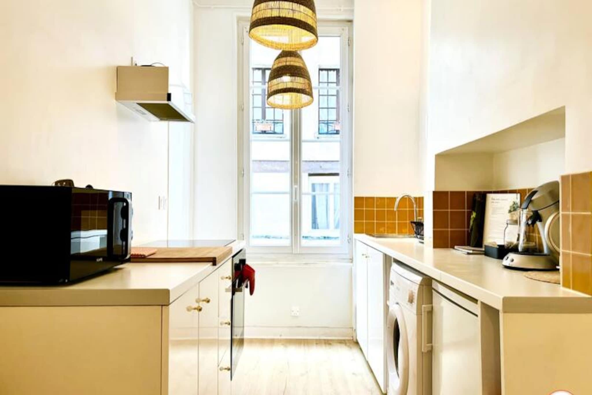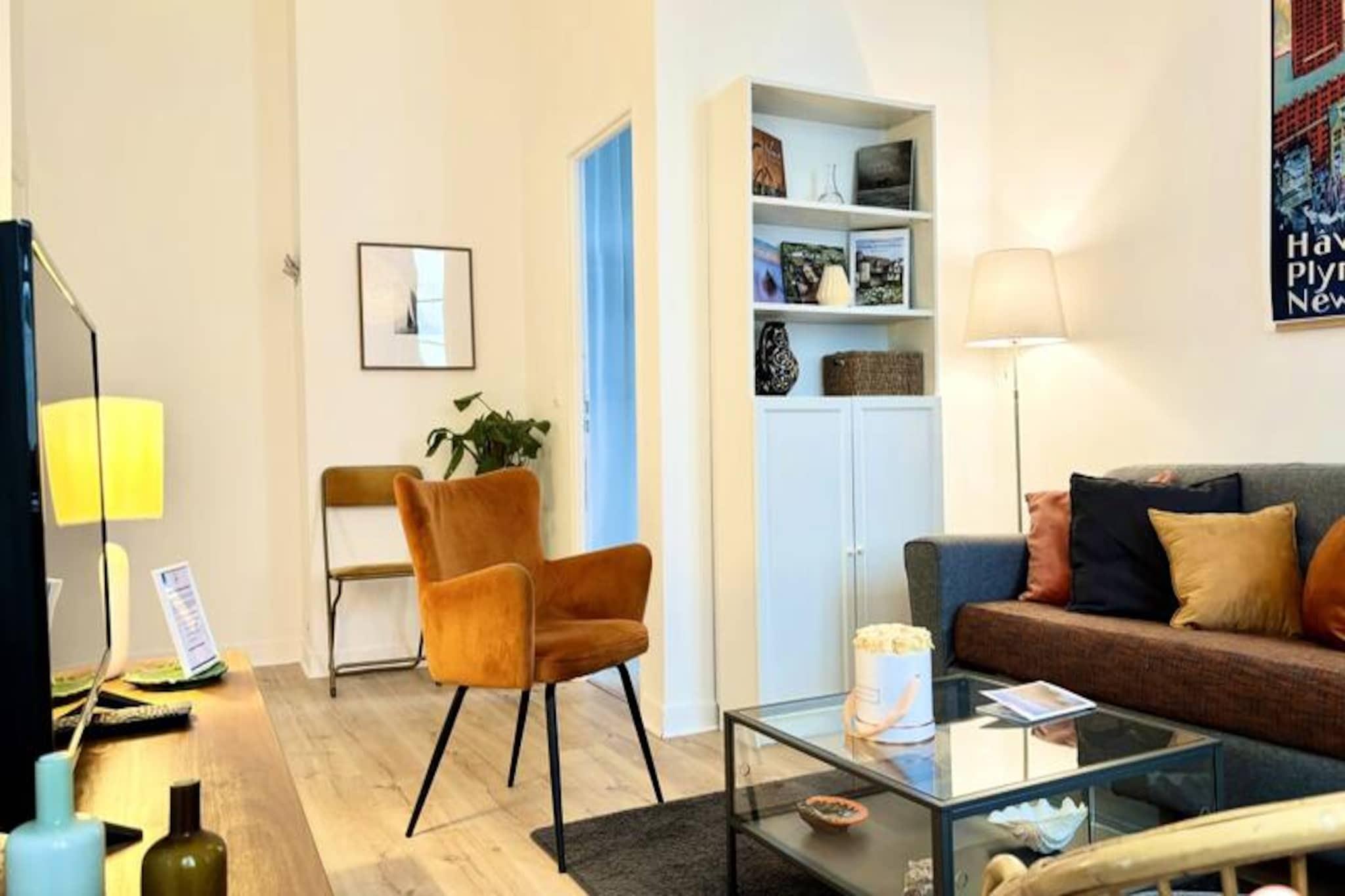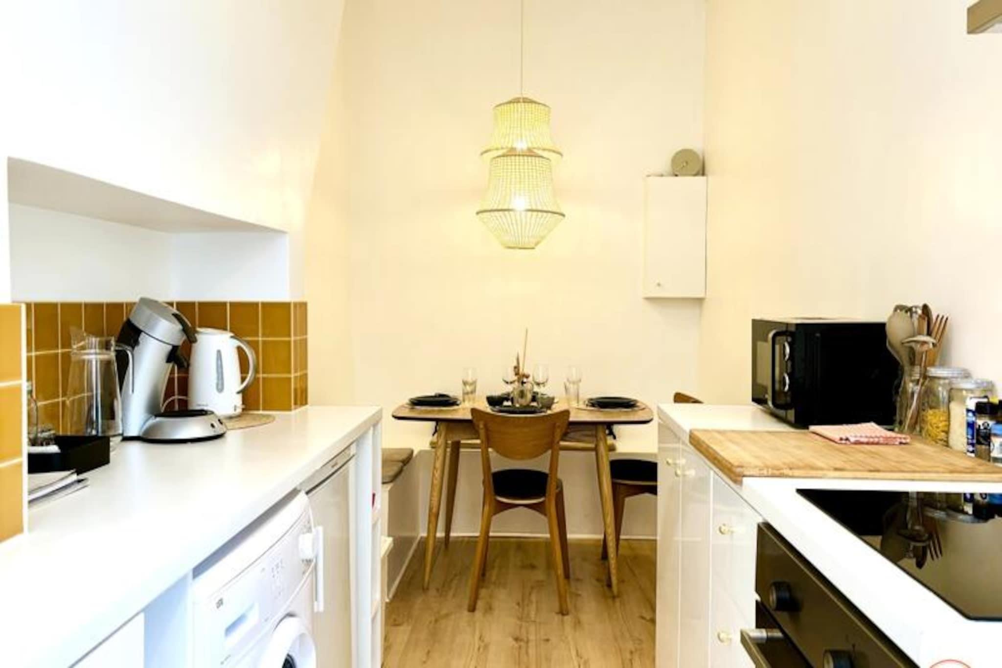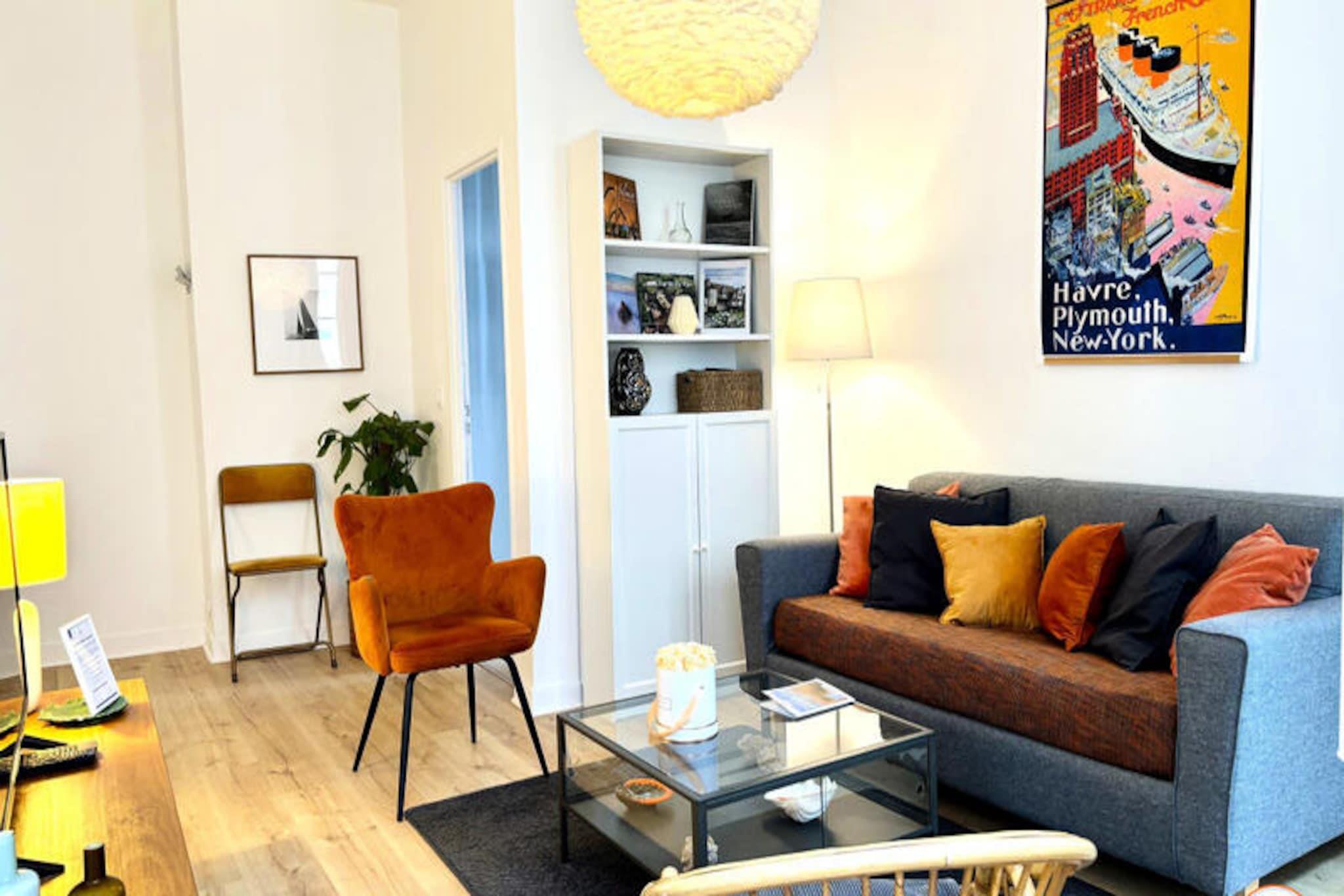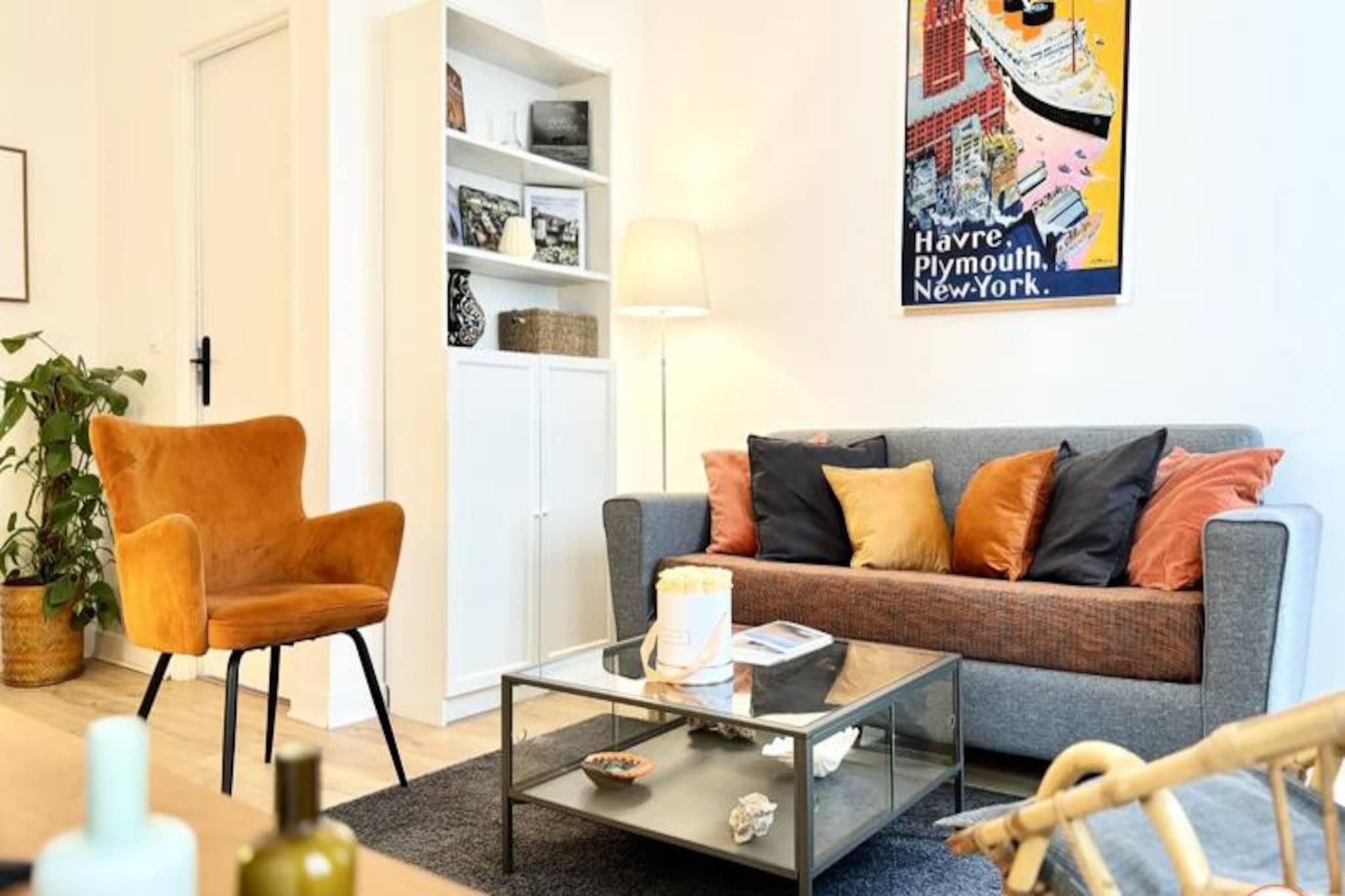 Denne charmerende lejlighed, beliggende på første sal i en historisk bygning i hjertet af Saint-François, tilbyder et behageligt ophold for op til 6 gæster. Det har to hyggelige soveværelser, herunder en queen-size seng og en dobbeltseng, begge med sengetøj af høj kvalitet. Lejligheden er kæledyrsvenlig og tillader små kæledyr (op til 10 kg) med forudgående godkendelse mod et ekstra gebyr. Gæsterne kan nyde en afslappende stue med en avanceret sovesofa og et smart-tv. En rejseseng og barnestol er også tilgængelige efter anmodning. Ejendommen er ideelt beliggende, kun en kort gåtur fra byens hovedattraktioner, herunder museer, restauranter og den travle fiskerihavn. St François Island er et pulserende område, der tilbyder en blanding af lokal charme, kunst og historie, alt inden for rækkevidde. Lejligheden ligger også tæt på Le Havres naturskønne strande, med praktiske offentlige transportmuligheder for at udforske byen. Indvendigt har lejligheden et fuldt udstyret køkken med induktionskomfur, ovn, kaffemaskine og mere, perfekt til at tilberede måltider derhjemme. Det moderne brusebad har bruser i italiensk stil, komplet med hårtørrer og friske håndklæder. Yderligere faciliteter omfatter gratis Wi-Fi, te og kaffe til din ankomst og en vaskemaskine for ekstra bekvemmelighed.
