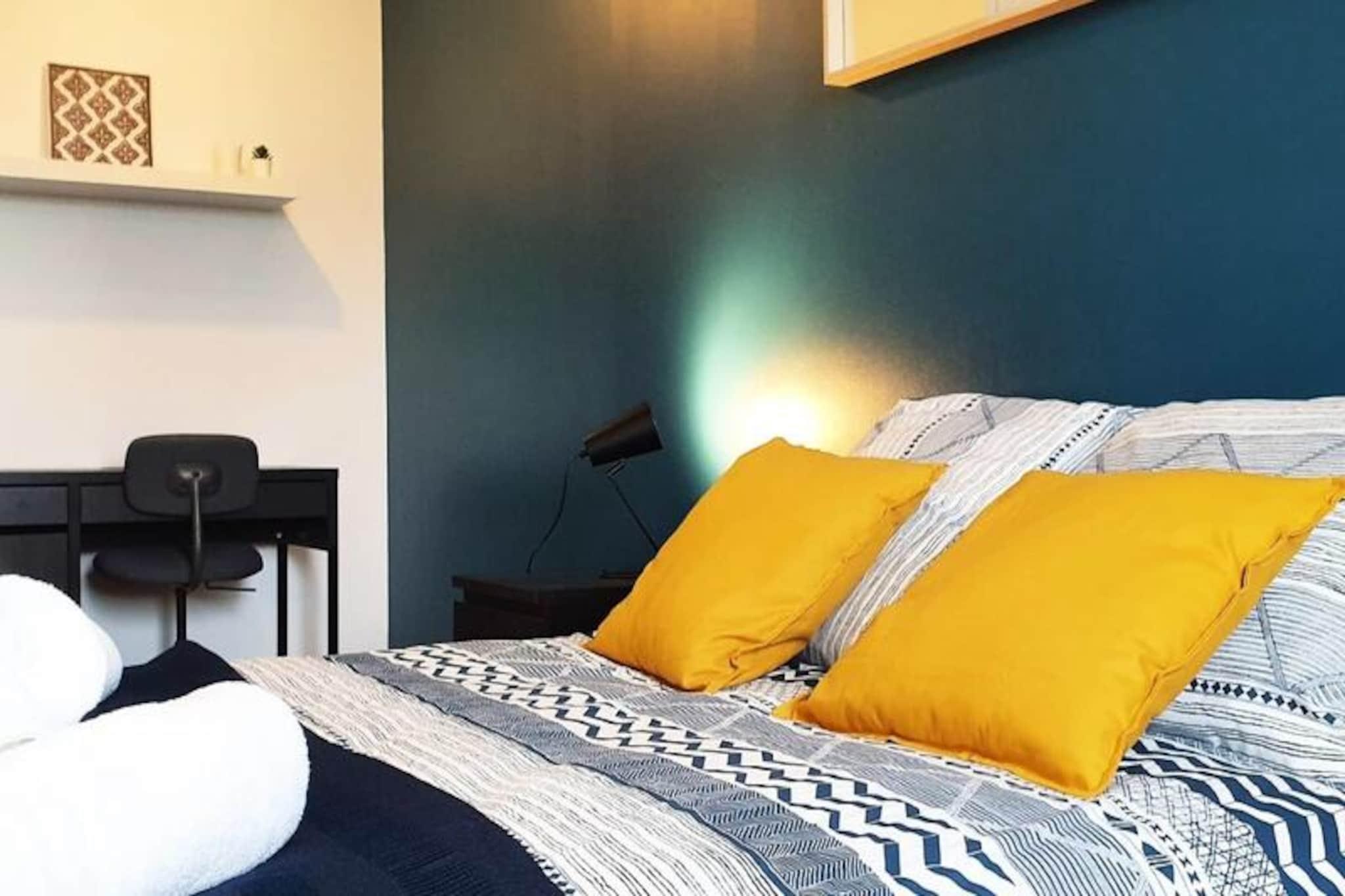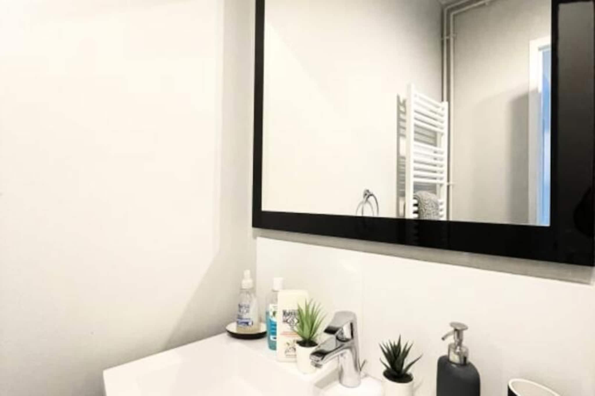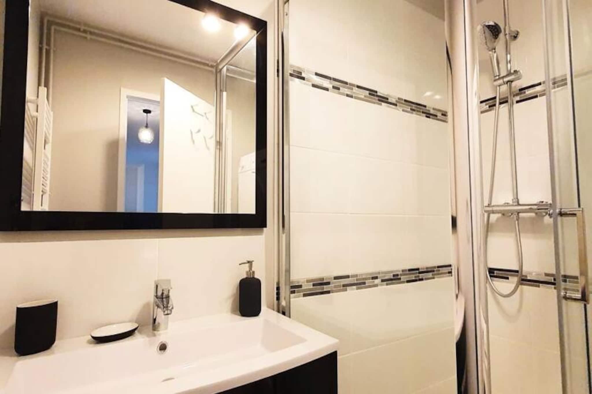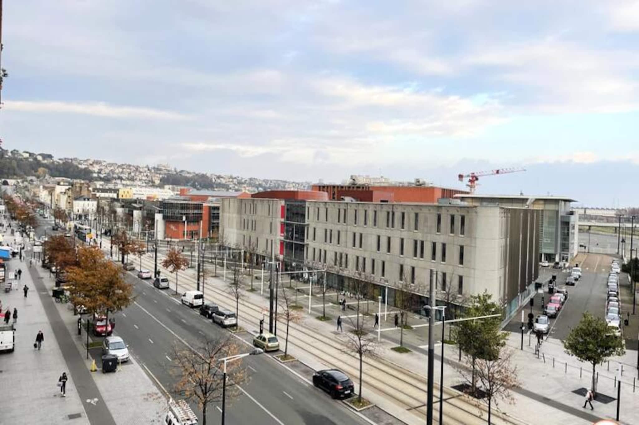 Denne smukt indrettede lejlighed på 70 m² er et ideelt valg for familier, professionelle eller grupper af venner, og tilbyder komfortabel indkvartering for op til 6 gæster. Det har tre rummelige soveværelser med dobbeltsenge, en lys stue med et UHD Smart TV og rigelig opbevaringsplads, herunder et påklædningsværelse i hvert soveværelse. Lejligheden er beliggende på 4. sal i en rolig, let tilgængelig bygning, med elevator adgang for bekvemmelighed. Det er ikke kæledyrsvenligt, hvilket sikrer et fredeligt miljø for alle gæster. Denne lejlighed ligger i hjertet af Le Havre og giver nem adgang til lokale attraktioner, caféer og markeder. Kun 200 meter fra lejligheden finder du både togstationen og sporvognen, hvilket gør det nemt at udforske byen og dens omgivelser. Le Havres hypercenter ligger kun 10 minutter til fods, og gæsterne kan besøge de berømte D-Day-strande, maleriske landsbyer i Pays d'Auge eller de fantastiske klipper i Etretat, alt sammen inden for en kort køretur eller sporvognstur. Lejligheden er fuldt udstyret med et moderne køkken med køleskab, ovn, induktionskomfur, mikroovn, opvaskemaskine og kaffemaskine. Badeværelset er udstyret med vaskemaskine og tørretumbler samt separat toilet. Senge- og håndklæder, gratis Wi-Fi og rengøringsfaciliteter er til rådighed for et behageligt ophold.