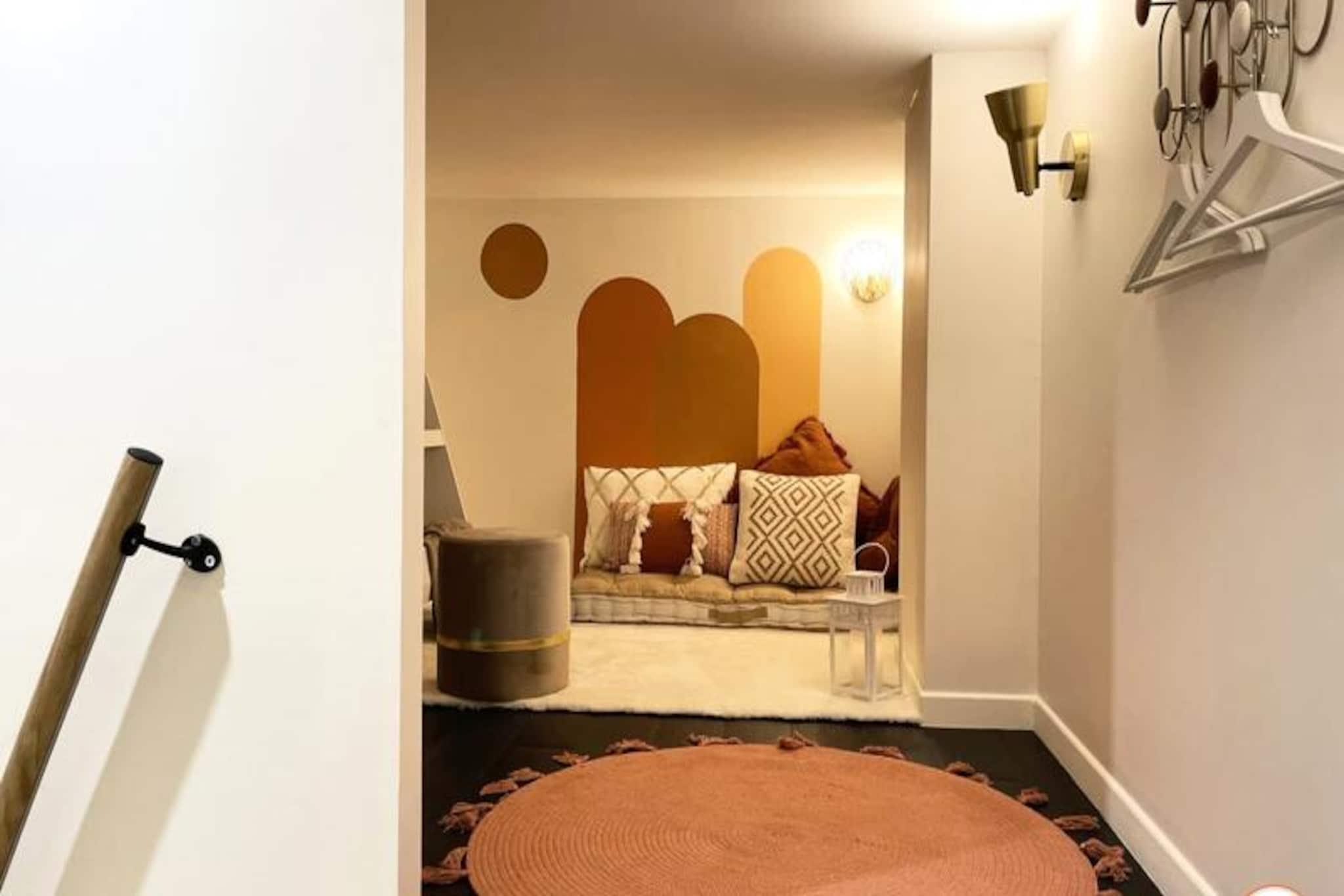 Dette charmerende feriehus tilbyder et hyggeligt tilflugtssted, komplet med en overdådig queen-size seng til ultimativ afslapning. Den er gennemtænkt designet til at byde pelsede ledsagere velkommen, hvilket gør den til et kæledyrsvenligt tilflugtssted. Gæsterne kan slappe af med moderne bekvemmeligheder såsom et Smart TV med adgang til streaming og en læsehjørne til stille øjeblikke. Hjemmet sikrer en fredelig atmosfære, hvilket gør det perfekt til par eller små familier, der søger en flugt. Beliggende kun 300 meter fra det travle bycentrum, er denne ejendom omgivet af pulserende attraktioner. Gå en tur til nærliggende caféer, nyd lokale delikatesser på markeder, eller udforsk kulturelle perler, herunder museer og gallerier, inden for en radius på 500 meter. Naturentusiaster vil sætte pris på stranden, kun 700 meter væk, med en fantastisk udsigt og rolige gåture. Kvarteret blander bekvemmelighed med charme og lover et berigende ophold. Feriehuset har fuldt udstyret køkken, så gæsterne kan tilberede måltider i ro og mag. Et rummeligt badeværelse med italiensk bruser bidrager til komforten, mens gennemtænkte detaljer som håndklæder og gratis te og kaffe forbedrer oplevelsen. Valgfrie faciliteter såsom privat parkering og kuraterede romantiske opstillinger kan arrangeres, hvilket sikrer et skræddersyet ophold.