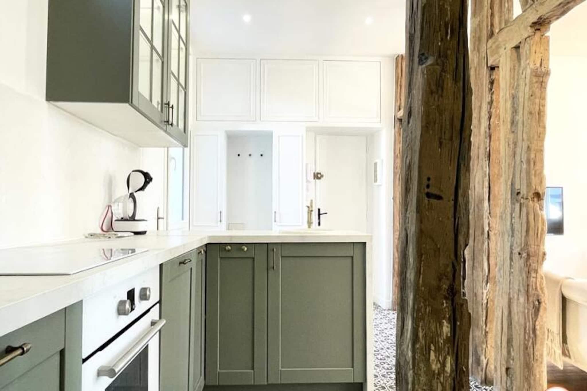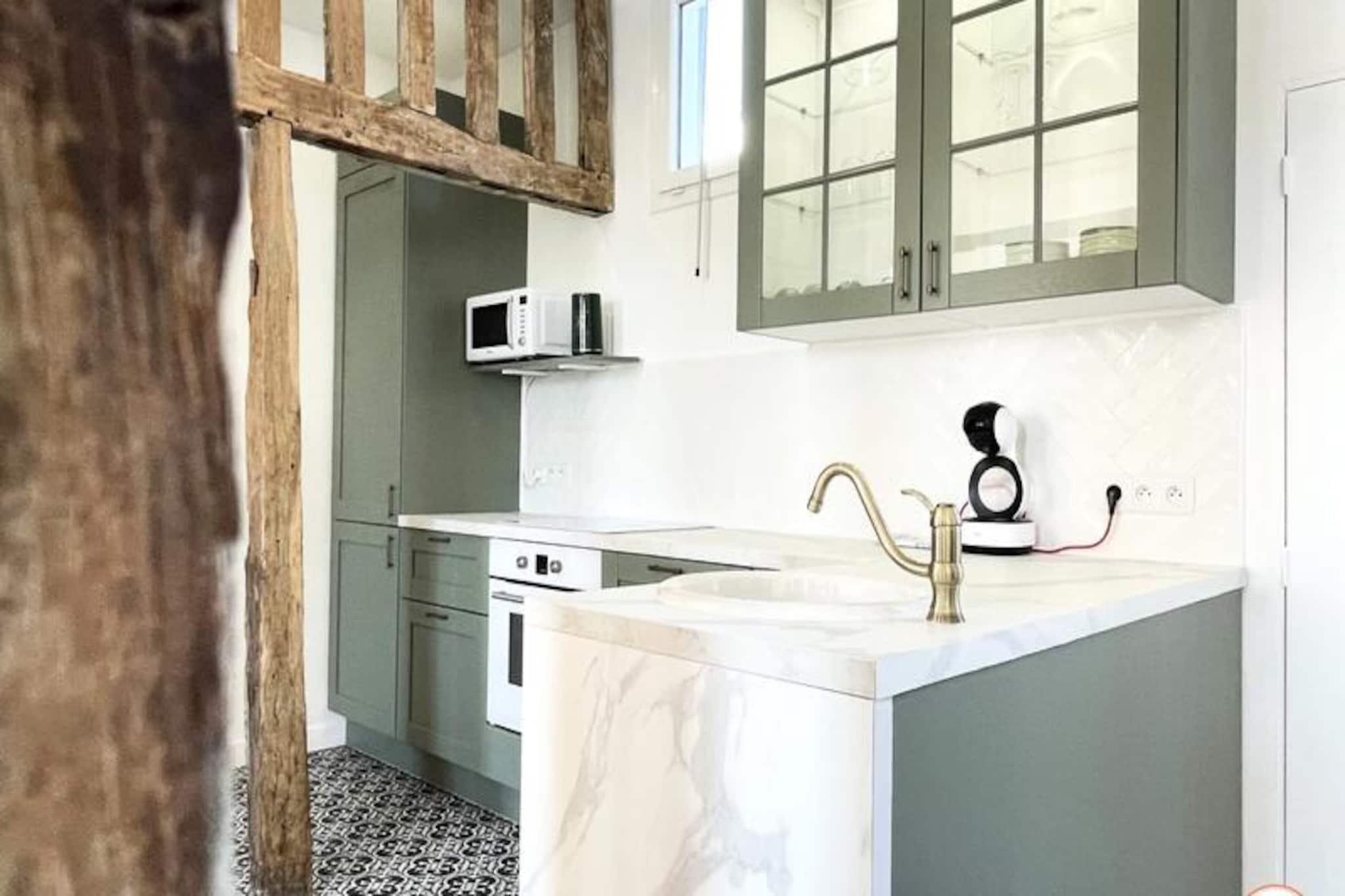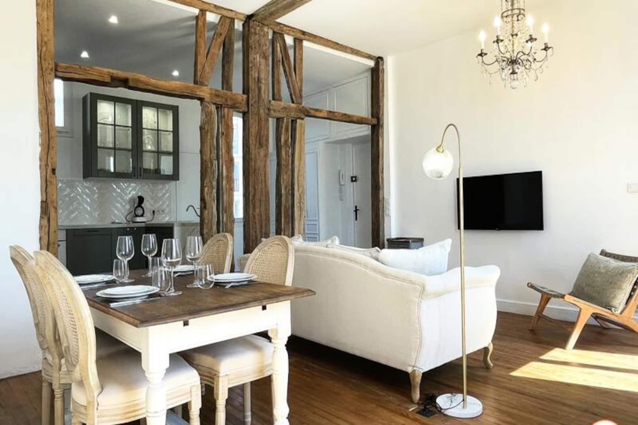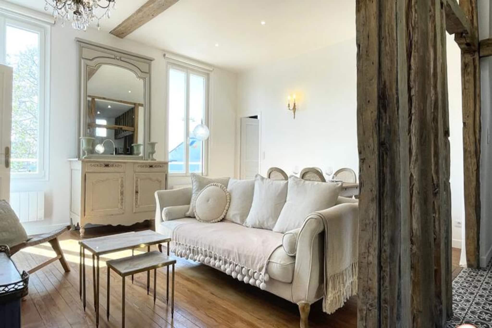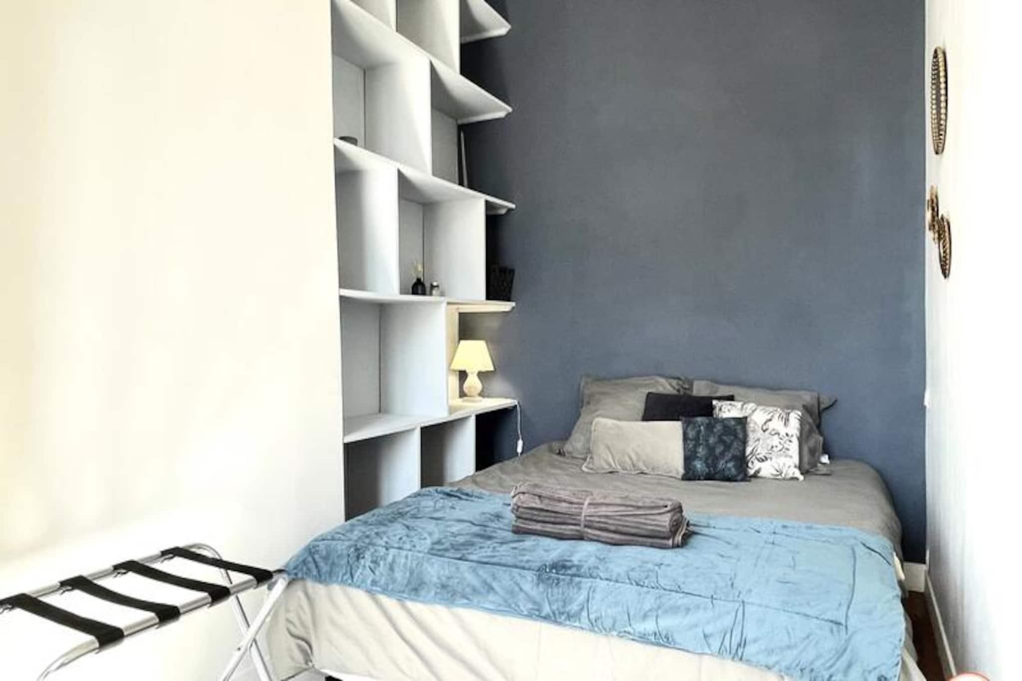 Denne charmerende lejlighed i Saint François-distriktet tilbyder et komfortabelt og moderne ophold, ideelt for op til fire gæster. Ejendommen har to rummelige soveværelser, hver udstyret med en luksuriøs Queen size seng, opbevaringsplads og beroligende indretning. Et lysfyldt opholdsområde inviterer til afslapning, mens det separate toilet og et stilfuldt brusebad sikrer ekstra bekvemmelighed. Sengetøj, badehåndklæder, gratis WiFi og husholdningsartikler såsom en vaskemaskine og opvaskemaskine er til rådighed for din komfort. Bemærk venligst, at kæledyr ikke er tilladt, og at ejendommen er røgfri. Perfekt beliggende, denne lejlighed ligger få skridt fra det pulserende fiskemarked og tilbyder en fantastisk udsigt over fiskerihavnen. Udforsk Le Havres kulturelle perler, herunder det nærliggende Shipowner's House, MuMa-museet og det ikoniske vulkandistrikt, alle inden for gåafstand. Adskillige restauranter, caféer og butikker omgiver området, hvilket bidrager til den livlige kvarterstemning. Marinaen og stranden er let tilgængelige og tilbyder muligheder for fritid og udforskning. Det åbne køkken er designet med moderne bekvemmeligheder og har en ovn, induktionskomfur, køleskab og en Dolce Gusto-kaffemaskine, der dækker alle dine kulinariske behov. En lys stue-spisestue giver et hyggeligt rum til måltider og afslapning. Lejligheden ligger på første sal (kun trapper) i en sikker bygning, med parkering tilgængelig i nærheden. Det er en fremragende base for at udforske regionen, fra Deauville til Étretat, hvilket sikrer et mindeværdigt ophold i Normandiet.
