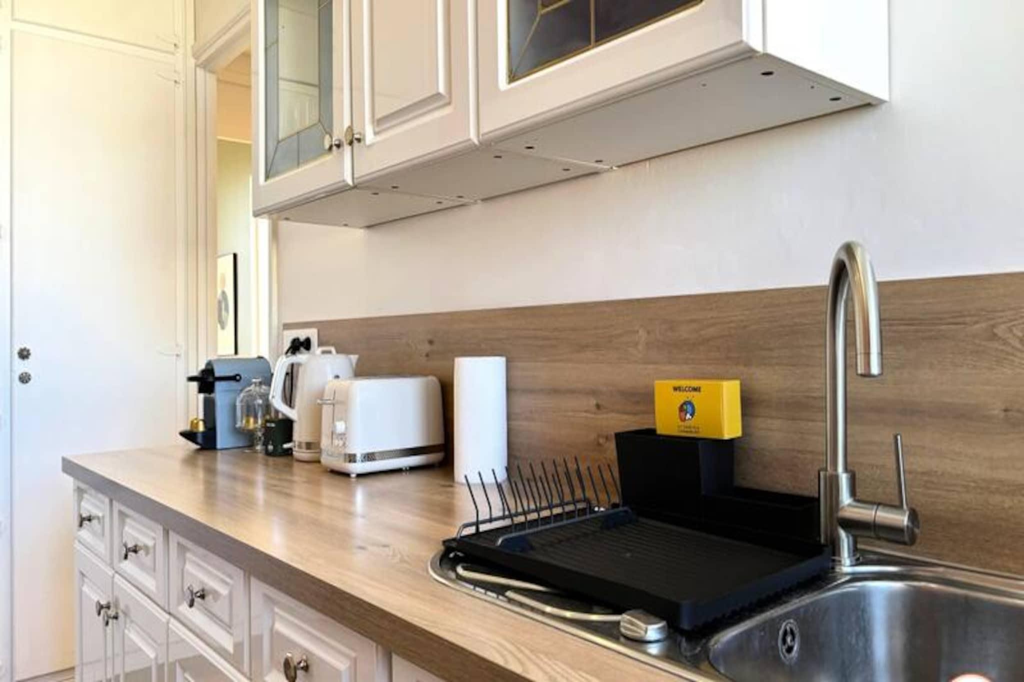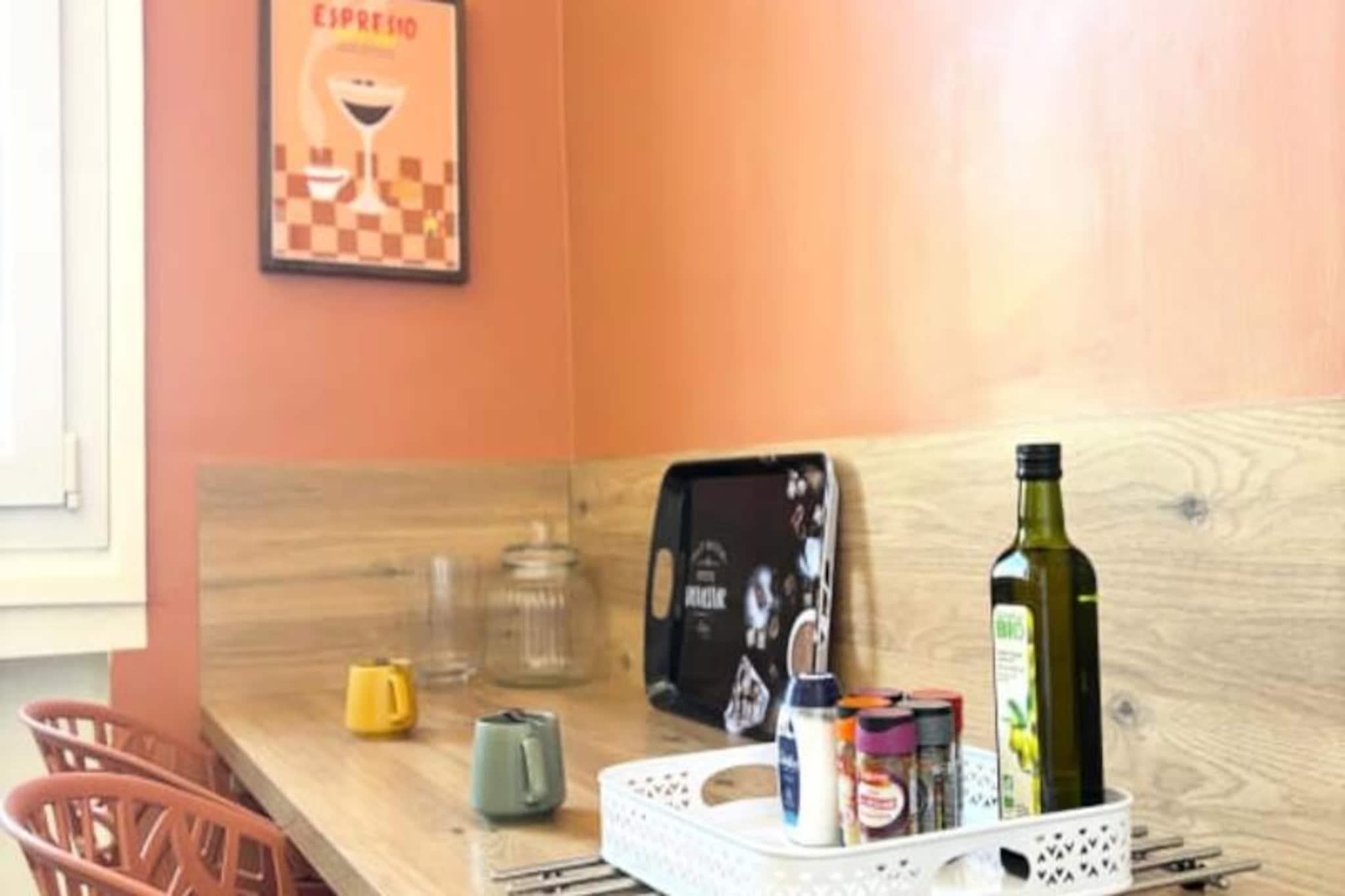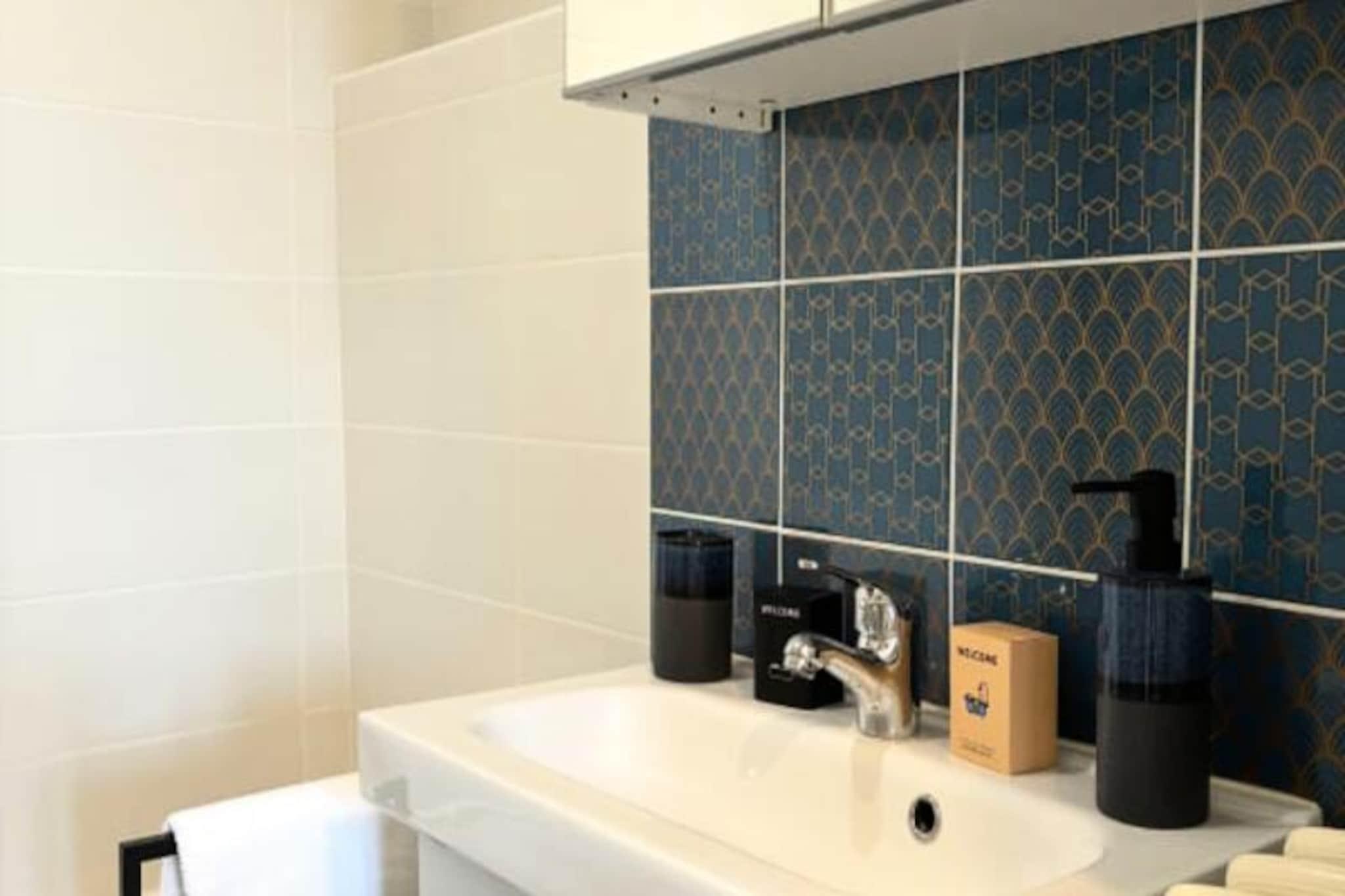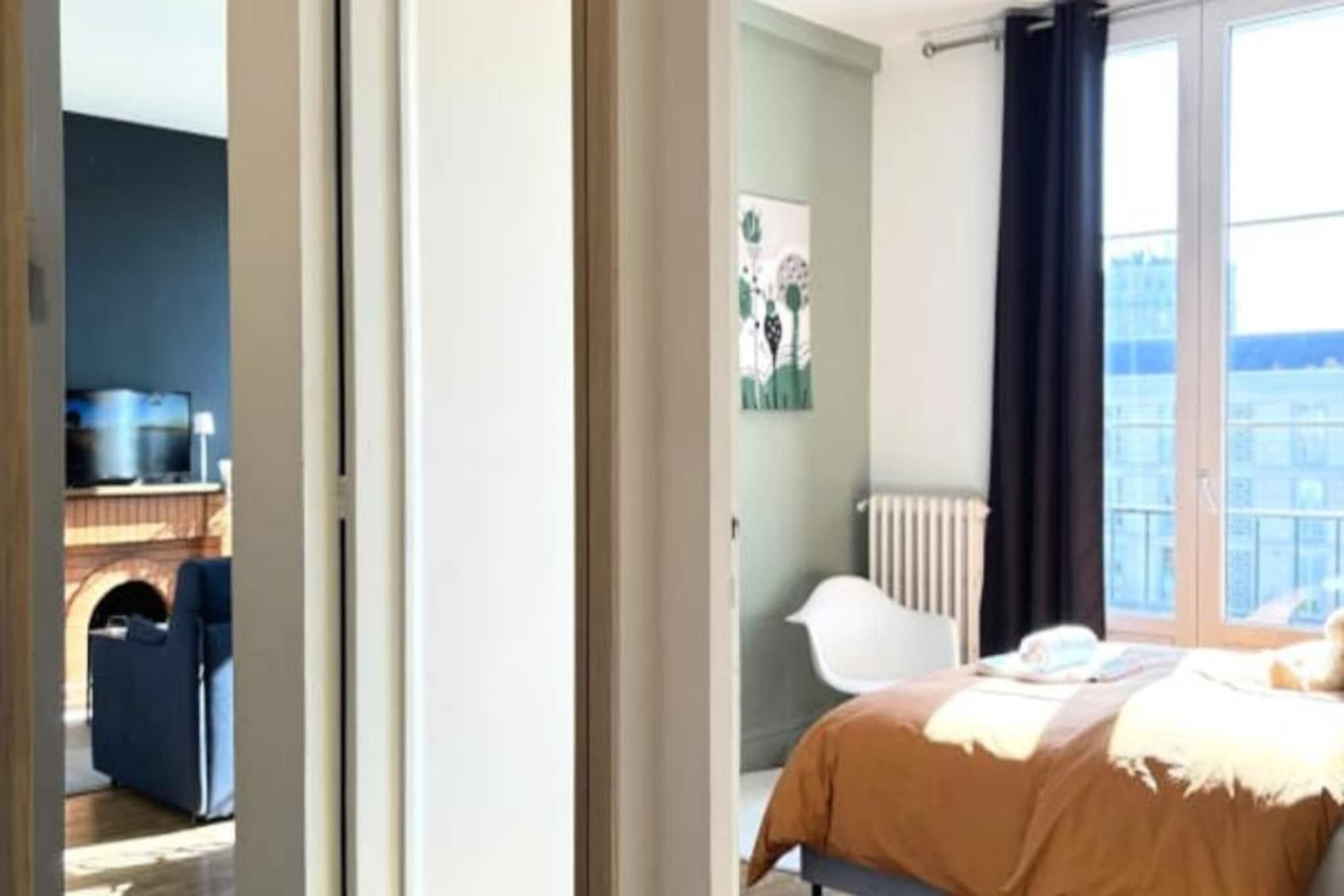 Denne charmerende lejlighed, beliggende på 4. sal i en rolig bolig i Le Havre, kan komfortabelt rumme op til 4 gæster. Det tilbyder et soveværelse med en queen-size seng (160x200 cm) og et opholdsområde med en sovesofa (140x200 cm), der forvandler sig til en soveplads for yderligere gæster. Lejligheden er ikke kæledyrsvenlig. Det er udstyret med et smart-tv, der giver underholdning og et badeværelse med badekar. Lejlighedens centrale beliggenhed placerer dig kun 200 meter fra strand og rådhus. Den UNESCO World Heritage-listede arkitektur i Le Havre omgiver dig, og det berømte naturhistoriske museum er kun en kort gåtur væk. Gæsterne kan udforske nærliggende madbutikker, caféer og det pulserende Les Halles-marked, perfekt til en afslappet dag ude. Ejendommen er veludstyret med et fuldt møbleret køkken med køleskab, ovn/mikroovn, Nespresso-kaffemaskine og vaskemaskine. Stuen og spisepladsen er perfekte til at slappe af efter en dag med udforskning. Der er gratis parkering til elbiler, og offentlige transportmuligheder såsom sporvogne og busser er inden for rækkevidde.