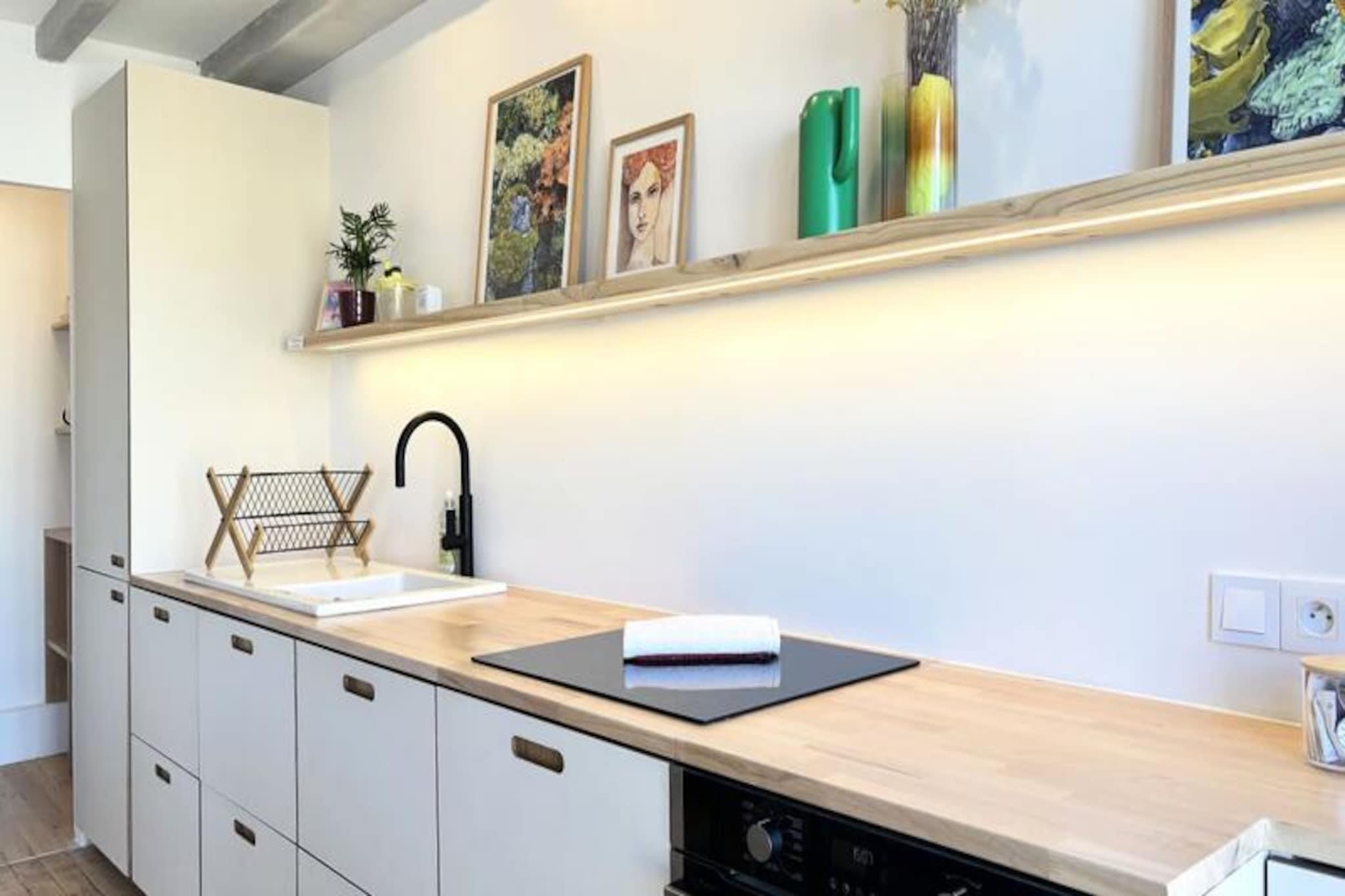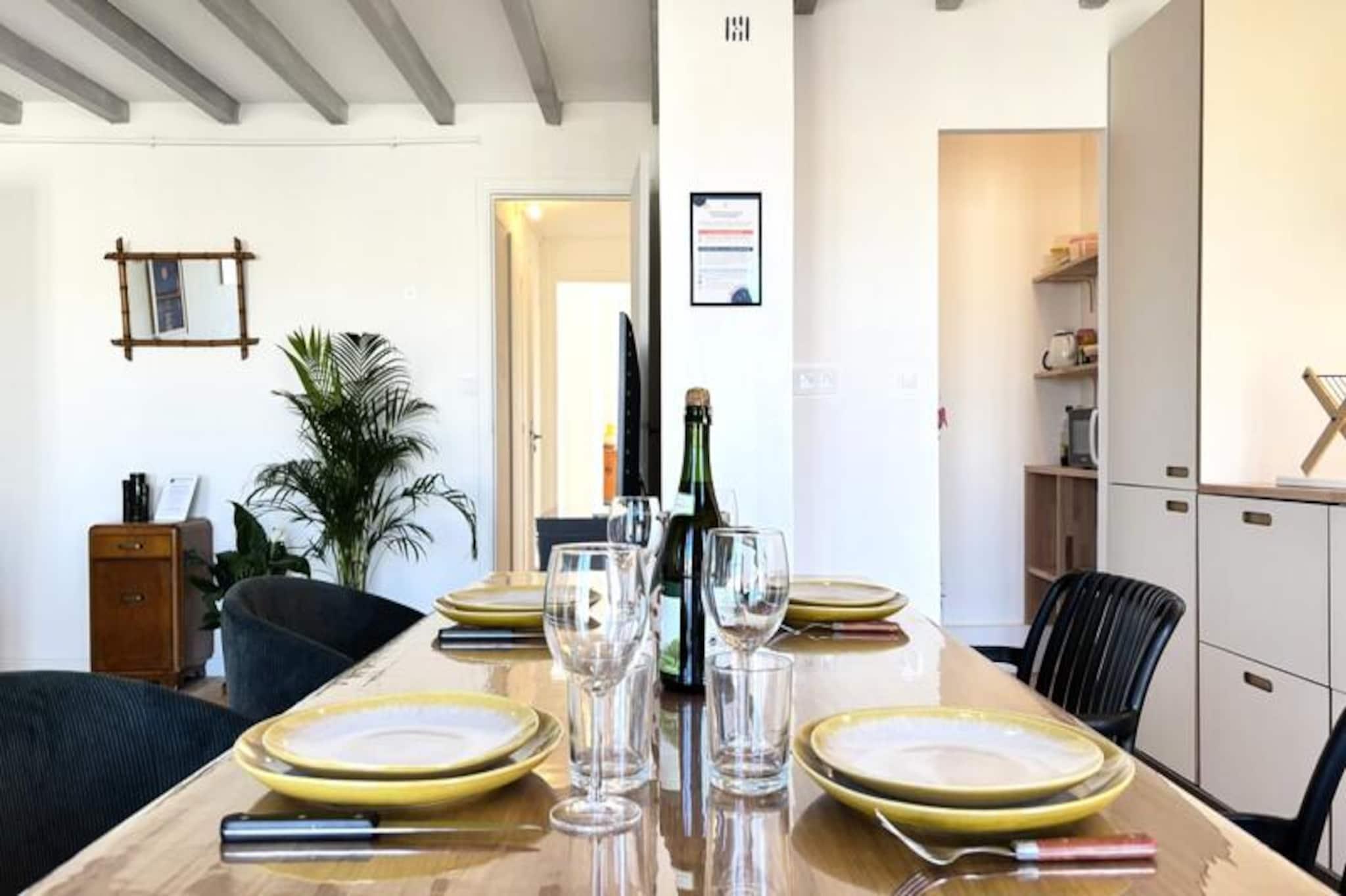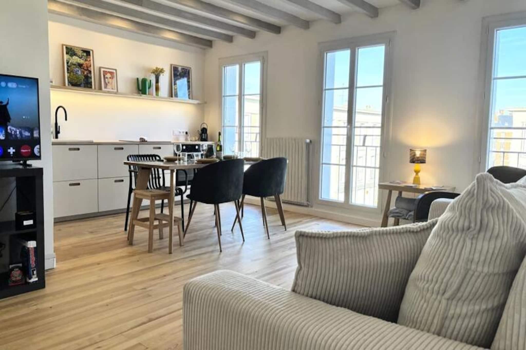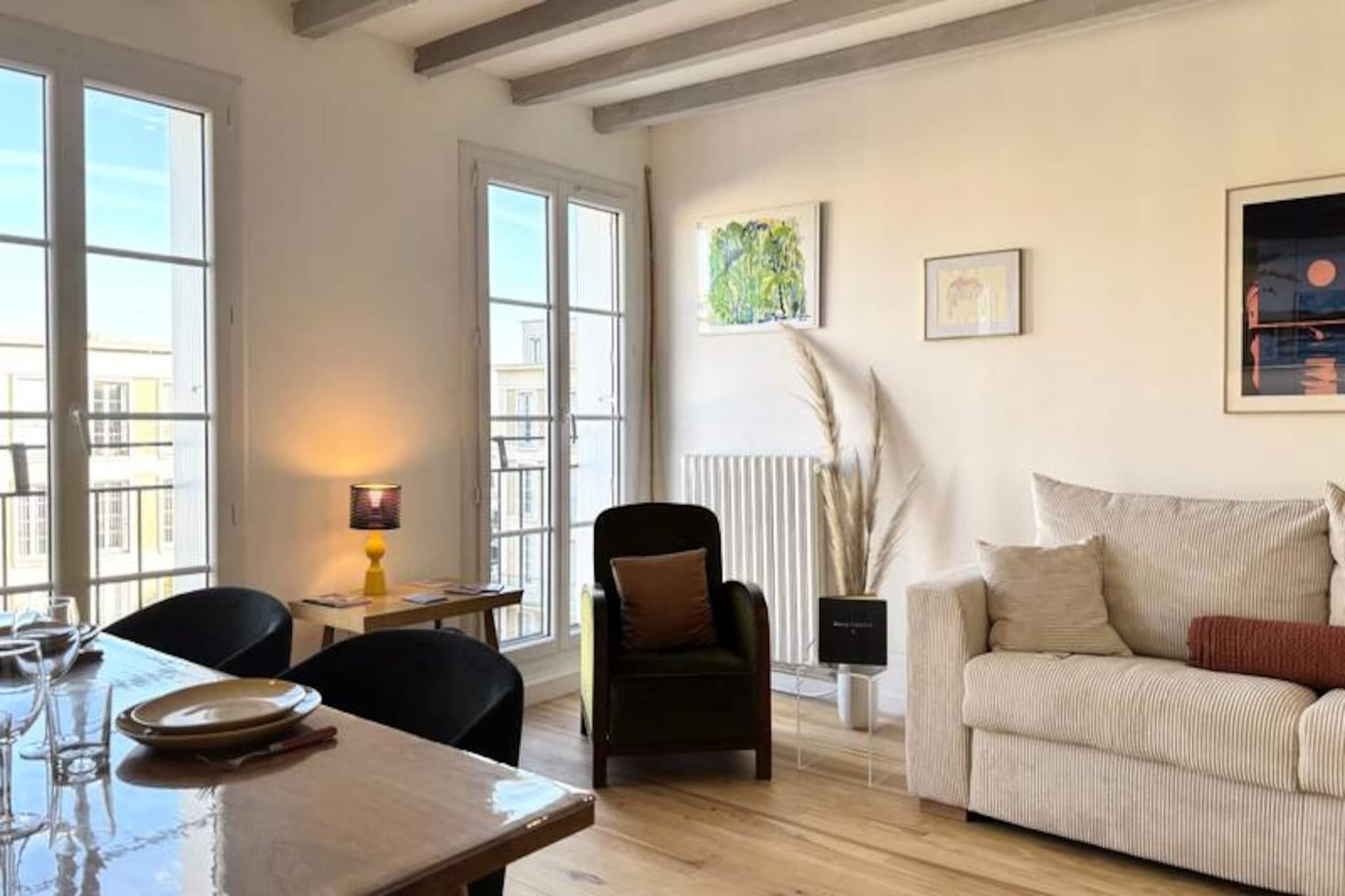 I hjertet af Le Havre, hvor historie møder modernitet, tilbyder denne fantastiske lejlighed i Perret-stil et unikt ophold i et UNESCO-verdensarvssted. Med udsigt over det ikoniske Bassin du Roi og omgivet af den arkitektoniske charme fra Auguste Perrets design, inviterer denne bolig dig til at fordybe dig i Normandiets pulserende kultur. Kun en kort gåtur på 300 meter fra stranden og få skridt fra det travle rådhus, finder du dig selv perfekt placeret til at udforske byens skatte. Indenfor blander lejligheden problemfrit tidløs elegance med moderne komfort. Beliggende på 4. sal i en rolig og sikker bygning, byder den på en lys og luftig opholdsstue designet til at rumme op til tre gæster. Det åbne køkken er fuldt udstyret til kulinariske eventyr, mens den hyggelige stue med et Smart TV er det perfekte sted at slappe af. Soveværelset kan prale af en luksuriøs queensize-seng, mens det andet soveværelse tilbyder en enkeltseng af høj kvalitet, et skrivebord til fjernarbejde og rigelig opbevaringsplads. Et moderne badeværelse med bruseniche og et separat toilet fuldender planløsningen og sikrer et komfortabelt og funktionelt ophold. For wellness-entusiaster er der omhyggeligt sørget for yogaudstyr for at forbedre din afslapning. Træd udenfor, og du er kun få øjeblikke væk fra Le Havres fineste attraktioner. Udforsk sandstrandene, nyd lokale retter på nærliggende restauranter, eller slentre gennem de charmerende gader med butikker og markeder. For dem, der ankommer i bil, er der en privat parkeringsplads til rådighed, men der er ikke tildelte pladser. Alternativt sikrer gadeparkering og nærliggende underjordiske muligheder bekvemmelighed. Uanset om du er her for fritid eller arbejde, tilbyder denne lejlighed den perfekte base for at opleve det bedste af Le Havre. Vælg denne exceptionelle ejendom for dens uovertrufne beliggenhed, stilfulde interiør og muligheden for at bo midt i Auguste Perrets arkitektoniske arv. Dit Normandie-eventyr begynder her.
