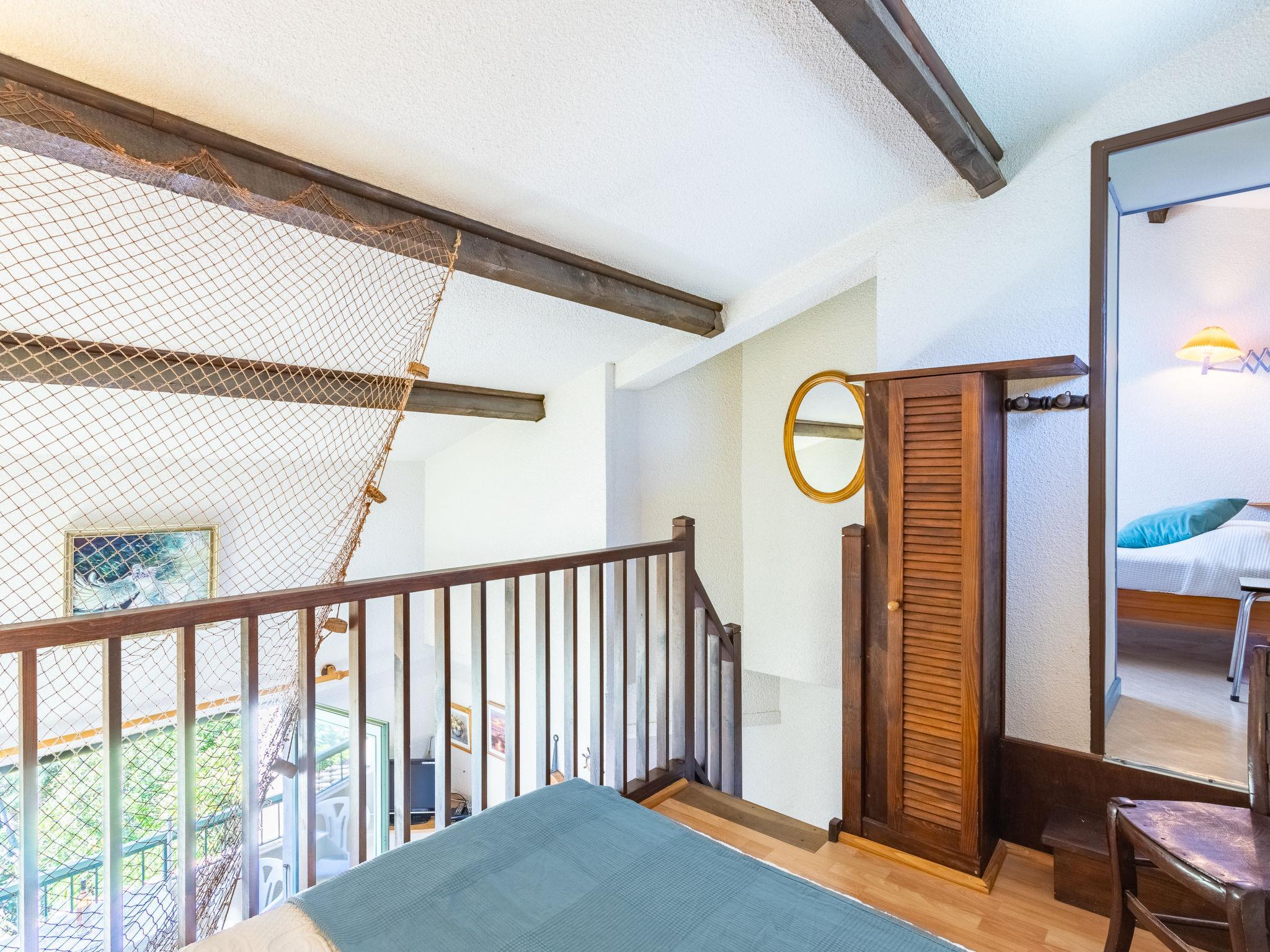 2-room apartment 36 m2 on 2 levels, on the upper floor, west facing position. Rustic furnishings: living/dining room with TV (flat screen). Exit to the balcony. Kitchenette (2 hot plates, mini-oven, oven, toaster, kettle, microwave, freezer, electric coffee machine). Bath/WC. Electric heating. Upper floor: 1 room with 1 french bed (140 cm, length 190 cm). Open gallery with sloping ceilings with 1 french bed (140 cm, length 190 cm). Small balcony 5 m2. Balcony furniture. Facilities: washing machine, iron, hair dryer. Internet (WiFi, extra). Parking. Please note: non-smokers only. TV only FR. Smoke alarm. Instead of an enclosed bedroom, some sleeping areas are located in an open-plan area (gallery, alcove, etc.). 83070002464AV