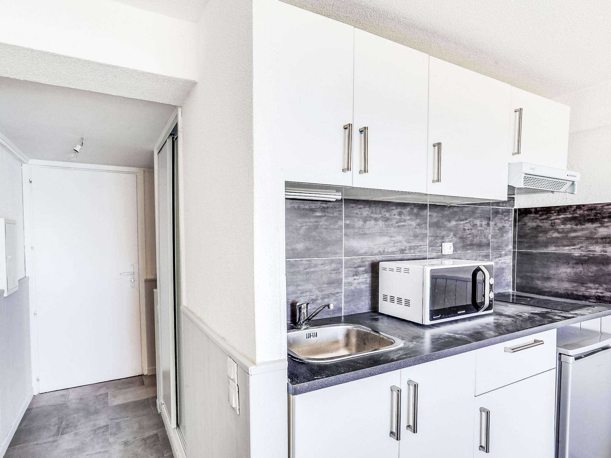 1-room studio 20 m2, on the ground floor. Simple and beautiful furnishings: living/dining room with 1 double sofabed (140 cm, length 190 cm), dining table and TV (flat screen). Kitchenette (2 ceramic glass hob hotplates, toaster, kettle, electric coffee machine, combination microwave). Shower/WC. No heating option. View of the sea. Facilities: Internet (WiFi, extra). Please note: no parking. Maximum 1 pet/ dog allowed. TV only FR. Smoke alarm. 8307000091231