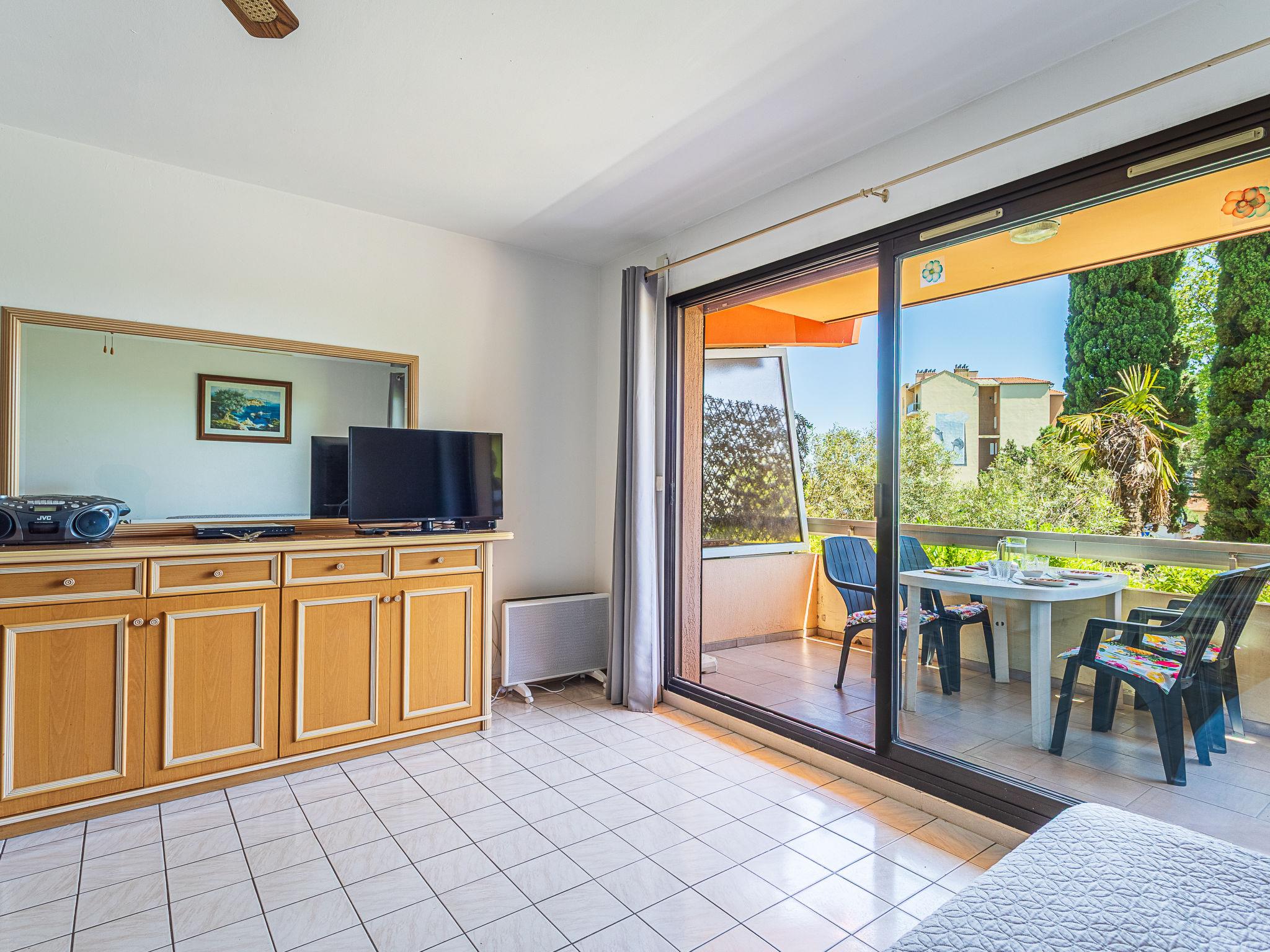 1-room studio 32 m2 on 1st floor. Object suitable for 2 adults + 2 children. Practical and beautiful furnishings: living/dining room with 1 double sofabed (140 cm, length 190 cm) with 1 double sofabed (160 cm, length 200 cm), TV (flat screen). Exit to the balcony. Kitchenette (2 hot plates, oven, toaster, kettle, microwave, electric coffee machine). Bath/WC. Electric heating. Balcony 10 m2, south facing position. Balcony furniture. Partial view of the sea. Facilities: hair dryer. Internet (WiFi, extra). Please note: apartment street side. Non-smokers only. Maximum 1 small pet/ dog allowed. TV only FR. Smoke alarm. 83070000137YO