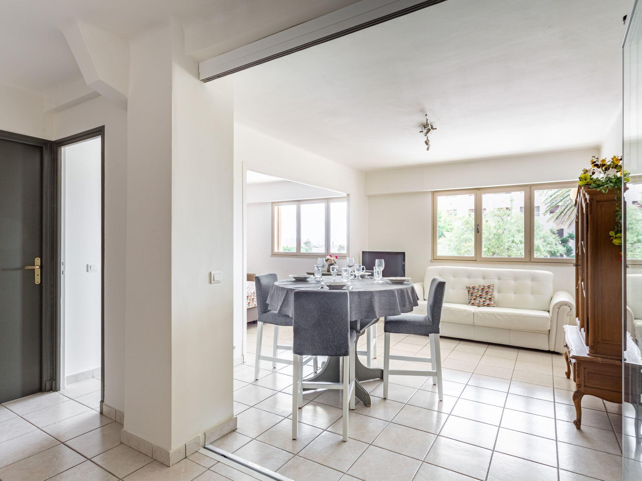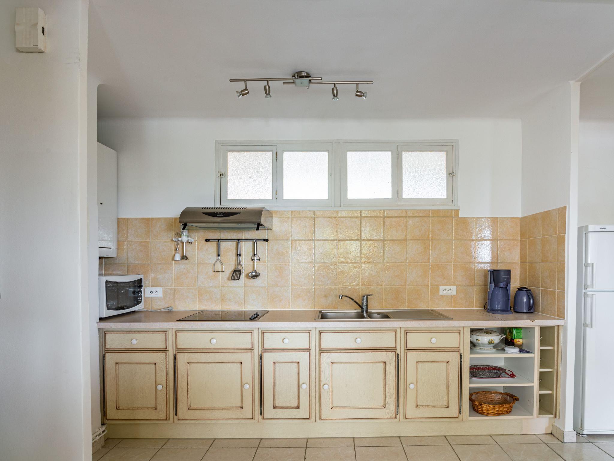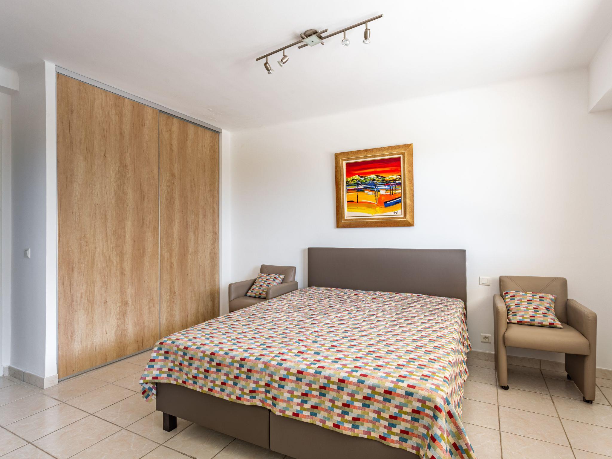 1-room studio 52 m2, on the upper ground floor. Spacious, comfortable furnishings: living/dining room with 1 double sofabed (140 cm, length 190 cm), TV (flat screen). Open large sleeping alcove with 1 french bed (160 cm, length 200 cm). Open kitchen (4 ceramic glass hob hotplates, toaster, kettle, microwave, electric coffee machine). Shower, sep. WC. Air-conditioning. No heating option. Partial view of the sea. Facilities: iron, children's high chair, baby cot, hair dryer. Internet (WiFi, extra). Please note: apartment courtyard side. Non-smokers only, no parking. TV only FR. Smoke alarm. Instead of an enclosed bedroom, some sleeping areas are located in an open-plan area (gallery, alcove, etc.). Offer by a private individual according to Art. 155, IV of CGI. 83070001652J5
