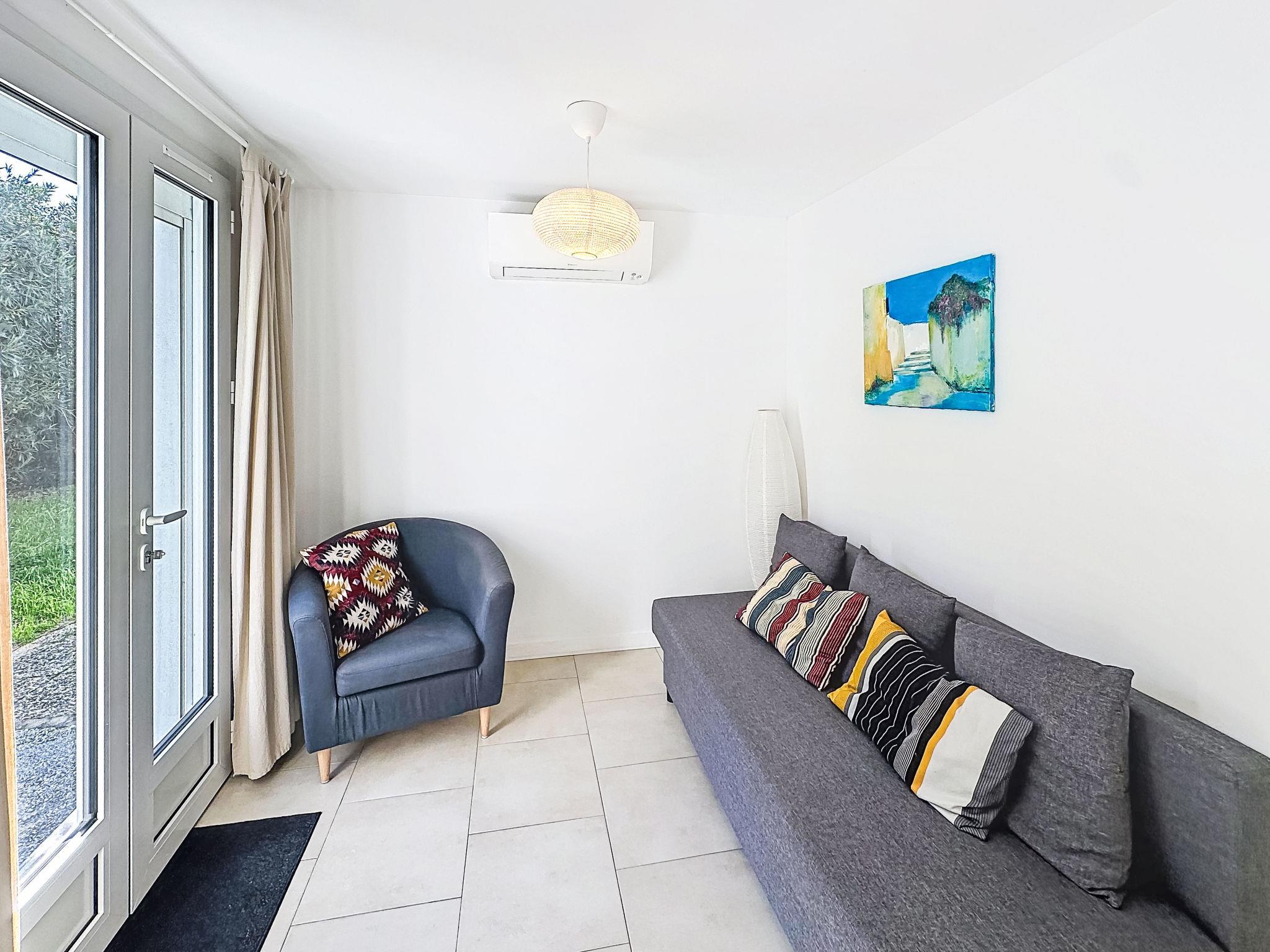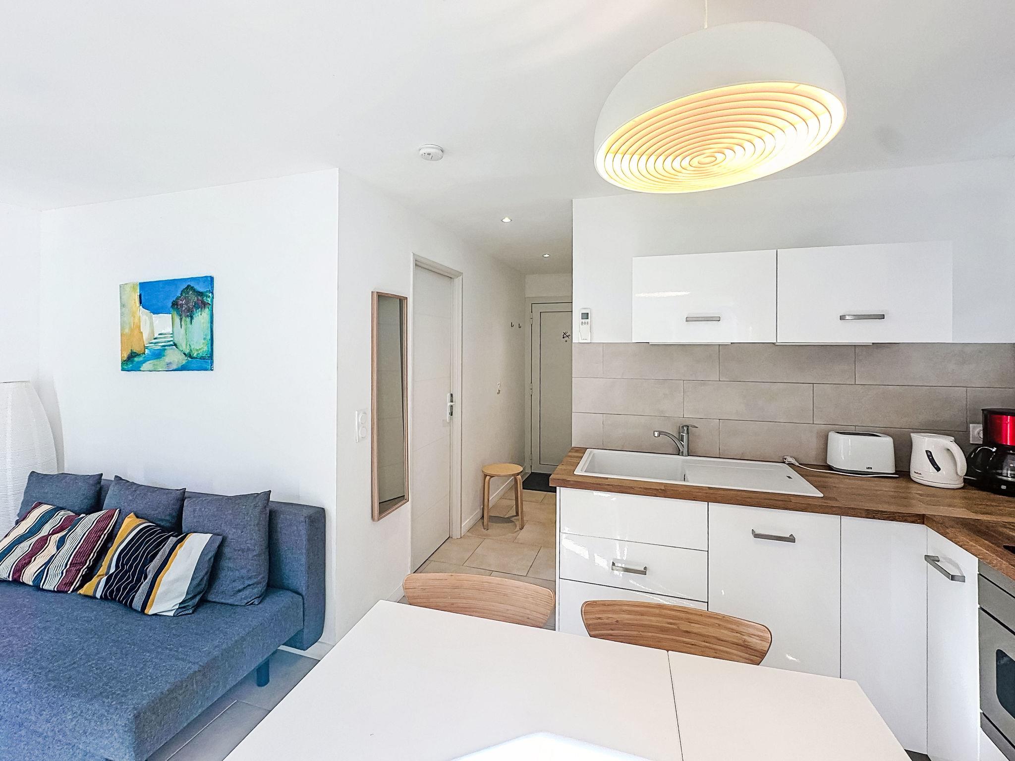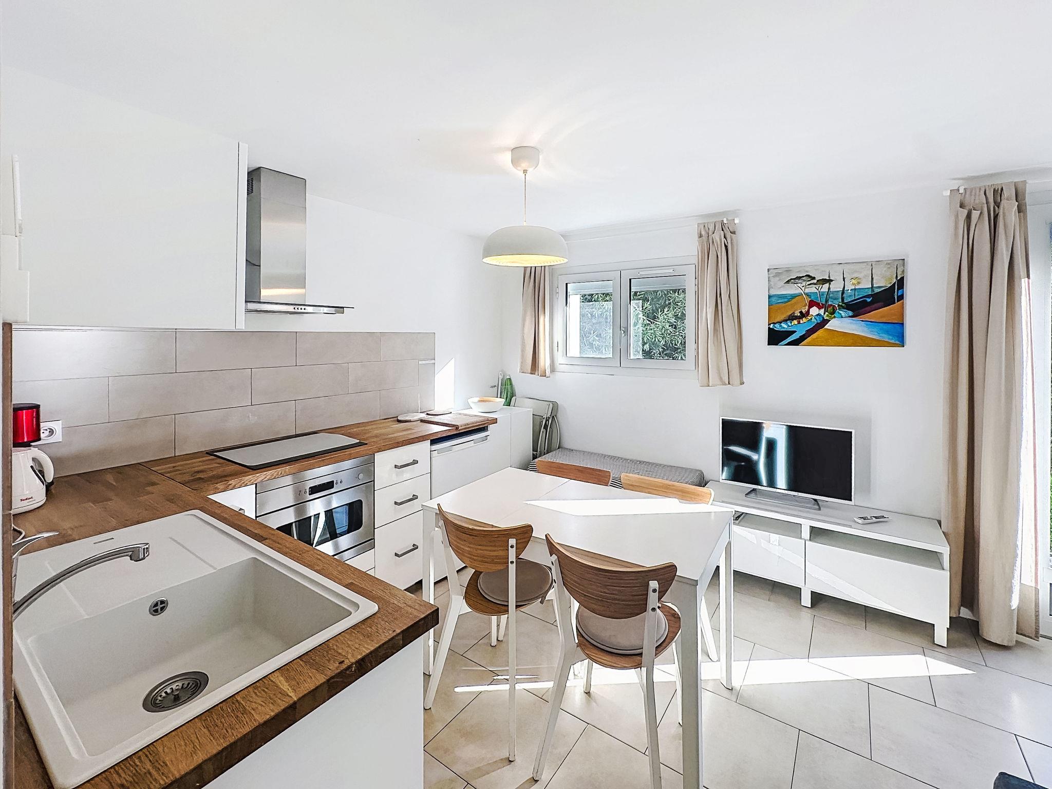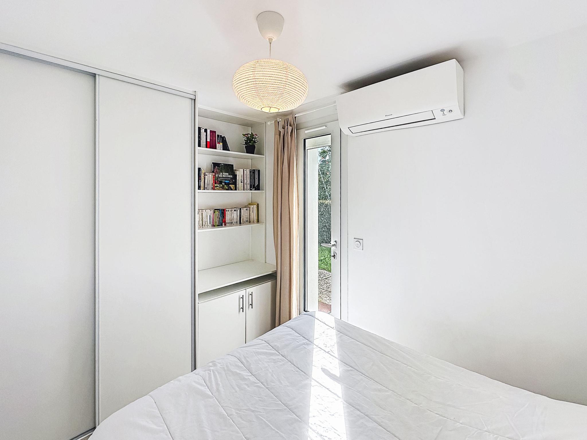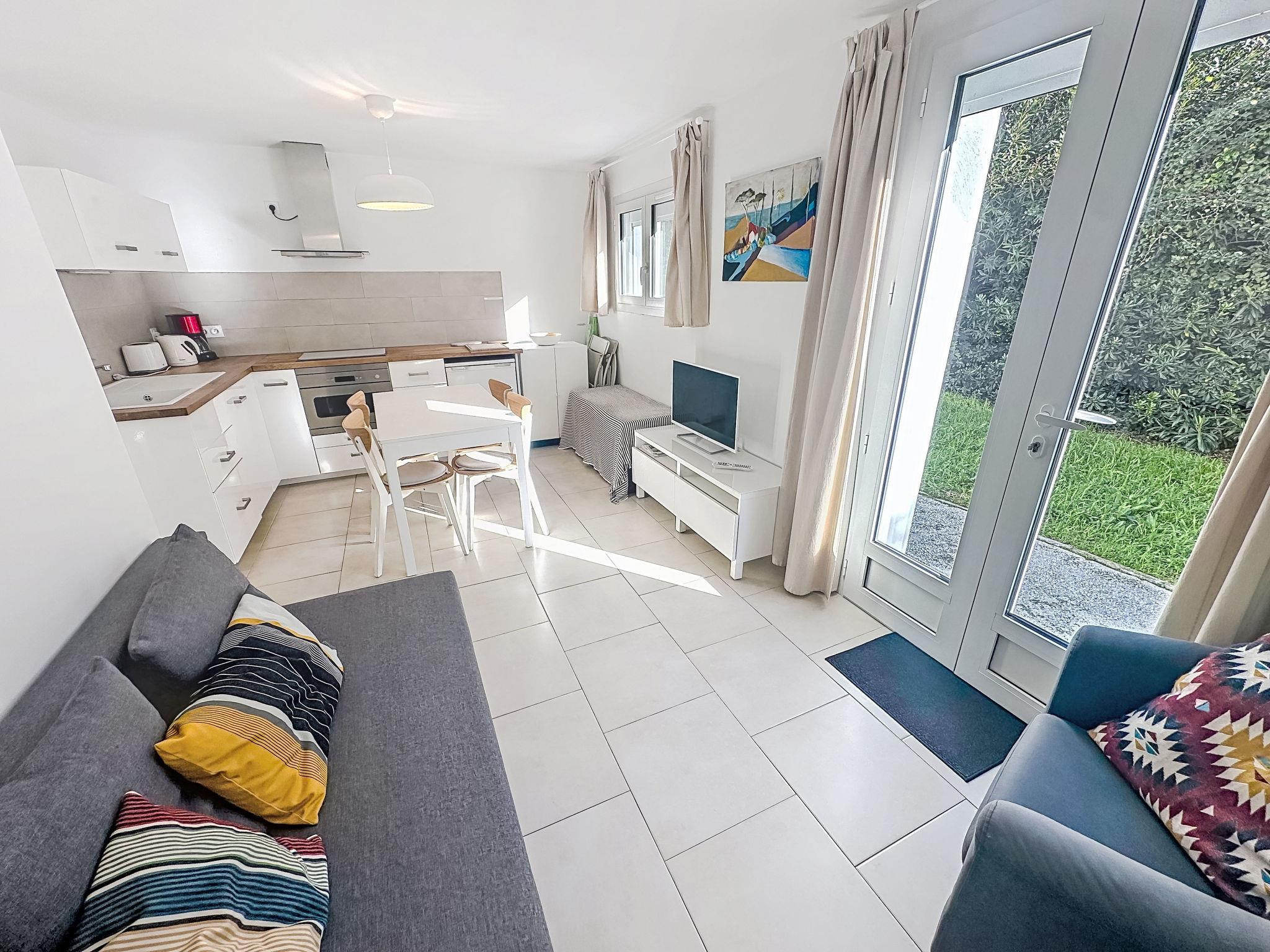 "Classé 3 étoiles", 2-room apartment 31 m2, on the ground floor, north-east facing position. Comfortable furnishings: living room with 1 double sofabed (140 cm, length 190 cm), TV (flat screen), air conditioning. Exit to the garden. 1 room with 1 french bed (140 cm, length 190 cm), air conditioning. Exit to the garden. Open kitchen (dishwasher, 4 induction hot plates, toaster, kettle, microwave, electric coffee machine) with dining table. Shower/WC. Heating, air-conditioning. Small terrace, north-east facing position. Facilities: washing machine, iron, hair dryer. Internet (WiFi, extra). Please note: non-smokers only. TV only FR. Smoke alarm. Offer by a private individual according to Art. 155, IV of CGI. 83070003107ED