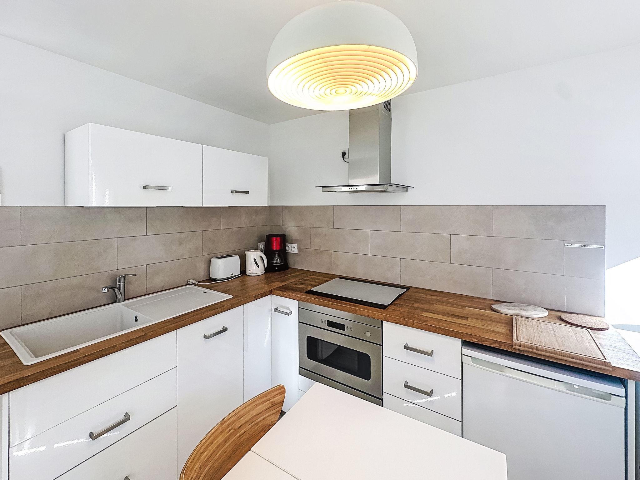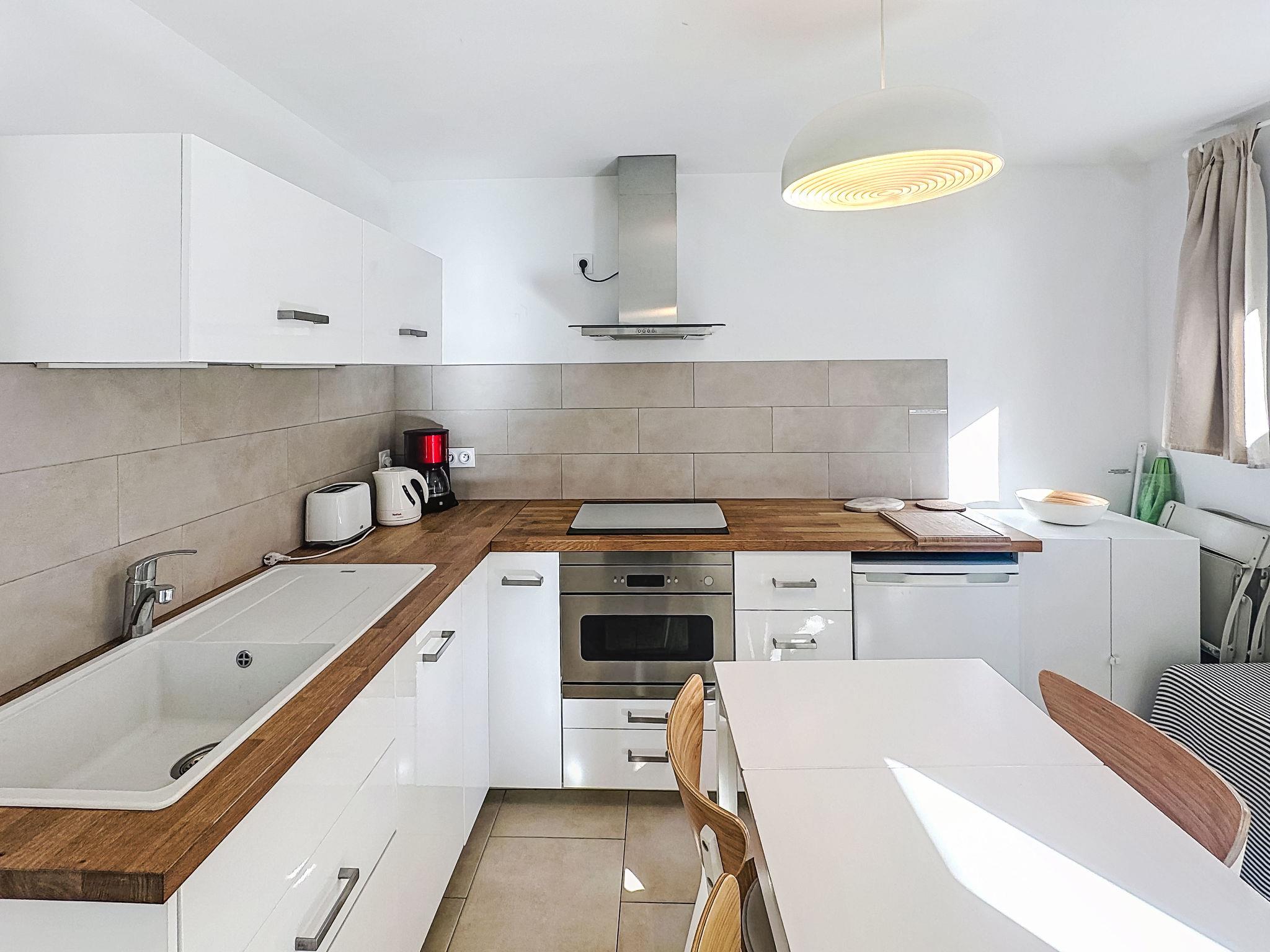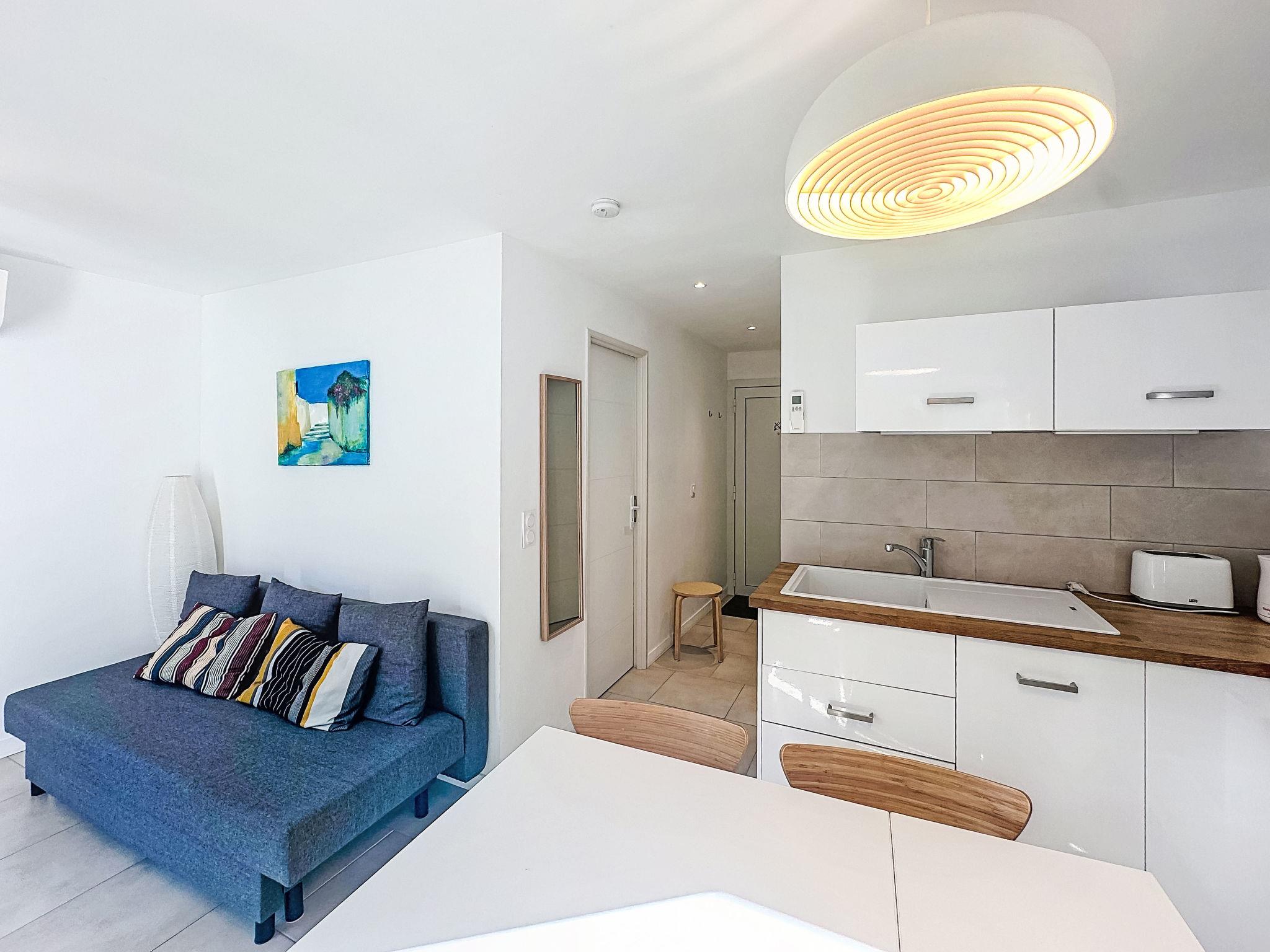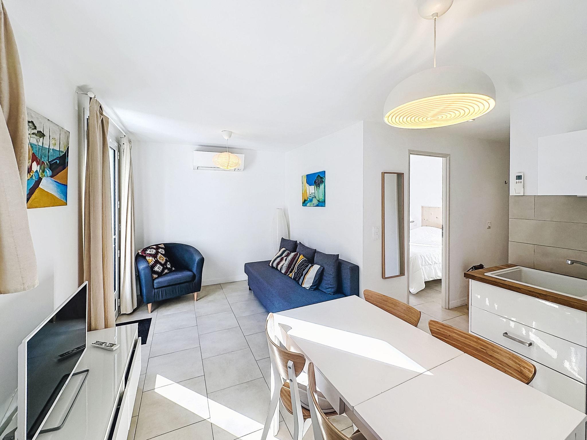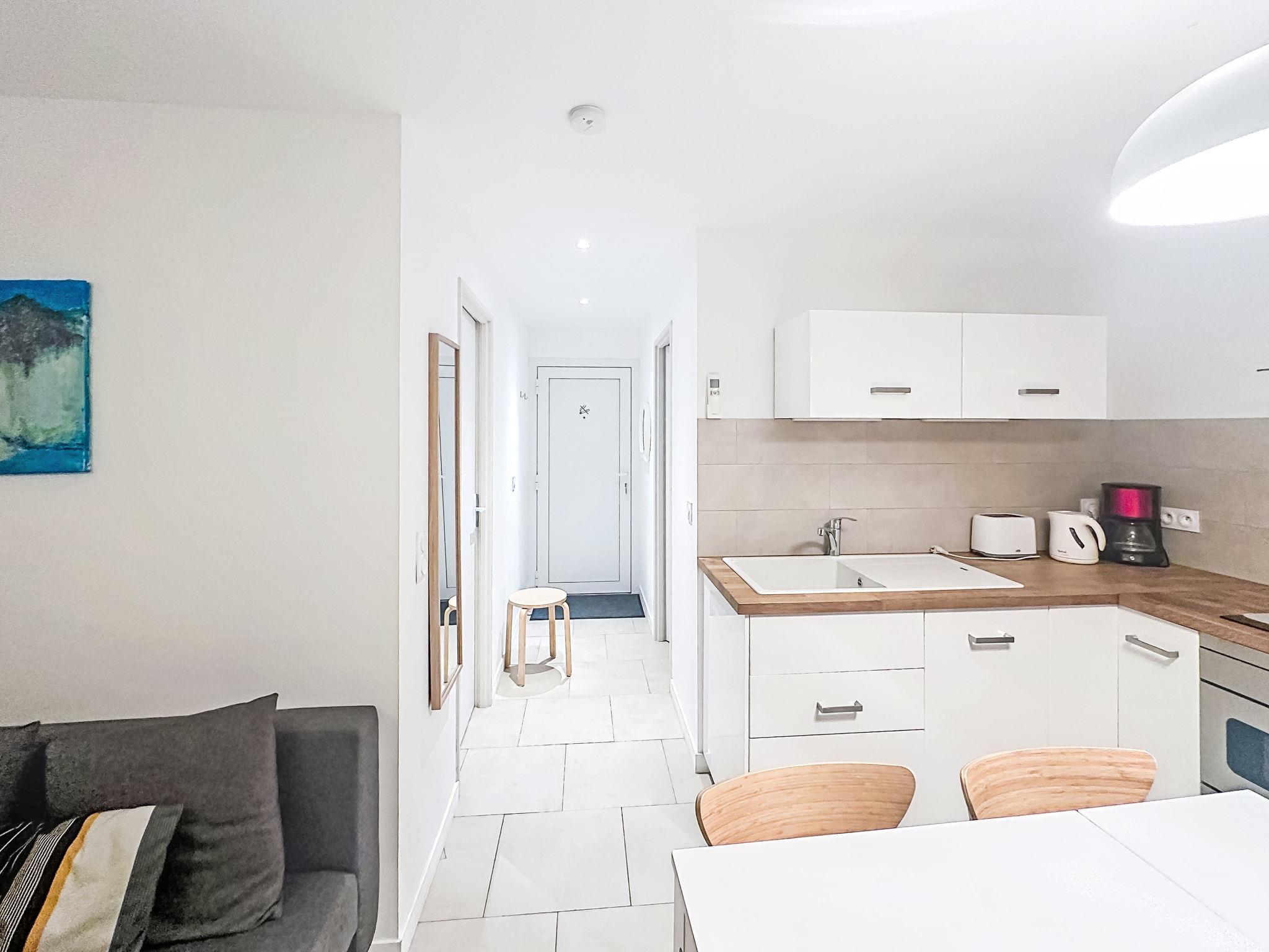 "Classé 3 étoiles", 2-room apartment 31 m2, on the ground floor, north-east facing position. Comfortable furnishings: living room with 1 double sofabed (140 cm, length 190 cm), TV (flat screen), air conditioning. Exit to the garden. 1 room with 1 french bed (140 cm, length 190 cm), air conditioning. Exit to the garden. Open kitchen (dishwasher, 4 induction hot plates, toaster, kettle, microwave, electric coffee machine) with dining table. Shower/WC. Heating, air-conditioning. Small terrace, north-east facing position. Facilities: washing machine, iron, hair dryer. Internet (WiFi, extra). Please note: non-smokers only. TV only FR. Smoke alarm. Offer by a private individual according to Art. 155, IV of CGI. 83070003107ED