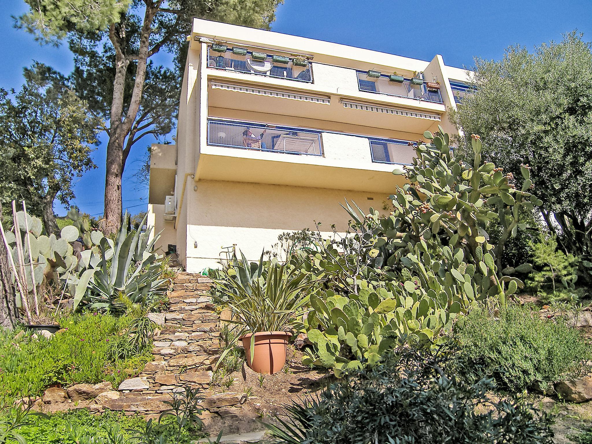 3-room apartment 60 m2, on the upper ground floor, south facing position. Comfortable and beautiful furnishings: living/dining room with TV (flat screen), hi-fi system and air conditioning. Exit to the terrace. 1 open room with curtain with 2 beds (90 cm, length 200 cm). Exit to the terrace. 1 room with 1 french bed (160 cm, length 200 cm). Exit to the terrace. Kitchen (oven, dishwasher, 4 ceramic glass hob hotplates, toaster, kettle, microwave, freezer, electric coffee machine). Shower, sep. WC. Electric heating. Terrace 15 m2, south facing position. Terrace furniture, deck chairs. Very beautiful view of the sea. Facilities: washing machine, iron, baby cot. Internet (WiFi, extra). Parking space n 4. Please note: TV only FR. Smoke alarm. There are 23 steps going downstairs between the car parking and the apartment. 200m2 terraced garden accessible via stairs. 83070000077IZ