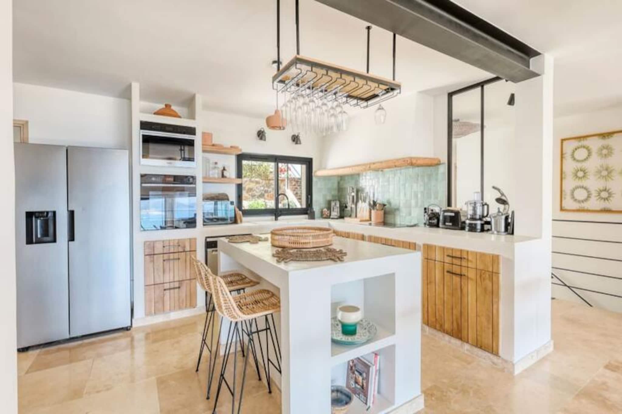 Denne elegante villa ligger på en blid bakke i det eftertragtede kvarter Super Lavandou og tilbyder en fredfyldt oase med en betagende havudsigt og den livlige charme i Le Lavandou kun 10 minutters gang derfra. Omgivet af frodig grønne områder og den azurblå middelhavshorisont inviterer denne ejendom dig til at opleve den perfekte blanding af ro og bekvemmelighed. Uanset om du slapper af ved poolen eller nyder den friske kystbrise fra haven, føles hvert øjeblik her som en tilbagetrækning til paradis. Villaen kan komfortabelt rumme op til seks gæster fordelt på tre smukt indrettede soveværelser, hvilket gør den ideel til familier eller små grupper. Opholdsrummene er badet i naturligt lys og udstyret med luksuriøse faciliteter, herunder aircondition overalt, hvilket sikrer din komfort i alle årstider. Det fuldt udstyrede køkken og de indbydende spiseområder, både inde og ude, gør det nemt at nyde måltiderne sammen. Den private swimmingpool, som kan opvarmes efter anmodning, er midtpunktet i det udendørs område, suppleret af en velholdt have, hvor du kan slappe af eller nyde en afslappet eftermiddag. Beliggende kun en kort gåtur fra centrum af Le Lavandou, har du nem adgang til de charmerende gader, lokale markeder og en række restauranter og butikker. Villaens førsteklasses beliggenhed tilbyder også nærhed til regionens fantastiske strande, kyststier og livlige marina, hvilket gør den til et perfekt udgangspunkt for at udforske den franske riviera. Uanset om du er på udkig efter en fredelig ferie eller en eventyrlig ferie, tilbyder denne villa den ideelle ramme for uforglemmelige minder. Med sin kombination af luksus, komfort og uovertruffen beliggenhed er det et sted, hvor du virkelig kan slappe af og nyde Côte d'Azurs skønhed.