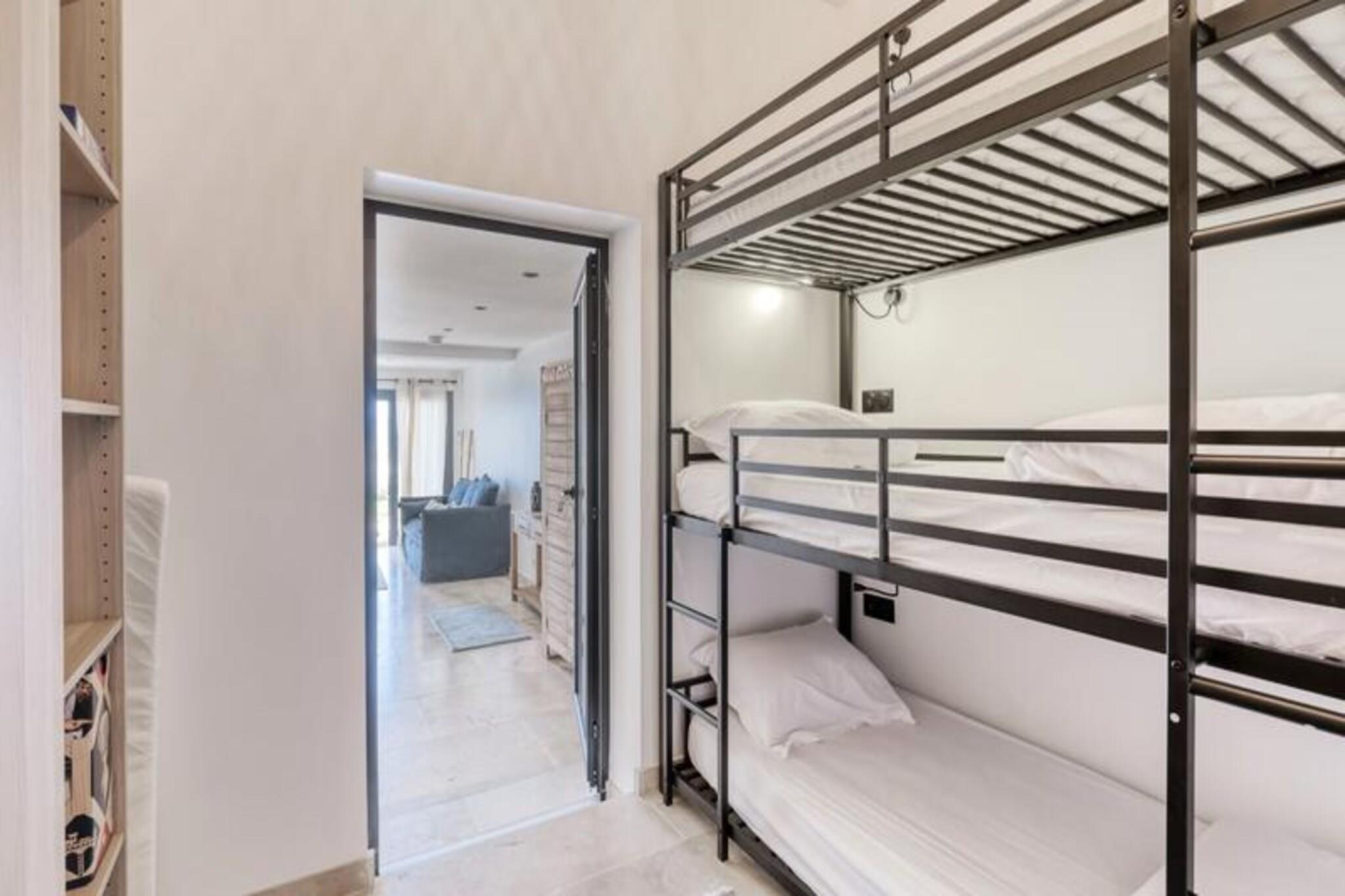 Villa Figuiere i Le Lavandou ligger på en fredelig bakke med en betagende udsigt over Middelhavet og er et fristed for luksus og afslapning. Denne udsøgte ejendom tilbyder en perfekt blanding af komfort og elegance, hvilket gør den til et ideelt tilflugtssted for familier eller grupper, der søger en uforglemmelig ferie på den franske riviera. Forestil dig at vågne op til den blide havbrise, nyde din morgenkaffe på terrassen og tilbringe dine dage ved den private swimmingpool, der kan opvarmes efter ønske for ekstra komfort. Uanset om du er her for at slappe af eller udforske, lover denne villa et ophold som intet andet. Villaen kan komfortabelt rumme op til 14 gæster med sin gennemtænkte indretning. Hovedetagen har en rummelig stue, et fuldt udstyret køkken og tre smukt indrettede soveværelser, herunder en master-suite med eget badeværelse. På underetagen finder du to uafhængige studier, der hver tilbyder private sovepladser til forældre og børn, komplet med moderne faciliteter som Wi-Fi-relæer på alle etager for problemfri forbindelse. De udendørs områder er lige så imponerende med en frodig have og et poolområde, der er perfekt til at nyde solen eller en forfriskende dukkert. Aircondition overalt sikrer et behageligt ophold, selv i de varme sommermåneder. Villa Figuiere ligger kun 15-20 minutters gang fra det livlige centrum af Le Lavandou og tilbyder nem adgang til charmerende butikker, restauranter og de fantastiske strande på Côte d'Azur. Kvarteret Super Lavandou er meget eftertragtet for sin rolige atmosfære og panoramaudsigt over havet, der tilbyder en perfekt balance mellem ro og bekvemmelighed. Uanset om du udforsker de lokale markeder, nyder provencalsk mad eller blot slapper af ved poolen, er denne villa din indgang til den ultimative middelhavsoplevelse. Vælg Villa Figuiere til din næste ferie og skab minder, der vil vare hele livet. Fra sine luksuriøse faciliteter til sin uovertrufne beliggenhed er denne ejendom det perfekte sted for en drømmeferie på den franske riviera.