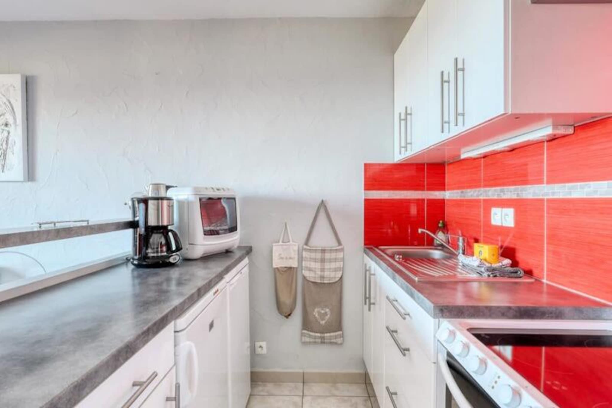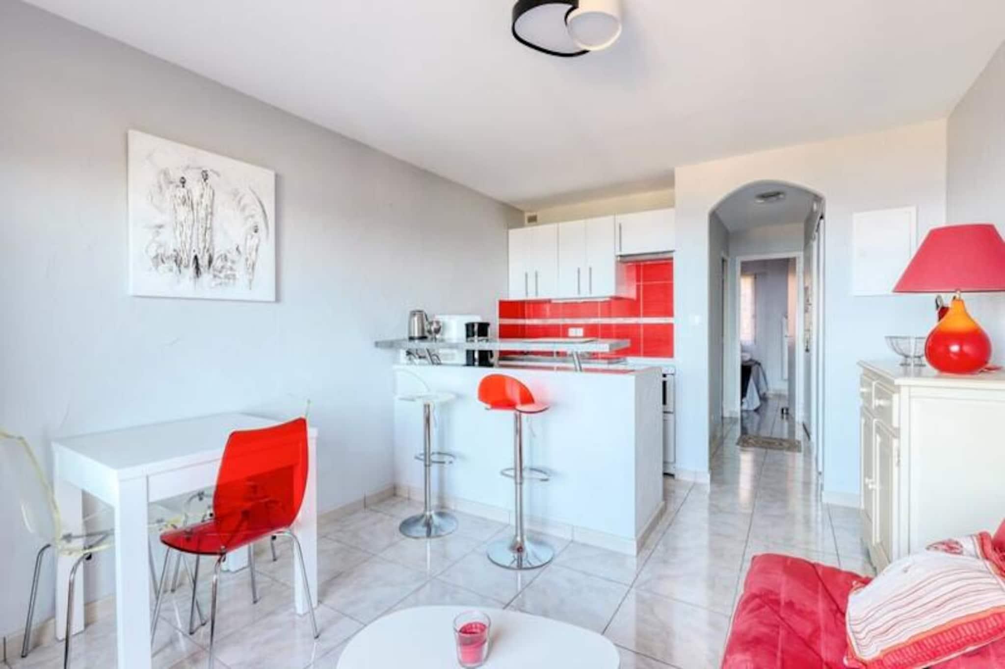 Forestil dig at vågne op til den blide lyd af bølger og Middelhavets glitrende vidder, der strækker sig foran dig. Denne charmerende lejlighed med et soveværelse tilbyder en rolig oase med en enestående havudsigt, der vil efterlade dig åndeløs. Beliggende nær den idylliske Saint-Clair-strand kombinerer den moderne komfort med Côte d'Azurs naturlige skønhed og skaber de perfekte rammer for en mindeværdig ferie. Uanset om du nipper til kaffe på terrassen eller nyder den kølige brise fra airconditionen, føles hvert øjeblik her som et tilflugtssted i paradis. Indenfor er lejligheden omhyggeligt designet til afslapning og bekvemmelighed. Det fuldt udstyrede køkken inviterer dig til at tilberede lækre måltider, mens vaskemaskinen og opvaskemaskinen gør de daglige opgaver ubesværede. Håndklæder og sengetøj er inkluderet, og sengene er redt ved ankomst for din komfort. Terrassen, komplet med en markise, er det ideelle sted at slappe af efter en dag med udforskning og tilbyder panoramaudsigt, der indfanger essensen af ??kystlivet. Privat parkering sikrer nem adgang og gør dit ophold så stressfrit som muligt. Kun få skridt væk venter Saint-Clair-stranden med sit fine hvide sand og krystalklare vand. Kendt som \