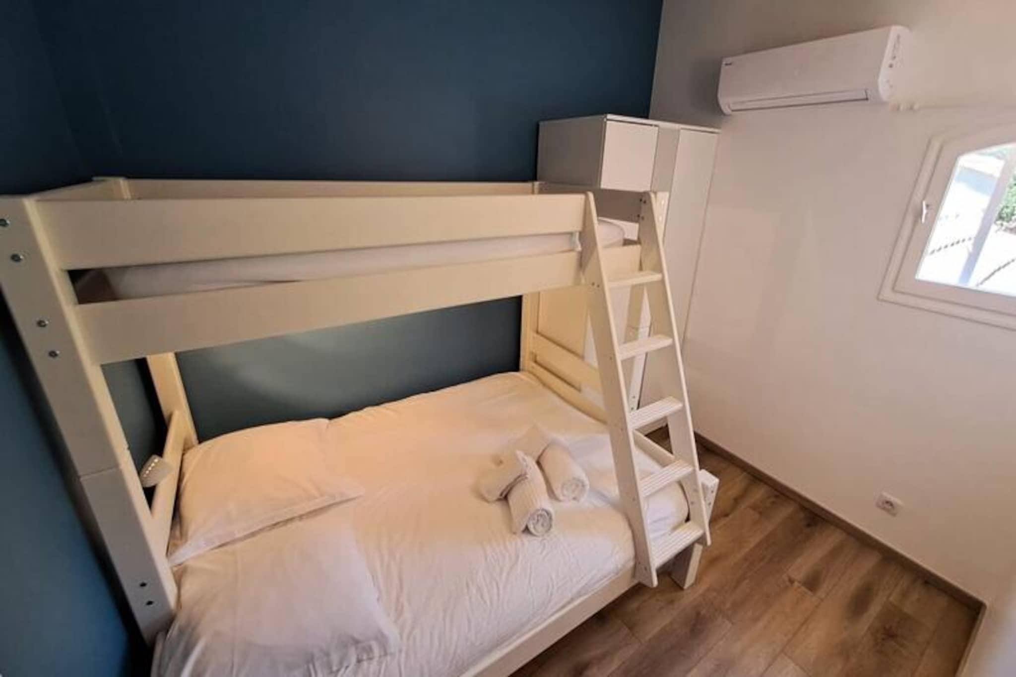 Forestil dig at vågne op til Middelhavets glitrende blå hav, der strækker sig foran dig, med de Gyldne Øer, der glitrer i horisonten. Denne fantastiske 3-stjernede villa i Cavalière tilbyder et idyllisk tilflugtssted, hvor komfort møder betagende naturlig skønhed. Villaen er perfekt til familier eller vennegrupper og har plads til op til ni gæster i moderne og rummelige omgivelser, der er designet til afslapning og uforglemmelige minder. Træd indenfor og oplev et gennemtænkt designet interiør. Stueetagen kan prale af et fuldt udstyret, nyrenoveret køkken, ideelt til at tilberede lækre måltider, som kan nydes på den solrige terrasse. Stuen med sin hyggelige sofa og tv inviterer dig til at slappe af efter en dag med eventyr. Soveværelset, komplet med eget badeværelse og havudsigt, tilbyder en rolig tilflugtssted. Ovenpå tilbyder tre yderligere soveværelser fleksible sovearrangementer, herunder en queensize-seng med eget badeværelse, en anden queensize-seng med havudsigt og et værelse med en dobbeltseng og en enkelt køjeseng. Aircondition i alle værelser sikrer din komfort, mens højhastigheds-Wi-Fi holder dig forbundet. Udenfor stråler villaen virkelig. Den private pool, omgivet af liggestole og havemøbler, er perfekt til at nyde solen. Nyd spisning under markiserne, med en elektrisk stegepande til rådighed for dejlige måltider udendørs. Villaens høje beliggenhed giver panoramaudsigt over havet fra næsten alle hjørner, hvilket skaber en magisk kulisse for dit ophold. Beliggende kun 1 km fra den gyldne sandstrand på Cavalière-stranden, er du perfekt placeret til at nyde både ro og tilgængelighed. Uanset om du slapper af ved poolen, udforsker de nærliggende strande eller nyder det lokale køkken, tilbyder denne villa alt, hvad du behøver for en uforglemmelig middelhavsferie.