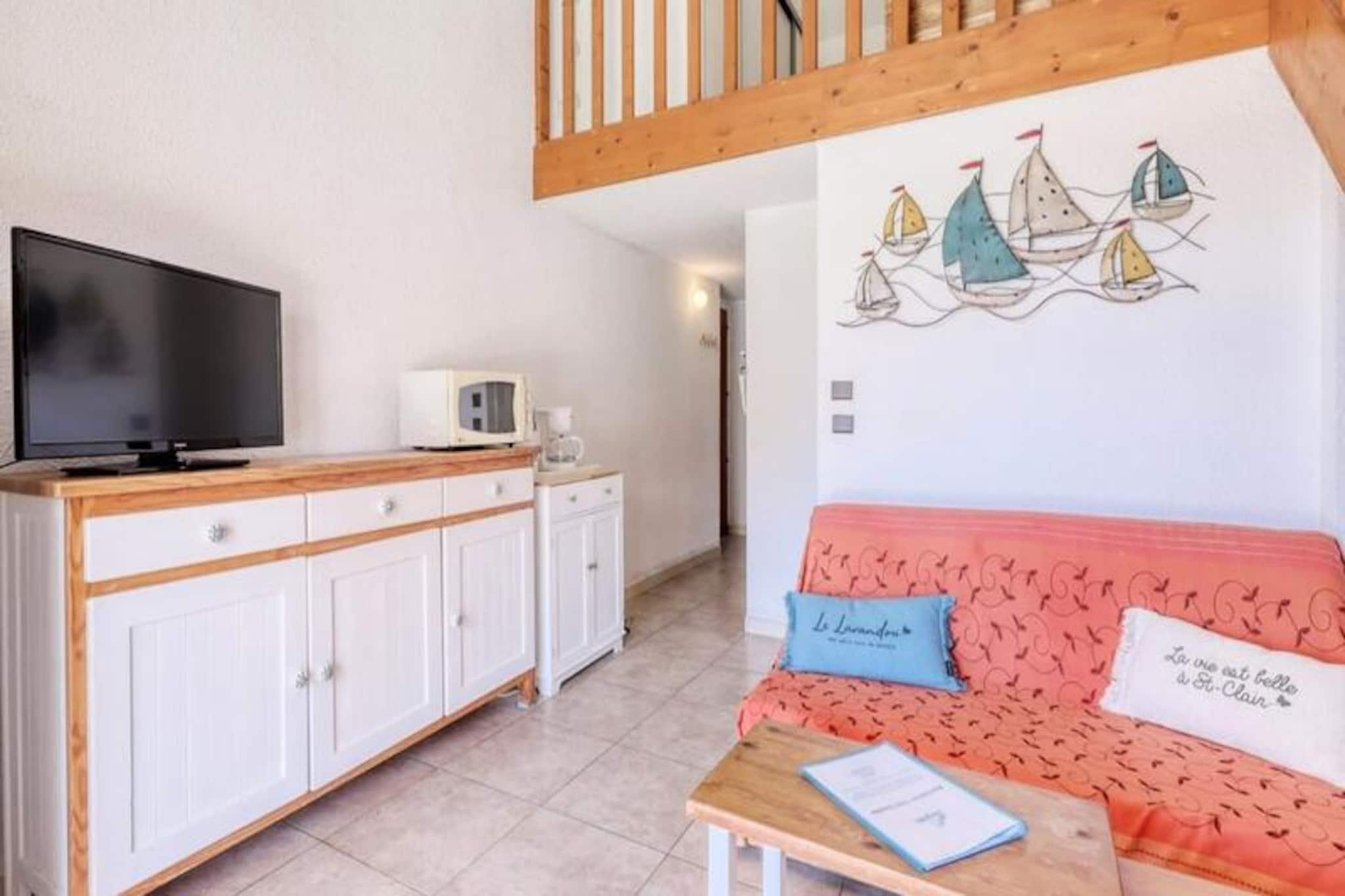 Familielejlighed med direkte adgang til Saint-Clair-stranden. Med terrasse med udsigt over poolen. Fuldt udstyret og med aircondition. Bolig med gratis swimmingpool og tennisbaner. Vaskemaskine og opvaskemaskine. Håndklæder er inkluderet, og sengene er redt ved ankomst. Du har adgang til en garage i boligen. For mere information, læs venligst beskrivelsen nedenfor. En række faciliteter værdsat af mine gæster: - Umiddelbar nærhed til stranden - KUN FÅ METER VÆK!!! - Komfortabel, airconditioneret og fuldt udstyret lejlighed. - Parkeringsplads i boligen Sengelinned, håndklæder (1 stort pr. person), viskestykker og bademåtter er inkluderet og klargjort. Vi tilbyder også et par ruller toiletpapir til din ankomst, men ikke til hele dit ophold. Strandhåndklæder er ikke inkluderet. Andre faciliteter at overveje: - Sofaen i stuen kan foldes ud. - Et sæt nøgler vil blive udleveret. Garagemål: 2,35m x 1,80m / Dybde: 4m Saint-Clair-distriktet, der ligger cirka 1,5 km fra Le Lavandou, huser stranden af ??samme navn. Saint-Clair er mindre end den nærliggende Plage du Lavandou og tilbyder en betagende udsigt over de Gyldne Øer (Port Cros og Le Levant). Den er mere hemmelighedsfuld, og dens beliggenhed giver dig mulighed for at nyde solen fra daggry. Den har fået tilnavnet "Perlen" og tilbyder et landskab, der er et tropisk land værdigt. Med sit fine hvide sand og de omkringliggende bjerge er denne strand, der ligger ved foden af ??fyrretræer, lige så god som postkortene fra nogle fjerne lande. Saint-Clair, der regelmæssigt nævnes blandt de smukkeste strande i Frankrig, kan også prale af adskillige butikker (hoteller, restauranter, købmandsforretninger osv.), som alle er inden for gåafstand. Depositum (i euro) - 500