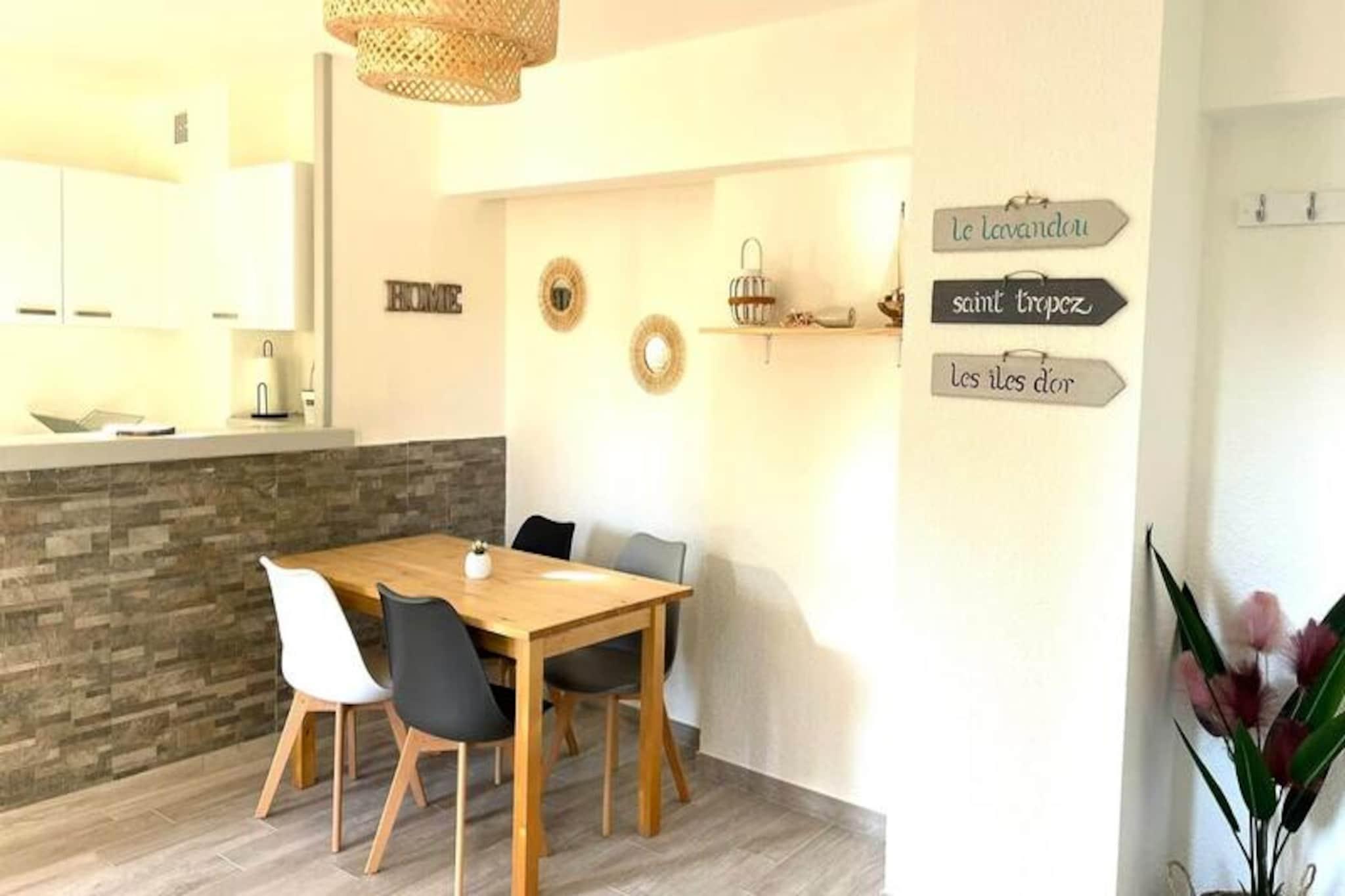 Denne lejlighed på 47 m² vil være det ideelle sted til din ferie. 500 m fra Saint-Clair-stranden med 1 parkeringsplads og aircondition! Lejligheden, smagfuldt renoveret og indrettet, har 2 små terrasser, hvor man kan nyde solen hele dagen lang. 2 soveværelser med dobbeltsenge (140 cm) Badeværelse med bruser og vaskemaskine Fuldt udstyret køkken Lagener og håndklæder er inkluderet. Sengelinned, håndklæder (1 stort pr. person), viskestykker og bademåtter er inkluderet og klargjort. Vi tilbyder også et par ruller toiletpapir ved ankomst, men ikke for hele opholdet. Strandhåndklæder er ikke inkluderet. Saint-Clair-distriktet, der ligger ca. 1,5 km fra Le Lavandou, huser stranden af ??samme navn. Saint-Clair er mindre end den nærliggende Plage du Lavandou og tilbyder en betagende udsigt over de Gyldne Øer (Port Cros og Le Levant). Den er mere hemmelighedsfuld, og dens beliggenhed giver dig mulighed for at nyde solen fra daggry. Med øgenavnet "Perlen" byder den på et landskab, der er tropiske lande værdigt. Med sit fine hvide sand og de omkringliggende bjerge er denne strand, der ligger ved foden af ??fyrreskove, lige så god som postkortene fra et fjerntliggende land. Saint-Clair, der regelmæssigt nævnes som en af ??de smukkeste strande i Frankrig, kan også prale af adskillige butikker (hoteller, restauranter, købmandsforretninger osv.), som alle er inden for gåafstand. Depositum (i euro) - 500