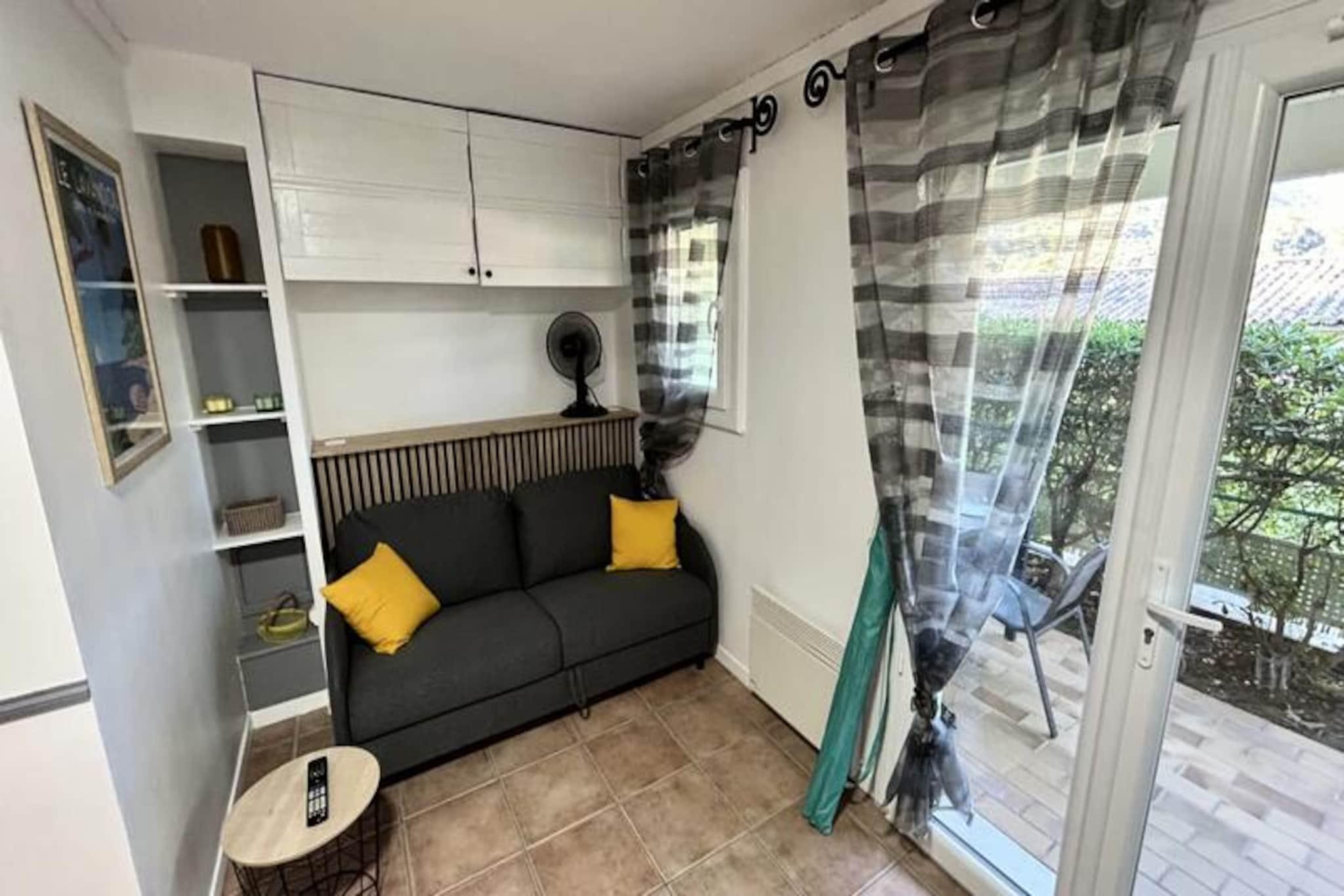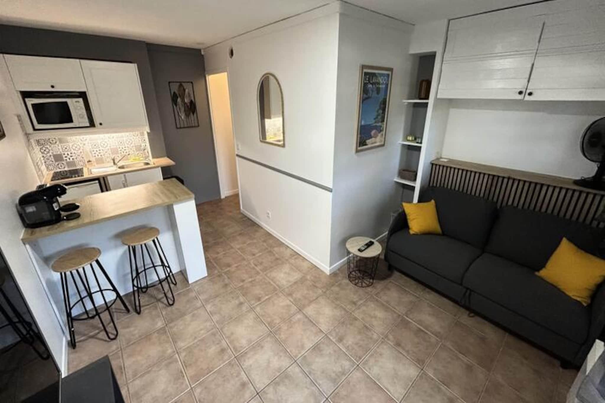 I hjertet af en frodig 10 hektar stor privat ejendom i Pramousquier tilbyder denne smukt renoverede lejlighed med et soveværelse en fredfyldt tilflugtssted ved Middelhavet. Omgivet af fyrretræer og duftende kystflora er ejendommen fuldstændig gågadebeskyttet, hvilket sikrer fred og sikkerhed for alle gæster. Forestil dig at vågne op til lyden af ??bølger og nyde direkte adgang til en uberørt strand kun få skridt væk. Den opvarmede swimmingpool med panoramaudsigt over havet inviterer dig til at slappe af og nyde den rolige atmosfære på Côte d'Azur. Denne lejlighed på 25 m² er omhyggeligt designet til at rumme op til fem gæster. Det hyggelige soveværelse har en dobbeltseng og en køjeseng, mens stuen har en komfortabel sovesofa og et fjernsyn til afslappende aftener. Det fuldt udstyrede køkken kan prale af moderne apparater såsom mikrobølgeovn, opvaskemaskine, Tassimo-kaffemaskine og brødrister, hvilket gør det nemt at tilberede måltider. Lejligheden tilbyder også sengelinned, håndklæder og essentielle faciliteter til et problemfrit ophold. Træd ud på den rummelige terrasse, hvor en grill og liggestole venter på at spise under åben himmel eller blot solbade. Ejendommen tilbyder en række aktiviteter, herunder sportsbaner, petanque, bordtennis, en legeplads og cykeludlejning. For ekstra bekvemmelighed har beboerne adgang til et vaskerum og en bestillingsservice for brød/kager i receptionen. Der er også gratis parkering på ejendommen. Uanset om du søger afslapning ved poolen, eventyr langs Middelhavskysten eller kvalitetstid med dine kære, lover dette charmerende tilflugtssted på ejendommen La Pinède en uforglemmelig ferieoplevelse. Lad den franske rivieras skønhed fortrylle dig, mens du skaber dyrebare minder i disse idylliske omgivelser.