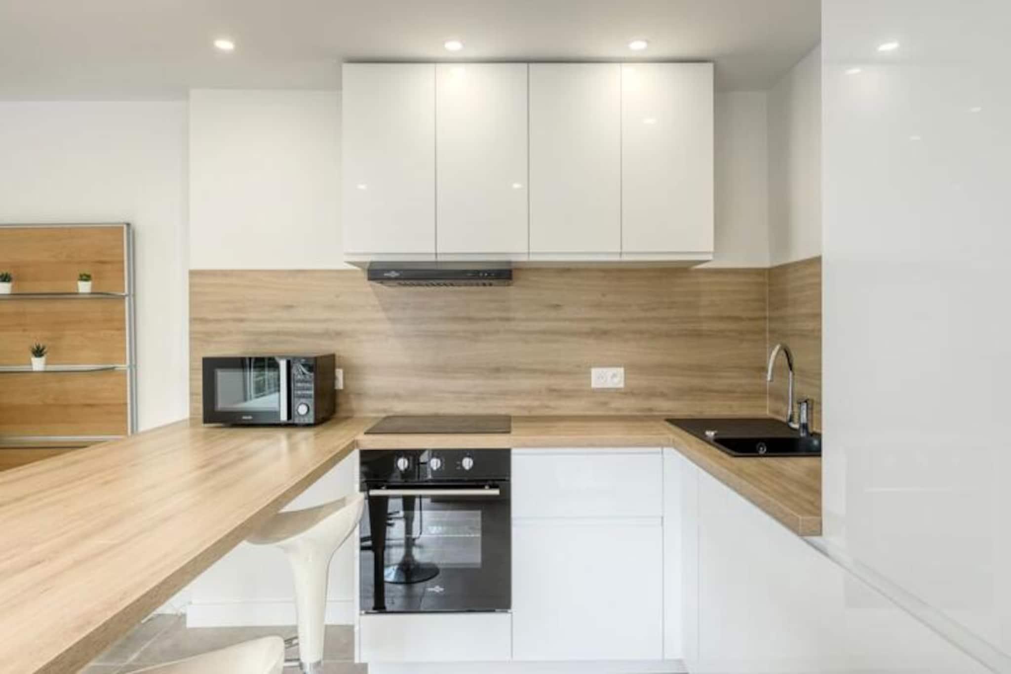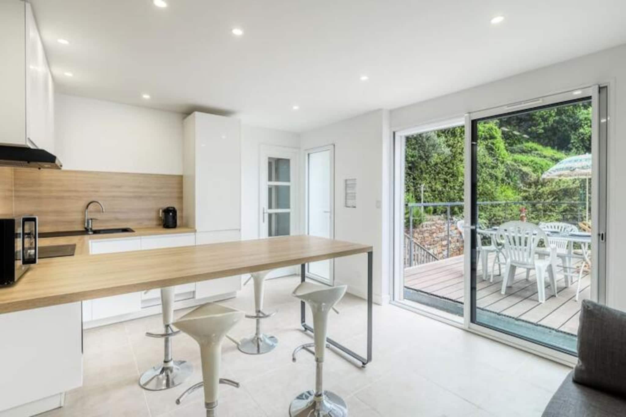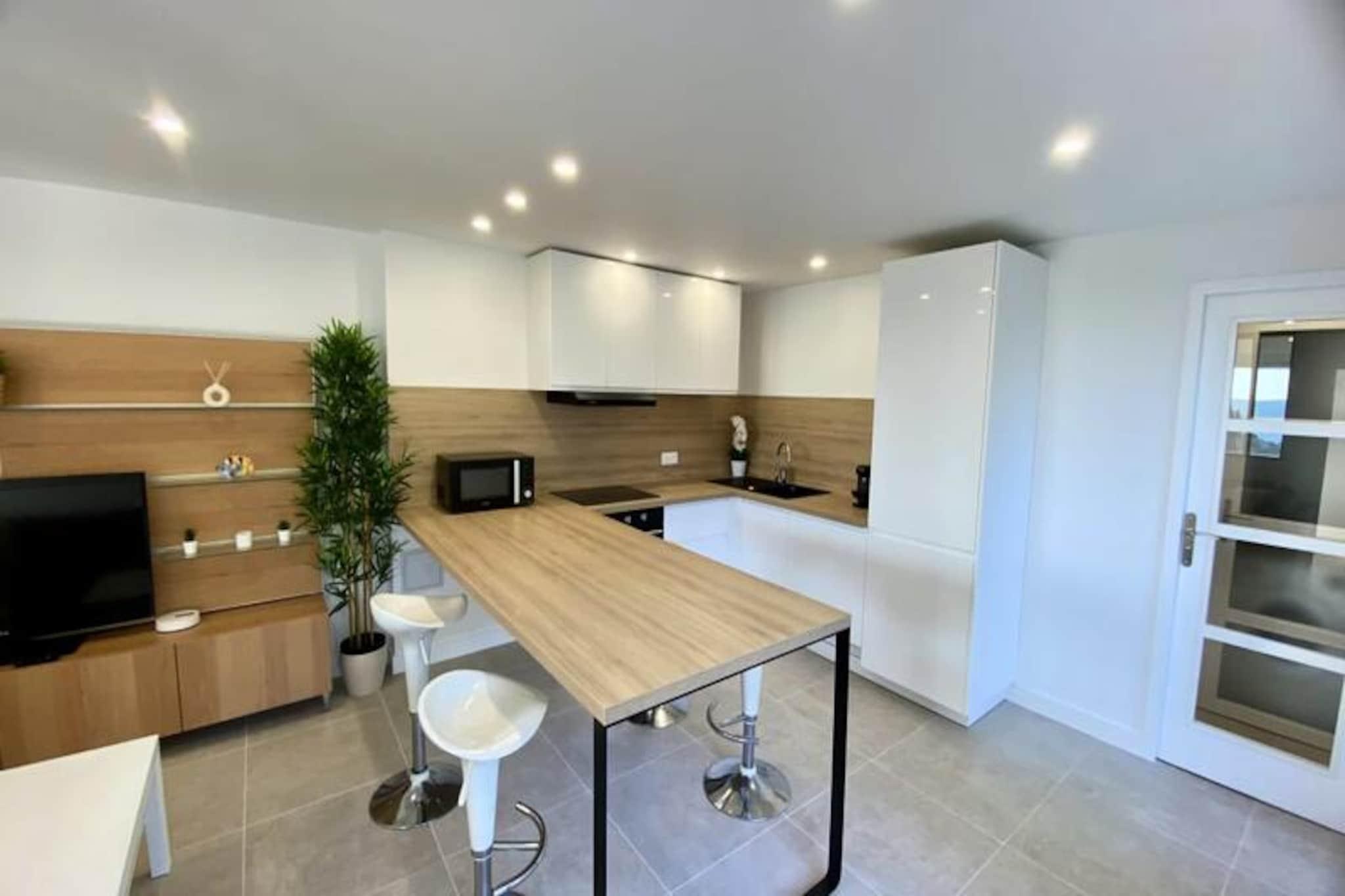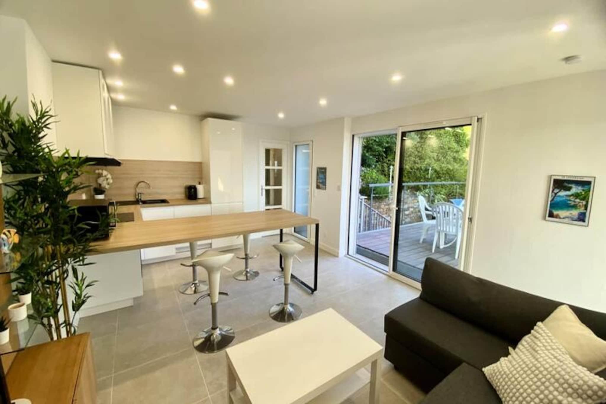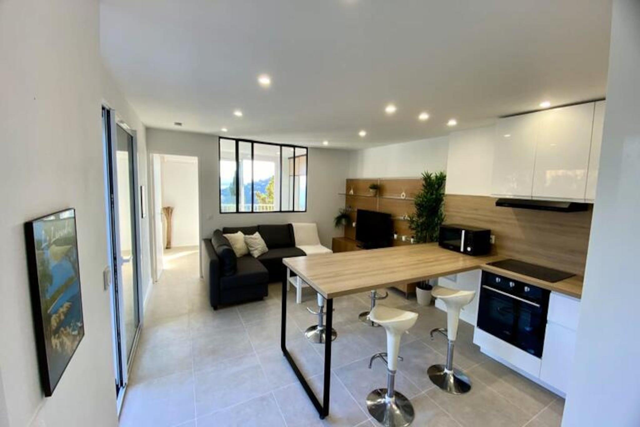 Beliggende på den fredfyldte Aiguebelle-bakke i Le Lavandou tilbyder denne nyrenoverede lejlighed med et soveværelse en rolig oase med betagende havudsigt. Forestil dig at vågne op til det glitrende Middelhav, der strækker sig foran dig, med lyden af ??bølger, der blidt kalder dig til at udforske de nærliggende strande og bugter. Dette charmerende tilflugtssted er perfekt til par eller solorejsende, der søger en blanding af komfort og naturlig skønhed. Lejligheden på 40 kvm er omhyggeligt designet til at maksimere plads og lys. Soveværelset, adskilt af en udtrækkelig glasvæg, giver både privatliv og en uforstyrret udsigt over havet. Den åbne opholdsstue har et fuldt udstyret køkken, perfekt til at tilberede måltider, der kan nydes på den store møblerede balkon, mens du nyder kyststemningen. Moderne bekvemmeligheder som aircondition og Wi-Fi sikrer et behageligt ophold, mens det funktionelle badeværelse bidrager til bekvemmeligheden. Aiguebelle-stranden ligger kun ti minutters gang væk og byder på gyldent sand og krystalklart vand. For dem, der elsker at udforske, giver kyststierne og de skjulte bugter i nærheden uendelige muligheder for eventyr. Der er gratis parkering for foden af ??bygningen, hvilket gør det nemt at udforske charmen ved Le Lavandou og dens omgivelser. Uanset om du er her for at slappe af under middelhavssolen, nyde lokal mad eller udforske den franske rivieras naturlige skønhed, er denne lejlighed den perfekte base for en uforglemmelig ferie. Bemærk venligst, at den på grund af den stejle skråning, der fører op til ejendommen, ikke er egnet til gæster med nedsat mobilitet.