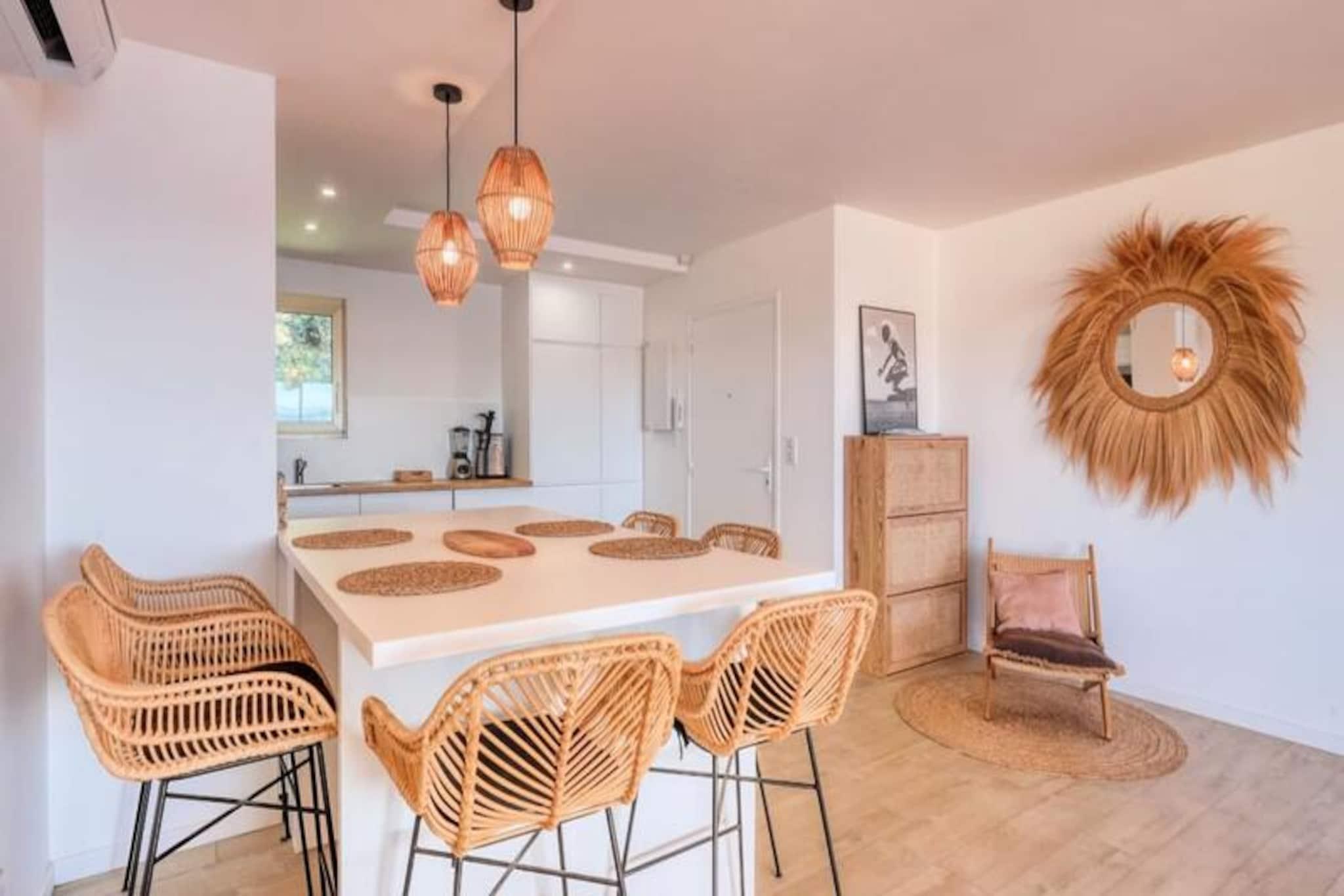 Beliggende på de solbeskinnede bakker ved den franske riviera tilbyder denne moderne og rummelige lejlighed et roligt tilflugtssted kun få minutter fra det pulserende bycentrum. Med sin førsteklasses beliggenhed kan du nyde det bedste fra begge verdener: den livlige charme ved Côte d'Azur og roen i en sikker og fredelig bolig. Vågn op til en betagende panoramaudsigt over de omkringliggende landskaber, perfekt til at nyde din morgenkaffe eller en aftenaperitif på den private terrasse. Dette er det ideelle tilflugtssted for familier, der søger komfort og bekvemmelighed i fantastiske omgivelser. Lejligheden er omhyggeligt designet til at rumme op til seks gæster og har tre hyggelige soveværelser og sengetøj af høj kvalitet, der sikrer en afslappende nat. Den åbne opholdsstue er lys og indbydende med moderne møbler og aircondition for optimal komfort. Det fuldt udstyrede køkken giver dig mulighed for nemt at tilberede måltider med ovn, mikrobølgeovn, køleskab, opvaskemaskine og alt det nødvendige. Et elegant badeværelse, vaskemaskine og gratis højhastigheds-Wi-Fi bidrager til bekvemmeligheden og gør den perfekt til både korte og længere ophold. Gæsterne vil også elske den fælles pool, der ligger i frodige, grønne omgivelser og er åben fra juni til september. Tag en forfriskende dukkert eller slap af ved poolen under middelhavssolen. Boligen inkluderer en privat parkeringsplads, der sikrer stressfri adgang til dit feriehus. Beliggende kun fem minutter fra byens centrum finder du et udvalg af butikker, restauranter og attraktioner inden for rækkevidde. Uanset om du udforsker de lokale markeder, spiser provencalsk køkken eller tager til nærliggende strande og kystbyer, fungerer denne lejlighed som den perfekte base for dit rivieraeventyr. Med sin blanding af moderne bekvemmeligheder, fantastiske udsigter og uovertrufne beliggenhed er dette et sted, hvor uforglemmelige minder skabes.
