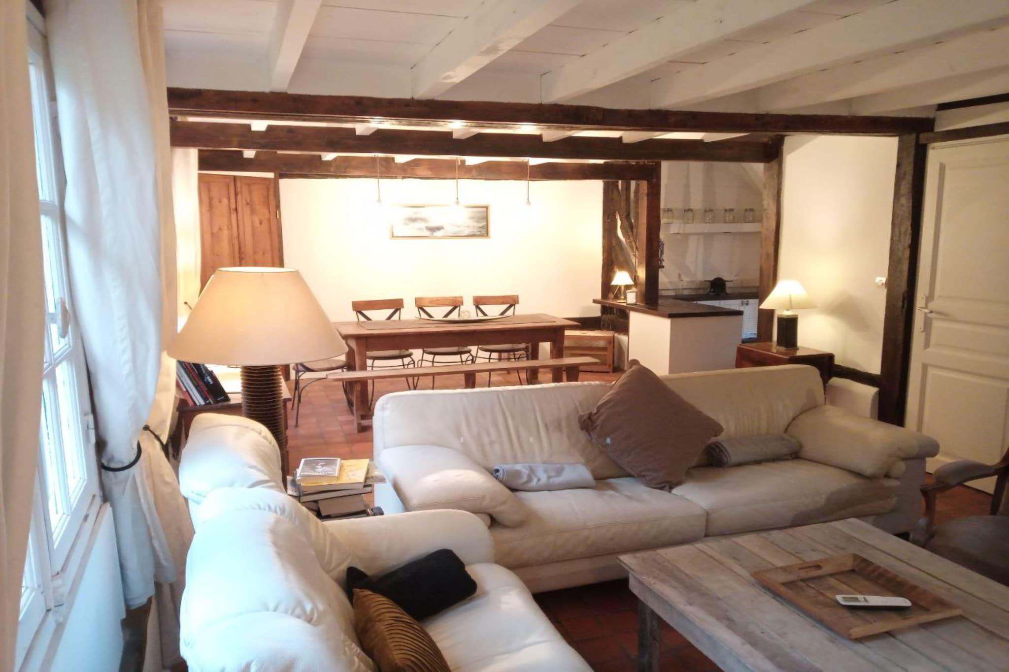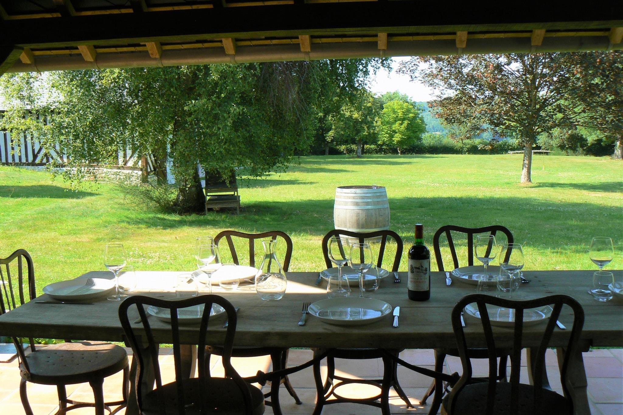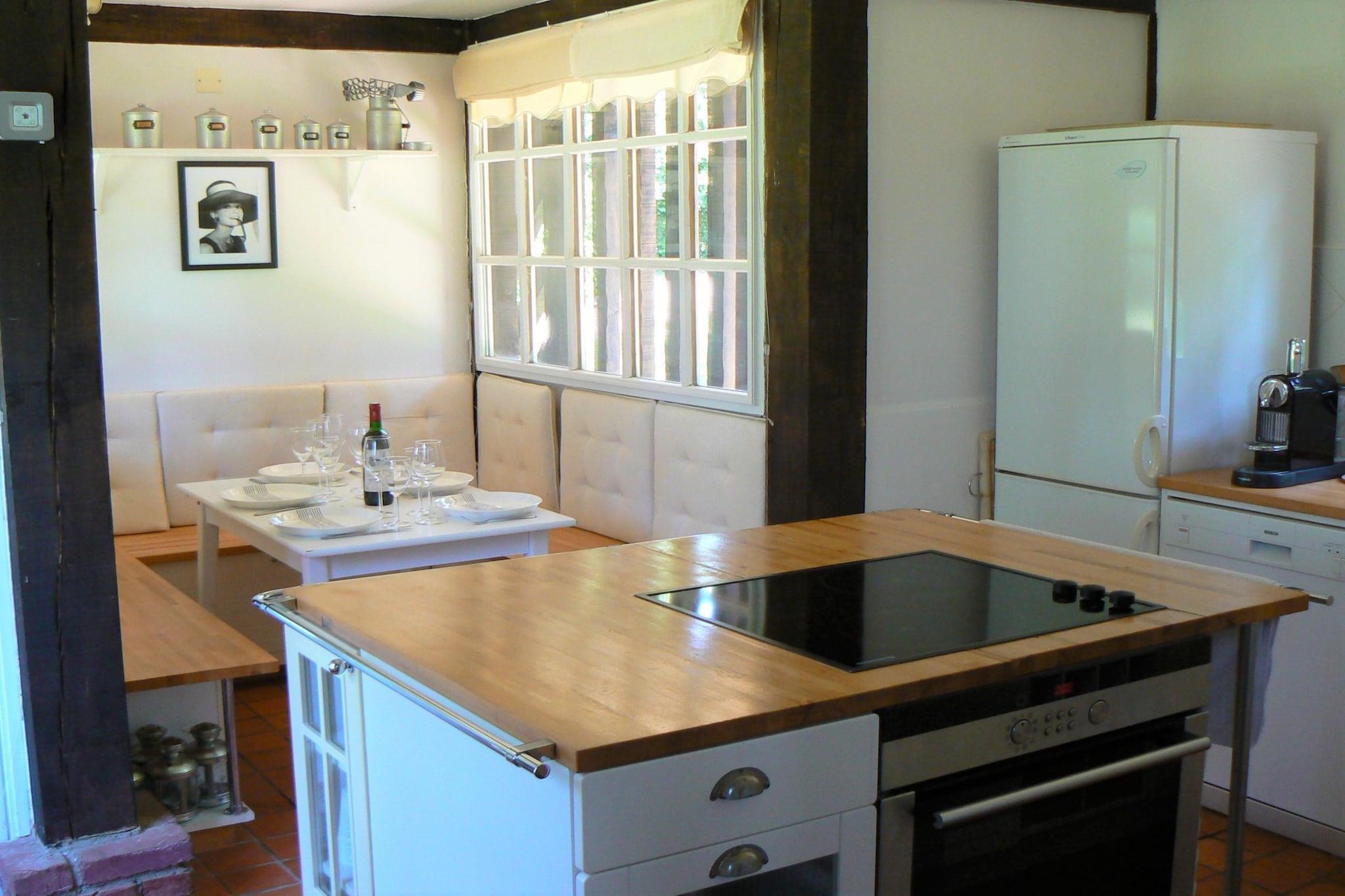 Denne fremragende normanniske ejendom er beliggende i baglandet af Côte Fleurie, kun 20 km fra Deauville. Du vil finde enestående og helt private tjenester der: en smuk swimmingpool, en tennisbane, en petanquebane, en hjemmebiograf og mange arkadespil. Et ideelt sted for en familiesammenkomst eller et ophold med venner. Du har et hovedhus, som kan rumme 4 voksne og 4 børn, med et skønt opholdsrum, en pejs, et veludstyret køkken, 4 soveværelser og et badeværelse samt 2 brusere. "Gæste" huset er sammensat af en stue med pejs og 2 soveværelser og 2 badeværelser samt en mezzanin. Det 3. lille bindingsværkshus rummer en rigtig gammeldags hjemmebiograf (med mere end 2.000 dvd'er) og et spillelokale med bordfodbold, airhockey og et par gamle spil mm. De tre huse har reversibelt klimaanlæg.