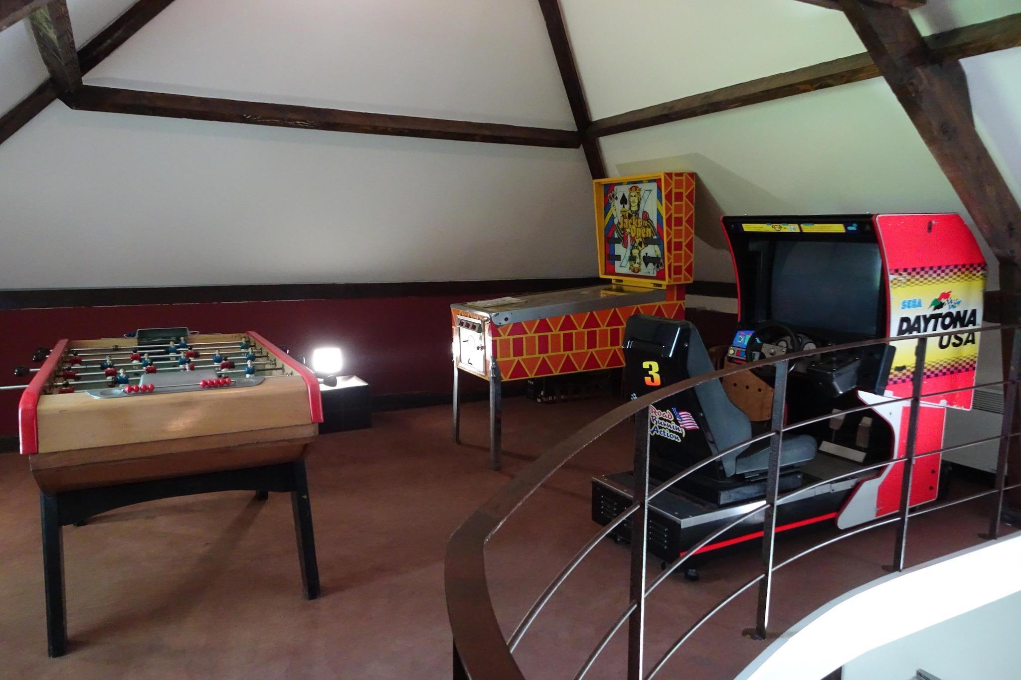 Stueetage: (åbent køkken(spisebord, elkedel, brødrister, komfur(Komfur med fire kogeplader, glaskeramisk), kaffemaskine(kaffetragt), kaffemaskine(kaffepude), ovn, mikrobølgeovn, opvaskemaskine , køleskab, fryser, tørretumbler, vaskemaskine), stue / spisestue(Fjernsyn(parabol), pejs, sofahjørne), badeværelse(bruser), toilet) På 1. etage: (soveværelse(enkeltseng(80 x 190 cm), enkeltseng(80 x 190 cm)), soveværelse(enkeltseng(80 x 190 cm), enkeltseng(80 x 190 cm)), soveværelse(7 m2)(dobbeltseng(140 x 190 cm)), soveværelse(king size-seng(160 x 200 cm)), badeværelse(badekar), åbent rum(Fjernsyn, DVD-afspiller)) Sidebygning: (sofastue(Fjernsyn(Ingen hollandske TV-kanaler, Ingen tyske TV-kanaler)), åbent køkken(spisebord, elkedel, brødrister, komfur(Komfur med fire kogeplader, glaskeramisk), kaffemaskine(kaffetragt), ovn, mikrobølgeovn, opvaskemaskine , køleskab, vaskemaskine), soveværelse(8 m2)(dobbeltseng(140 x 190 cm), bruser, håndvask), soveværelse(8 m2)(dobbeltseng(140 x 190 cm), bruser, håndvask), toilet, åbent rum(enkeltseng(80 x 190 cm), enkeltseng(80 x 190 cm), enkeltseng(80 x 190 cm))) Gæsteophold Stueetage: (Bar, Biograf, trådløst musiksystem, CD-afspiller, toilet, projektor, bordtennisbord, bordfodbold, airhockey) Grill center, Parkering, Boldbane, have, solstole, swimmingpool(privat, udendørs), tennisbane, barneseng, barnestol