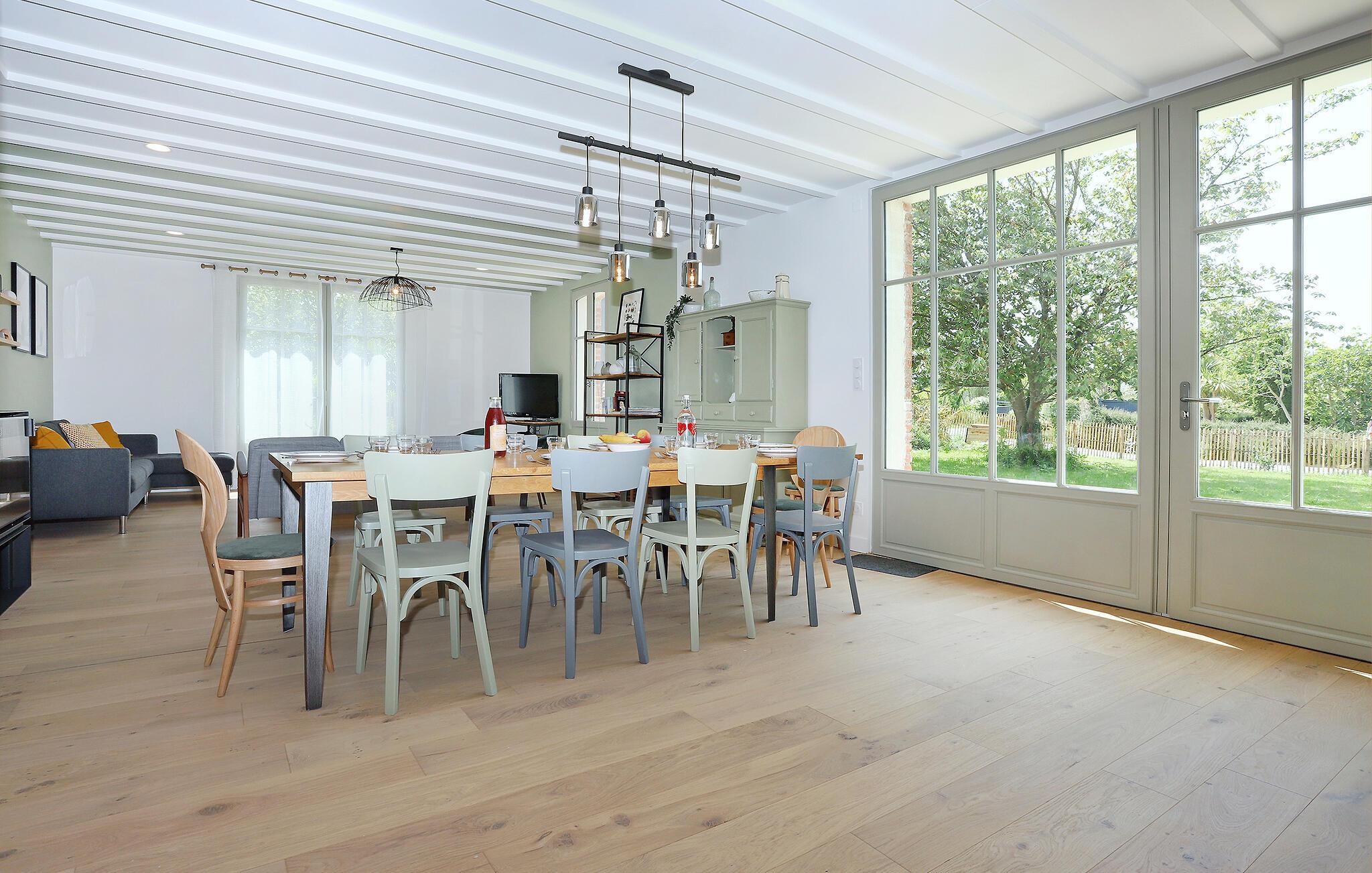 Tag den udvidede familie under armen og rejs til Le Minihic-sur-Rance, hvor dette rummelige hus danner de perfekte rammer for årets bedste uger i godt selskab. Huset er flot og stilsikkert indrettet med behagelige farveskalaer og moderne faciliteter, der er med til at gøre jeres ophold helt og aldeles ubekymret med det samme, I ankommer. Den store, lyse stue er husets hjerte og kombinerer stue, køkken og spisestue med direkte udsigt til haven, og her venter jer hyggelige stunder med god mad og brætspil til langt ud på aftenen.