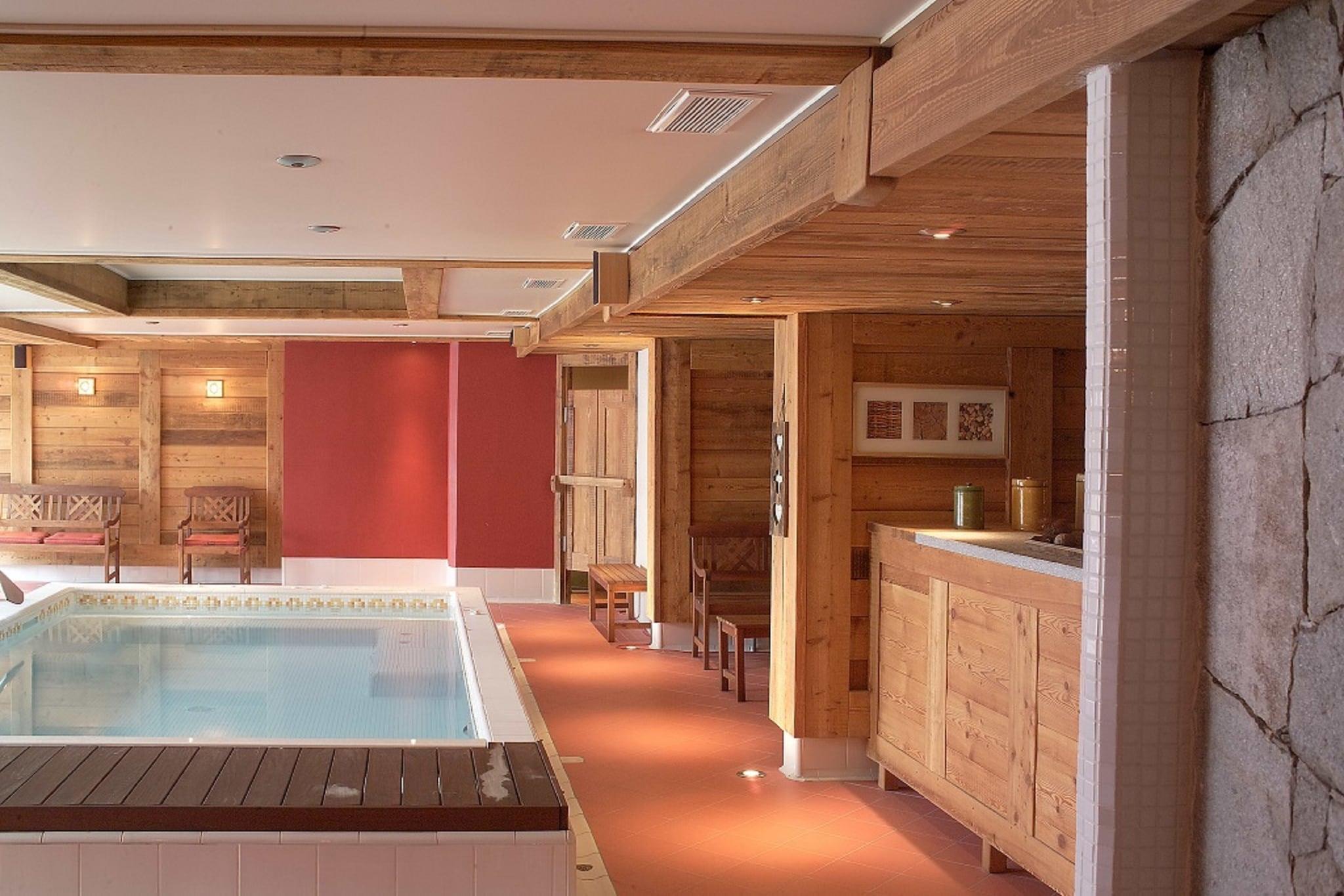 Stueetage: (Stue(Fjernsyn, pejs, sofahjørne), spisestue(spisebord), Køkken(ovn, mikrobølgeovn, opvaskemaskine , køle-fryseskab), badeværelse(bruser, vaskemaskine), toilet, terrasse) På 1. etage: (soveværelse(dobbeltseng), Arbejdsværelse) Kælder: (soveværelse(dobbeltseng eller 2 enkeltsenge Senge, balkon), soveværelse(dobbeltseng eller 2 enkeltsenge Senge), badeværelse(badekar), toilet) Gæsteophold Stueetage: (åbent køkken(køleskab), stue / spisestue(Fjernsyn), soveværelse(dobbeltseng), badeværelse(bruser), toilet, balkon) hottub, sauna, swimmingpool(deles med andre gæster)