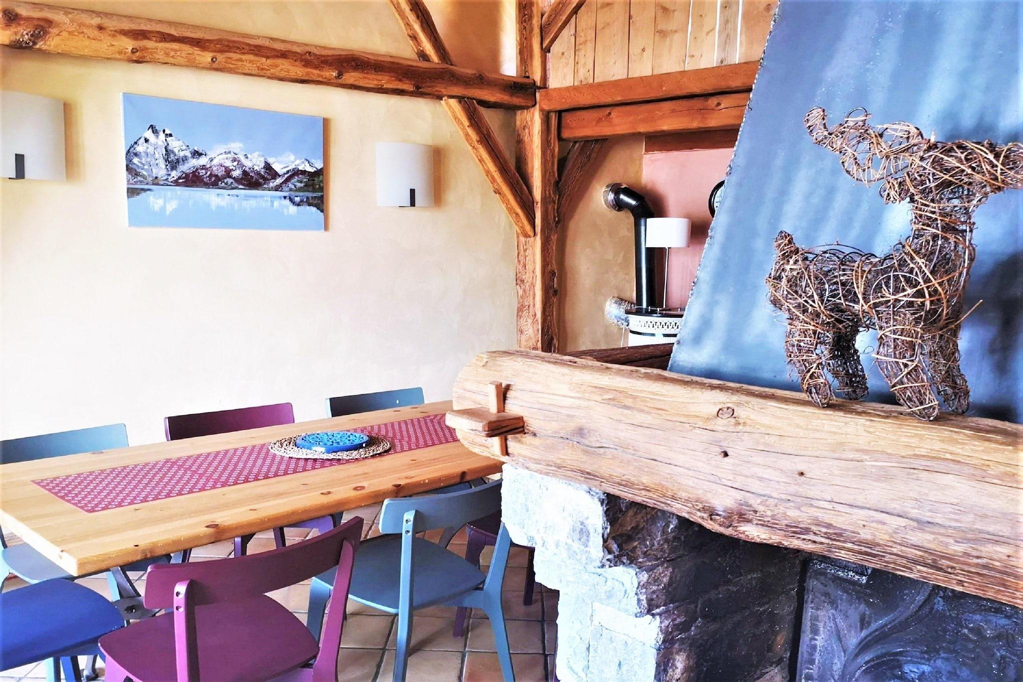 Beliggende kun 50 m fra butikker, restauranter og byens centrum, dette rummelige feriehus i Le Monêtier-les-Bains byder velkommen til op til 8 gæster. Stueetagen har en hyggelig stue med pejs og tv, spiseplads, fuldt udstyret køkken, badeværelse med bruser og vaskemaskine samt solrig terrasse. Ovenpå tilbyder et soveværelse med dobbeltseng og arbejdsværelse privatliv, mens kælderen indeholder to fleksible soveværelser, et badeværelse med badekar og en balkon. Det separate gæstehus tilføjer ekstra komfort med sit eget køkken, stue/spisestue, soveværelse med dobbeltseng, badeværelse, toilet og balkon - ideel til udvidede familier eller venner. Gæsterne har adgang til en fælles swimmingpool, spabad og sauna for ultimativ afslapning. Bachas-pisten ligger kun 500 m væk, og Les Grands Bains du Monêtier termiske spa er en kort gåtur på 250 m. Med Sherpa Supermarché og top-vurderede restauranter som Le Montagn’Art og La Table du Cairn i nærheden, blander dette alpine tilbagetog luksus, bekvemmelighed og bjergcharme.