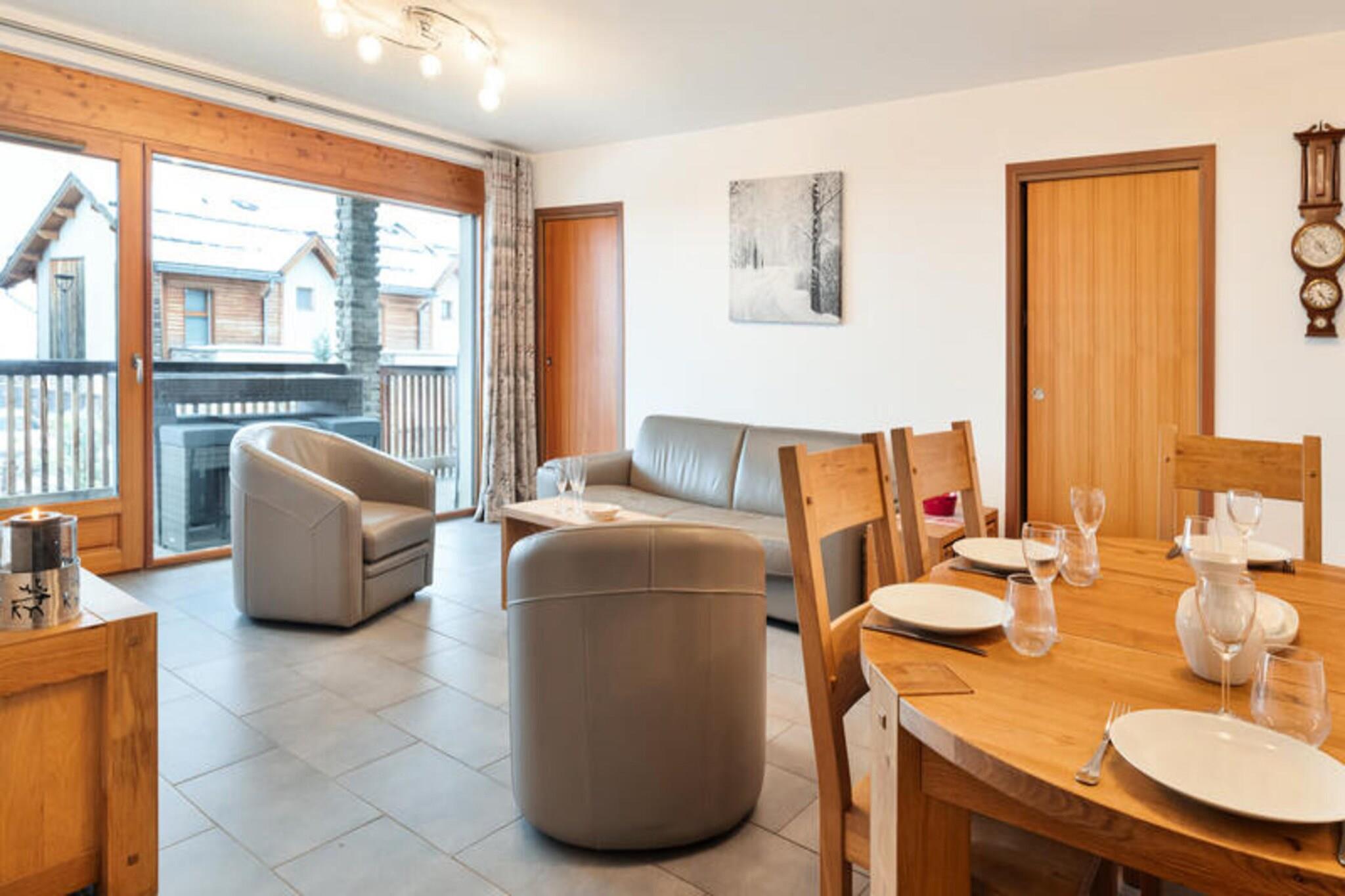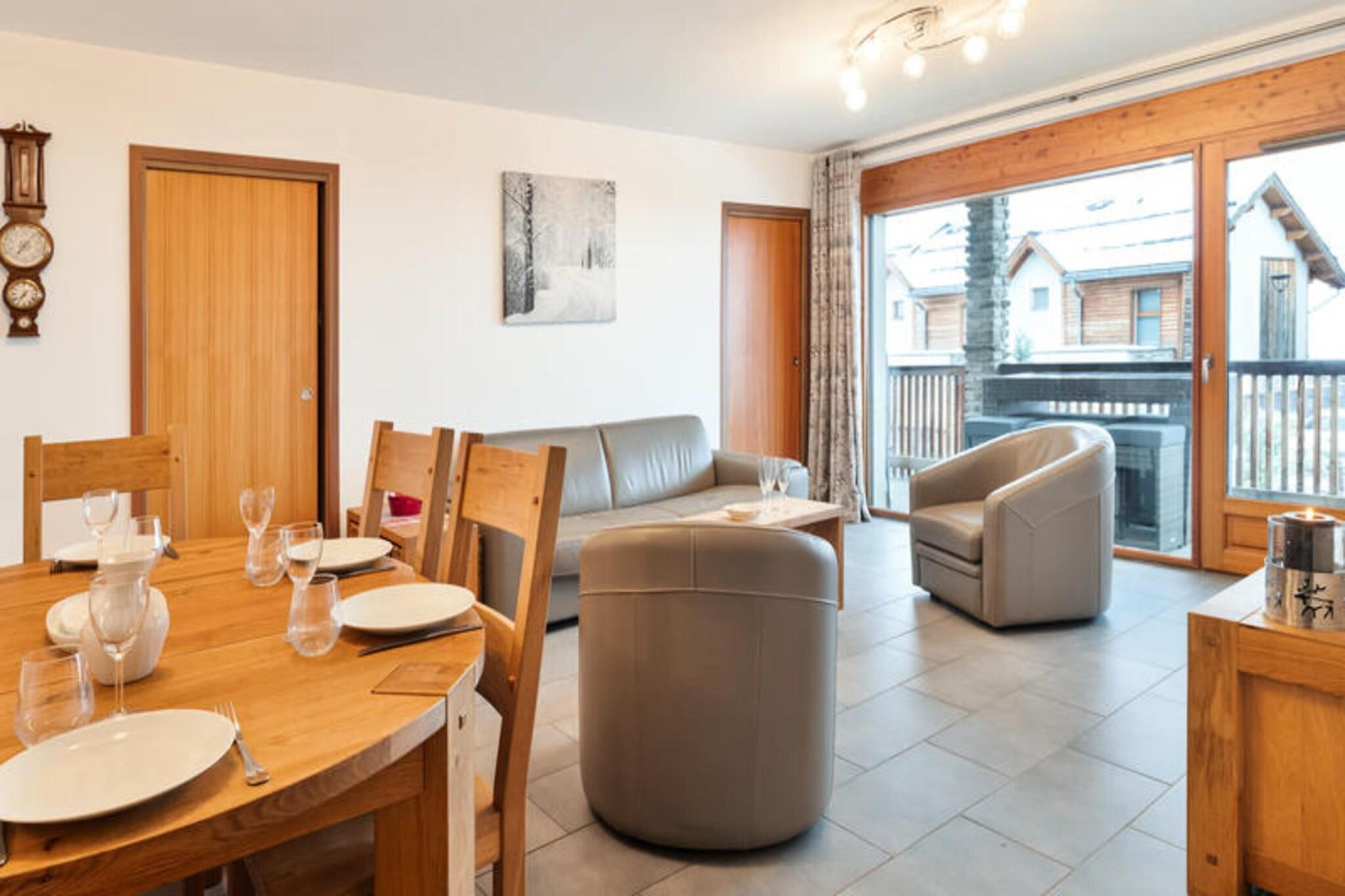 Denne charmerende lejlighed er perfekt til en bjergferie med plads til op til 5 gæster. Det har et soveværelse med dobbeltseng og et andet soveværelse med en køjeseng og en enkeltseng, ideel til familier eller små grupper. Lejligheden er udstyret med alt det nødvendige, inklusive linned, håndklæder og sæbe, med opredte senge ved ankomsten for et problemfrit ophold. Bemærk venligst, at kæledyr ikke er tilladt, og at ejendommen er røgfri. Beliggende i det maleriske Le Monêtier-les-Bains-område i Serre Chevalier, tilbyder lejligheden nem adgang til pisterne, hvilket gør den til et fremragende valg for skientusiaster. Den nærliggende landsby byder på en række attraktioner, herunder charmerende caféer, restauranter og lokale markeder, perfekt for dem, der søger en kombination af udendørs eventyr og alpekultur. Opholdsstuen i åbent plan omfatter et fuldt udstyret køkken, en spiseplads og en hyggelig tv-stue. Yderligere faciliteter omfatter et brusebad, selvstændigt toilet og en terrasse med en betagende udsigt over de omkringliggende bjerge. For ekstra bekvemmelighed er der en garage og et skiskab til rådighed, som sikrer, at dit udstyr opbevares sikkert efter en dag på pisterne.