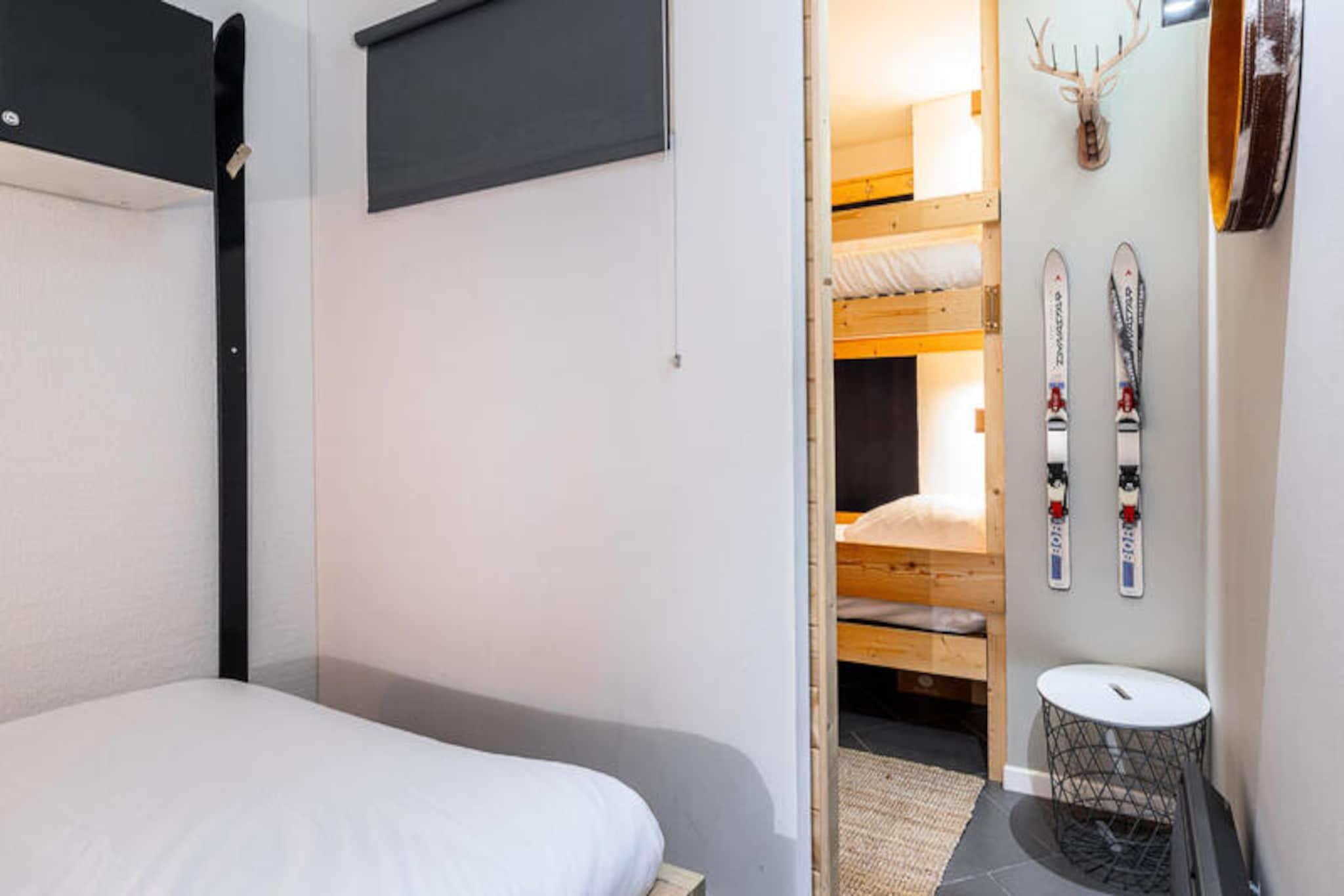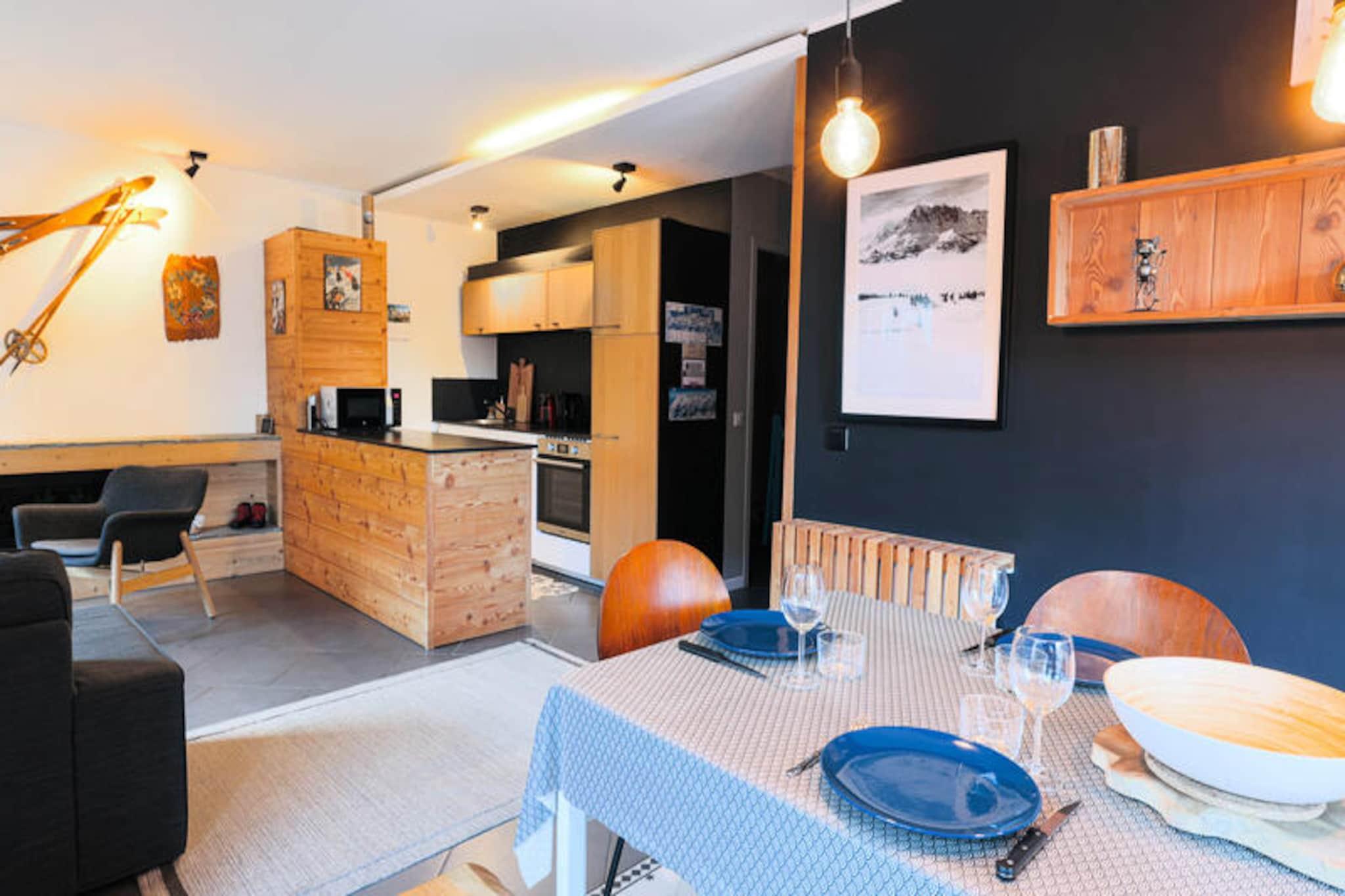 I hjertet af den maleriske landsby Le Monêtier-les-Bains tilbyder denne charmerende lejlighed et roligt tilflugtssted omgivet af de majestætiske tinder i de franske alper. Med sin solbeskinnede terrasse og hyggelige interiør er det det perfekte tilflugtssted for familier eller små grupper, der søger en mindeværdig bjergferie. Landsbyens tidløse charme og pulserende atmosfære skaber en idyllisk ramme for jeres alpeferie, uanset årstiden. \n\nLejligheden har komfortabel plads til op til seks gæster og har en gennemtænkt planløsning, der kombinerer komfort og praktisk anvendelighed. Den har to dobbeltværelser, hvoraf det ene støder op til et køjesengsområde, hvilket gør den ideel til familier med børn. Det åbne køkken, opholdsstue og spisestue er designet til afslapning og socialisering efter en dag med eventyr. Gå ud på terrassen for at nyde den friske bjergluft eller nyd et stille øjeblik med en varm drink. Yderligere bekvemmeligheder såsom skiopbevaring, et moderne badeværelse med bruser og inkluderede tjenester som sengelinned, toiletartikler og slutrengøring sikrer et stressfrit ophold. \n\nLe Monêtier-les-Bains er en port til uendelige udendørsaktiviteter. Om vinteren tilbyder det berømte skisportsområde Serre Chevalier pister i verdensklasse kun få øjeblikke væk. I sommermånederne forvandles regionen til et paradis for vandrere, cyklister og naturelskere. Selve landsbyen kan prale af termiske bade, charmerende spisesteder og lokale butikker, hvilket giver en perfekt blanding af afslapning og udforskning. \n\nUanset om du er her for spændingen ved pisterne eller roen i alpine landskaber, tilbyder denne lejlighed en uforglemmelig base for dine eventyr i de franske alper.