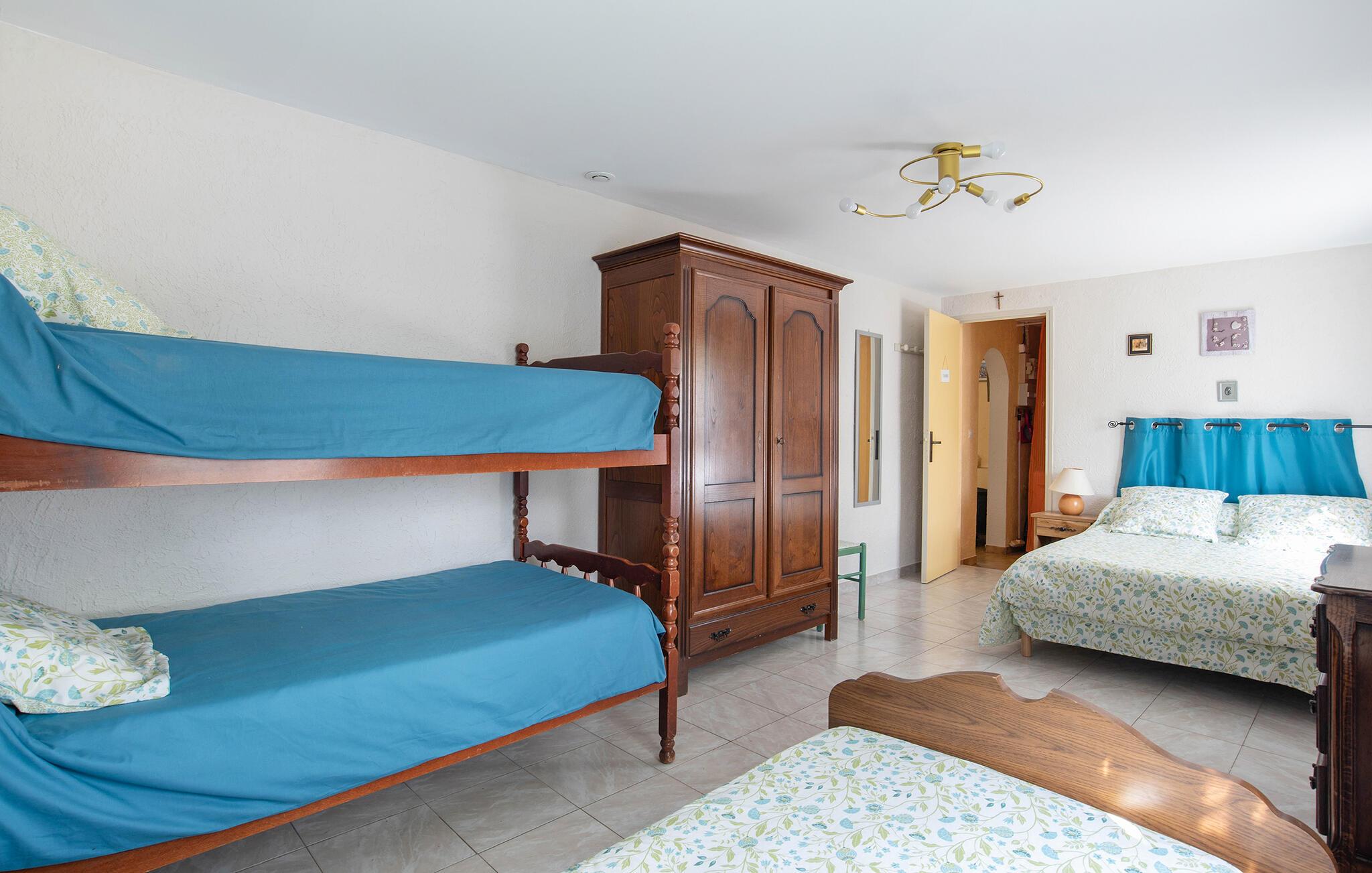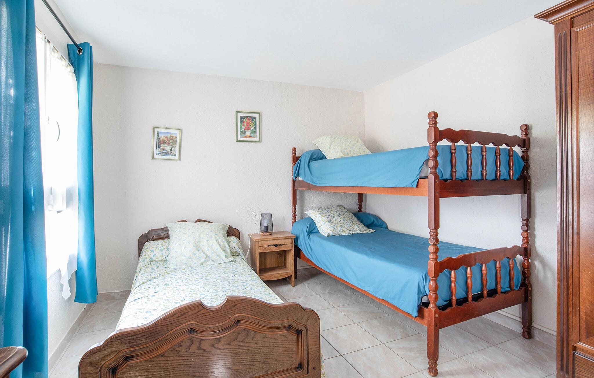 Soveværelse 22m2 (nr. 1) - 2 Sovepladser. (Enkeltseng(e)). 2 Sovepladser. (Dobbeltseng(e)). 1 Soveplads. (Etageseng(e)).