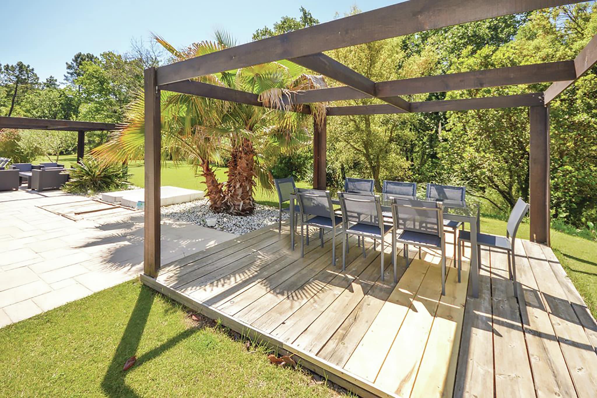Dette er en rummelig villa med en stor swimmingpool og en stor muret have. Med 4 soveværelser og 3 badeværelser er villaen stor nok til 8 personer. Du finder også et smukt udendørs køkken med grill, overdækket terrasse og opvarmet jacuzzi. Villaen ligger i skoven mellem den provencalske landsby Muy og badebyen Sainte-Maxime (18 km). Sainte-Maxime er en livlig badeby med dejlige butikker, en strand og terrasser. Der afholdes et stort provencalsk marked i Le Muy hver søndag og torsdag. I området finder du flere 18 hullers golfbaner. Ejerne bor i kælderen på bagsiden af villaen, med egen indgang og ingen direkte visning. Hvis du ønsker det, kan de fortælle dig om de smukke omgivelser.. Poolen er beskyttet af en alarm. For børn, der ikke kan svømme, underskriver alle familier med børn ved ankomsten en erklæring om ansvar for eventuelle ulykker i forbindelse med poolen.
