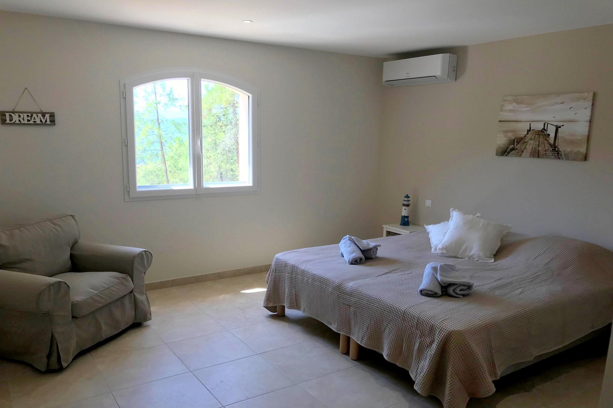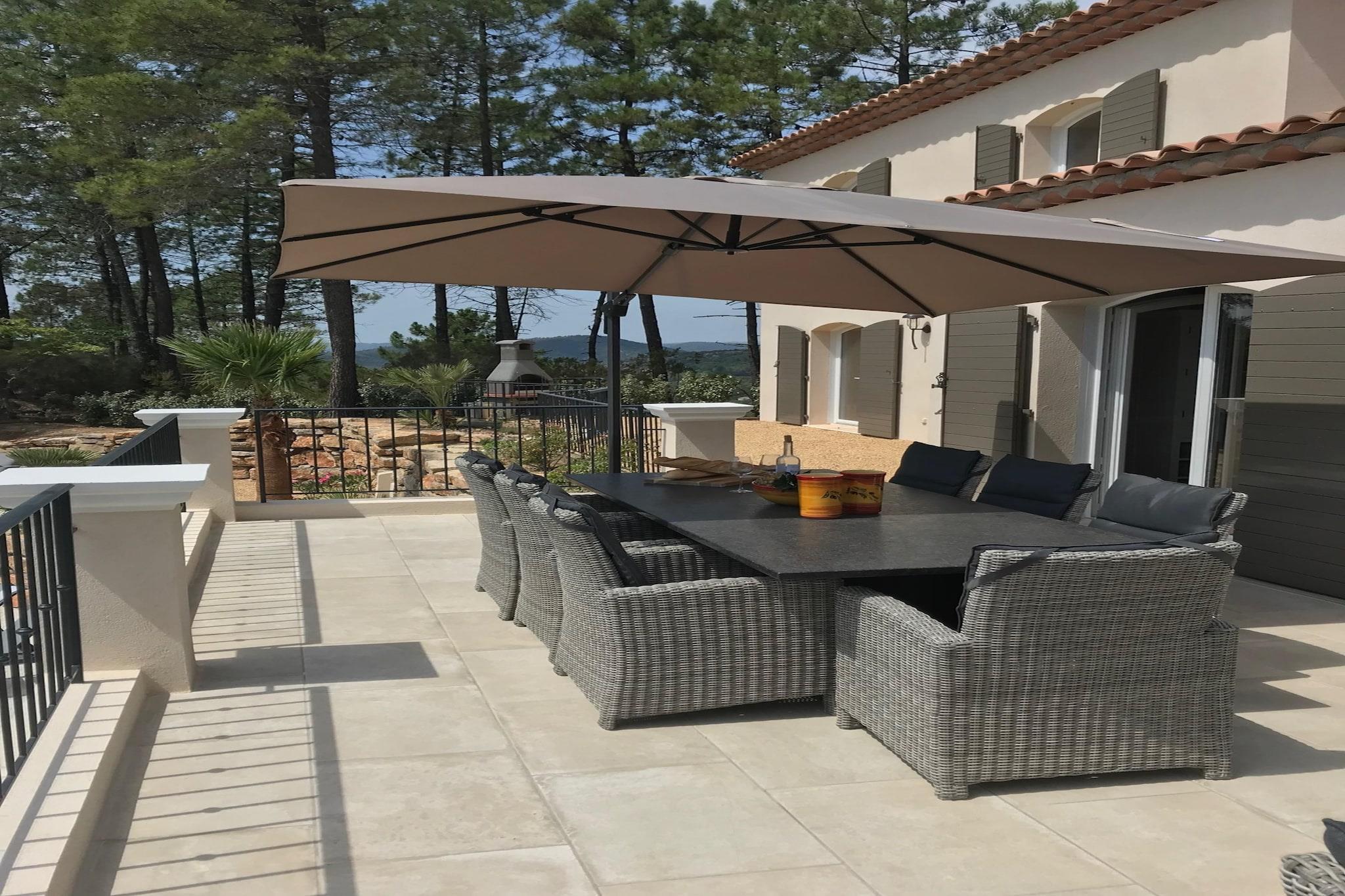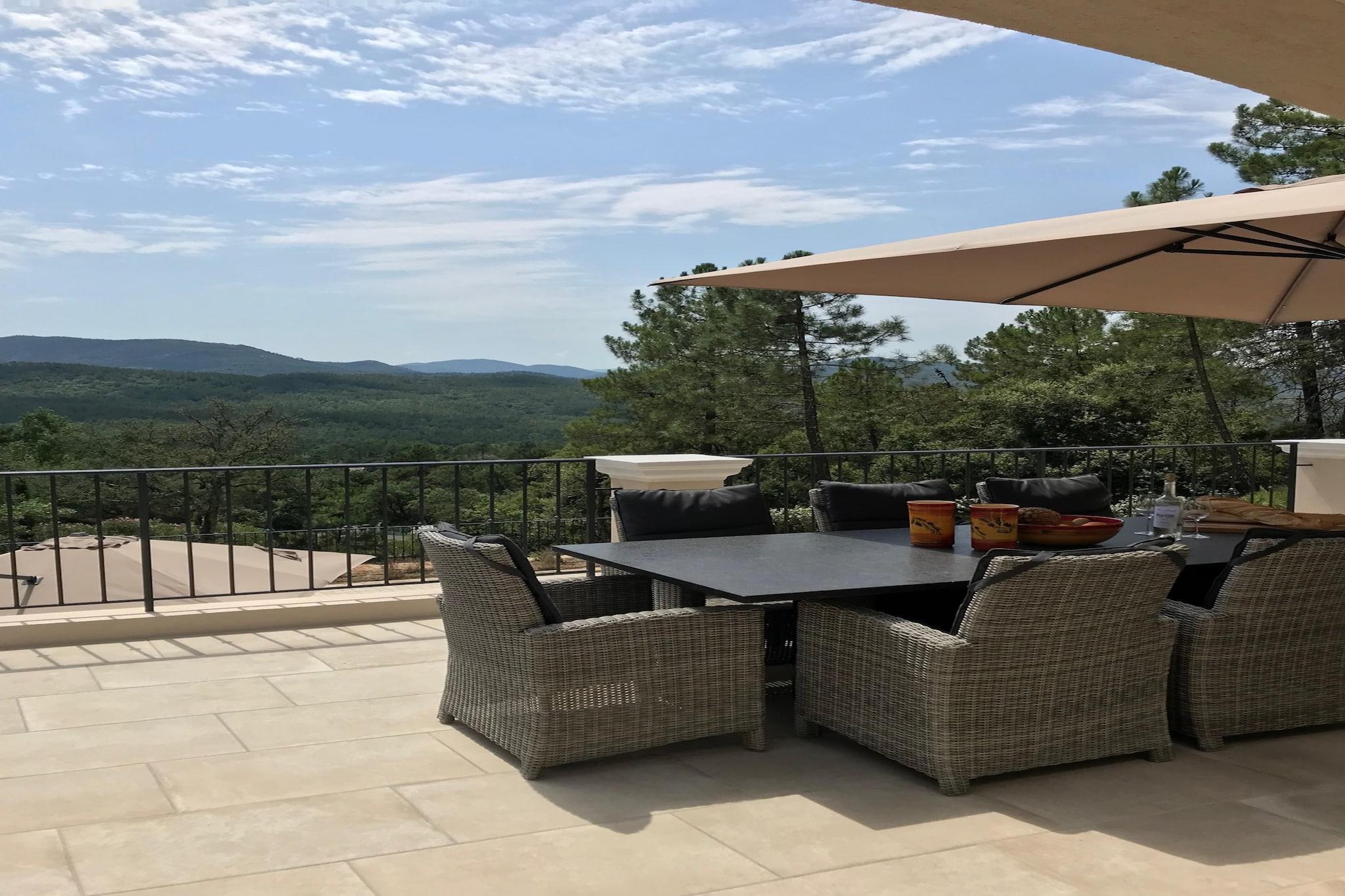 Moderne, arkitektonisk designet villa med privat pool. Fra haven har du en fantastisk udsigt over vinmarkerne. Om morgenen kan du gå til bageriet for lækre friske croissanter eller tage en drink om eftermiddagen på en af de hyggelige terrasser. De villa er bygget kørestolsvennlig, med brede døre, et særligt badeværelse (et lavere håndvask og et stort brusebad) og en flad have med terrasser. Le Plan-de-la-Tour ligger ved foden af massivet des Maures bjerge, der udstråler en rolig og rolig atmosfære i en grønne omgivelser. Her kan du nyde atmosfæren i en farverig provencalsk landsby hele året med et ugentligt marked og skyggefulde små pladser, hvor du finder gode restauranter og dejlige caféer. Villaen ligger kun 10 km fra Middelhavet. For golfelskere er der utallige golfbaner i nærheden. En af de smukkeste golfbaner i området er Les Domaines de Saint-Endréol (25 km) i La Motte. Eller rettere golf med havudsigt? Så gå til Domaine de Beauvallon (13 km). Træklatring park og vandland i Sainte-Maxime.
