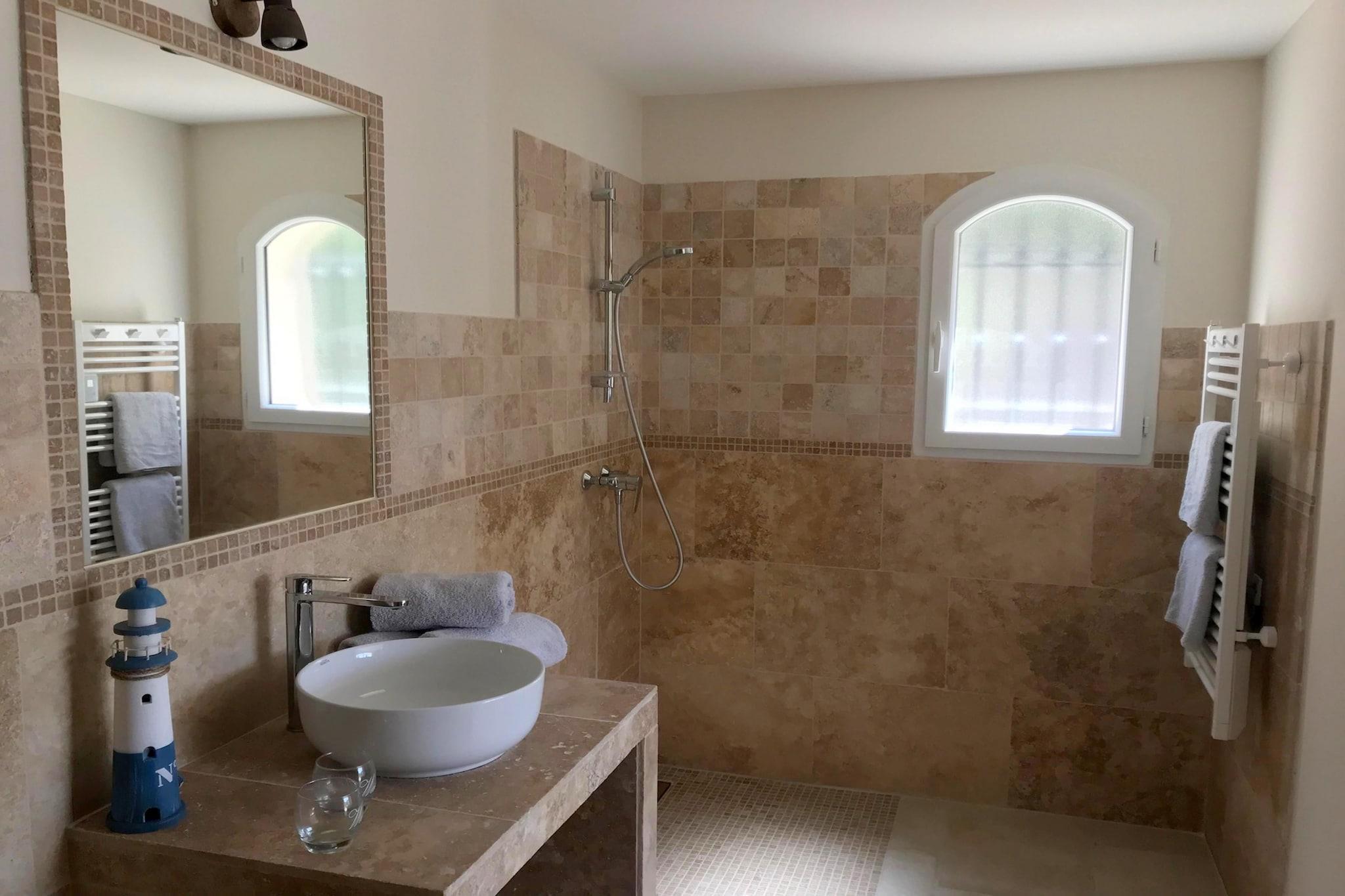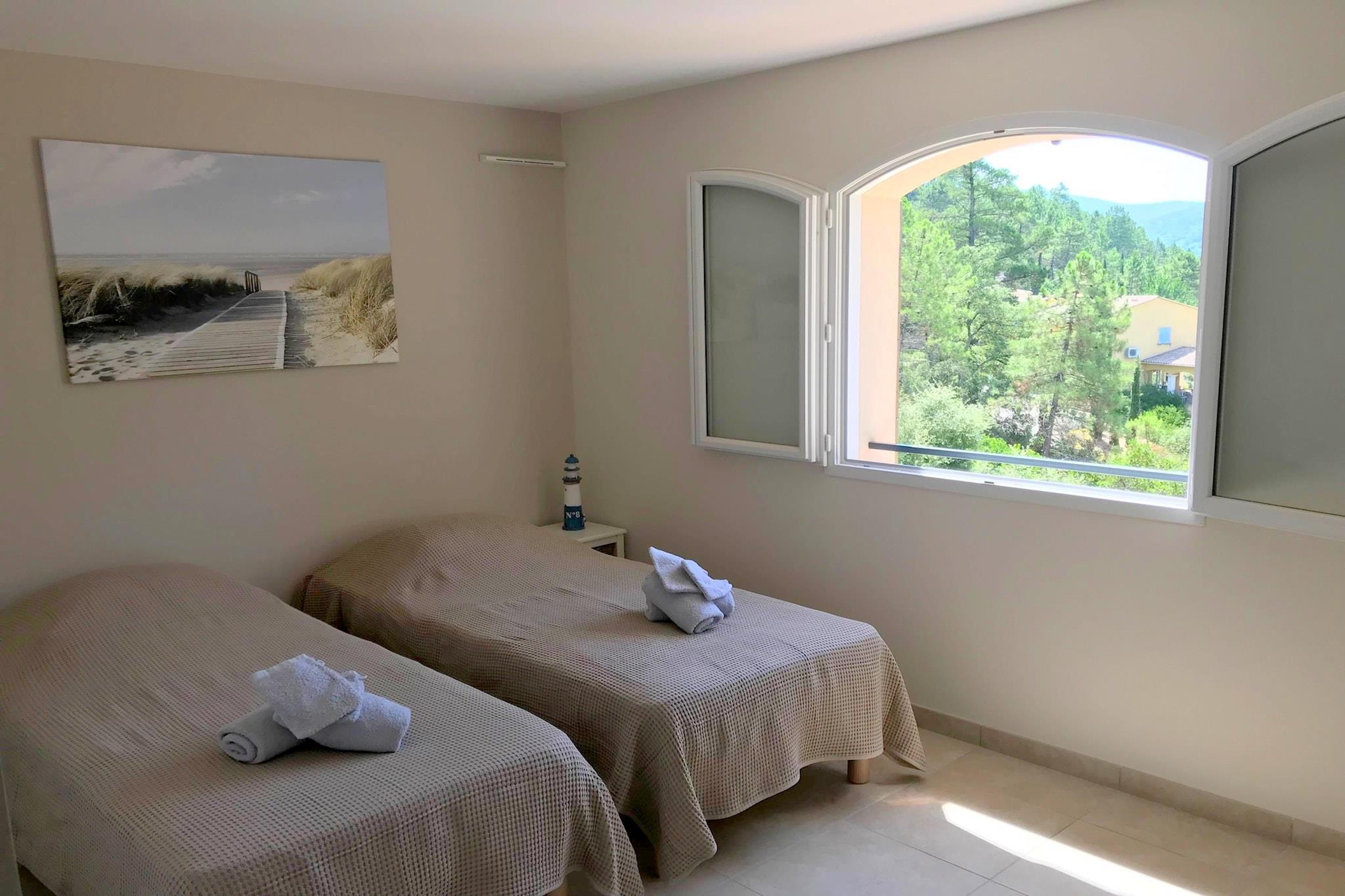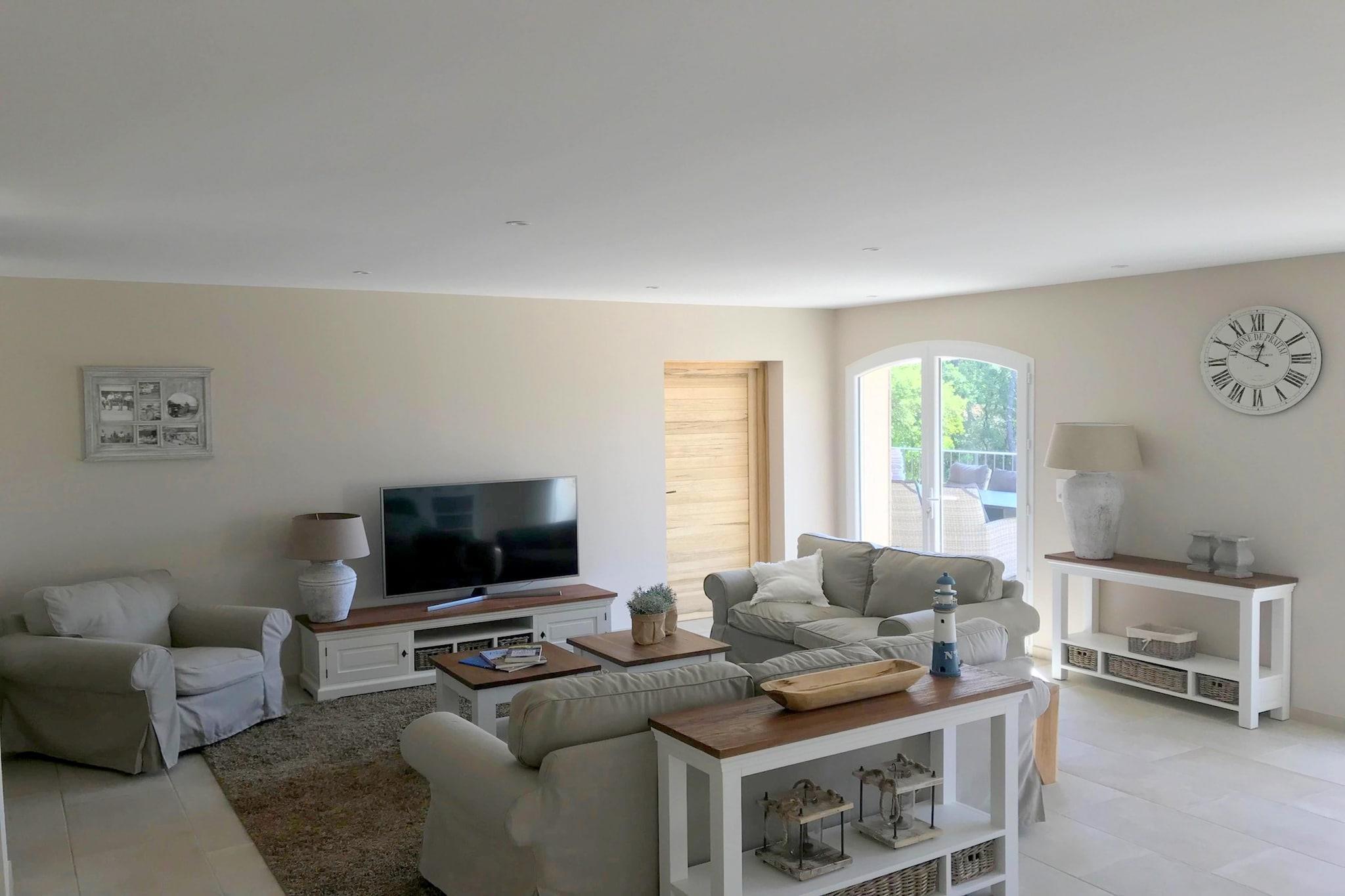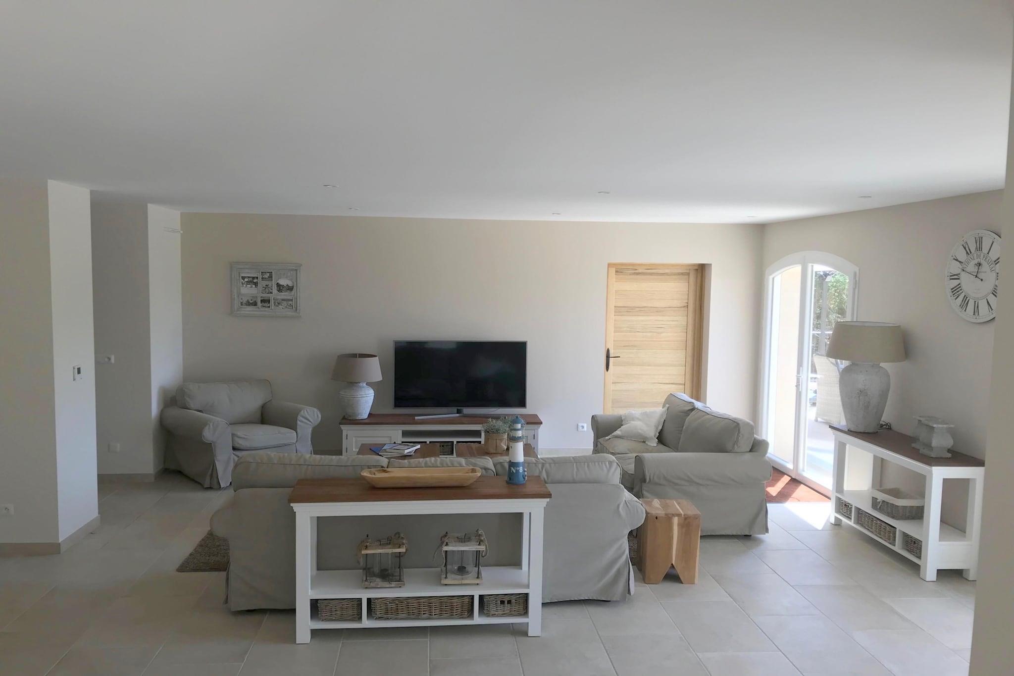 Moderne, arkitektonisk designet villa med privat pool. Fra haven har du en fantastisk udsigt over vinmarkerne. Om morgenen kan du gå til bageriet for lækre friske croissanter eller tage en drink om eftermiddagen på en af de hyggelige terrasser. De villa er bygget kørestolsvennlig, med brede døre, et særligt badeværelse (et lavere håndvask og et stort brusebad) og en flad have med terrasser. Le Plan-de-la-Tour ligger ved foden af massivet des Maures bjerge, der udstråler en rolig og rolig atmosfære i en grønne omgivelser. Her kan du nyde atmosfæren i en farverig provencalsk landsby hele året med et ugentligt marked og skyggefulde små pladser, hvor du finder gode restauranter og dejlige caféer. Villaen ligger kun 10 km fra Middelhavet. For golfelskere er der utallige golfbaner i nærheden. En af de smukkeste golfbaner i området er Les Domaines de Saint-Endréol (25 km) i La Motte. Eller rettere golf med havudsigt? Så gå til Domaine de Beauvallon (13 km). Træklatring park og vandland i Sainte-Maxime.
